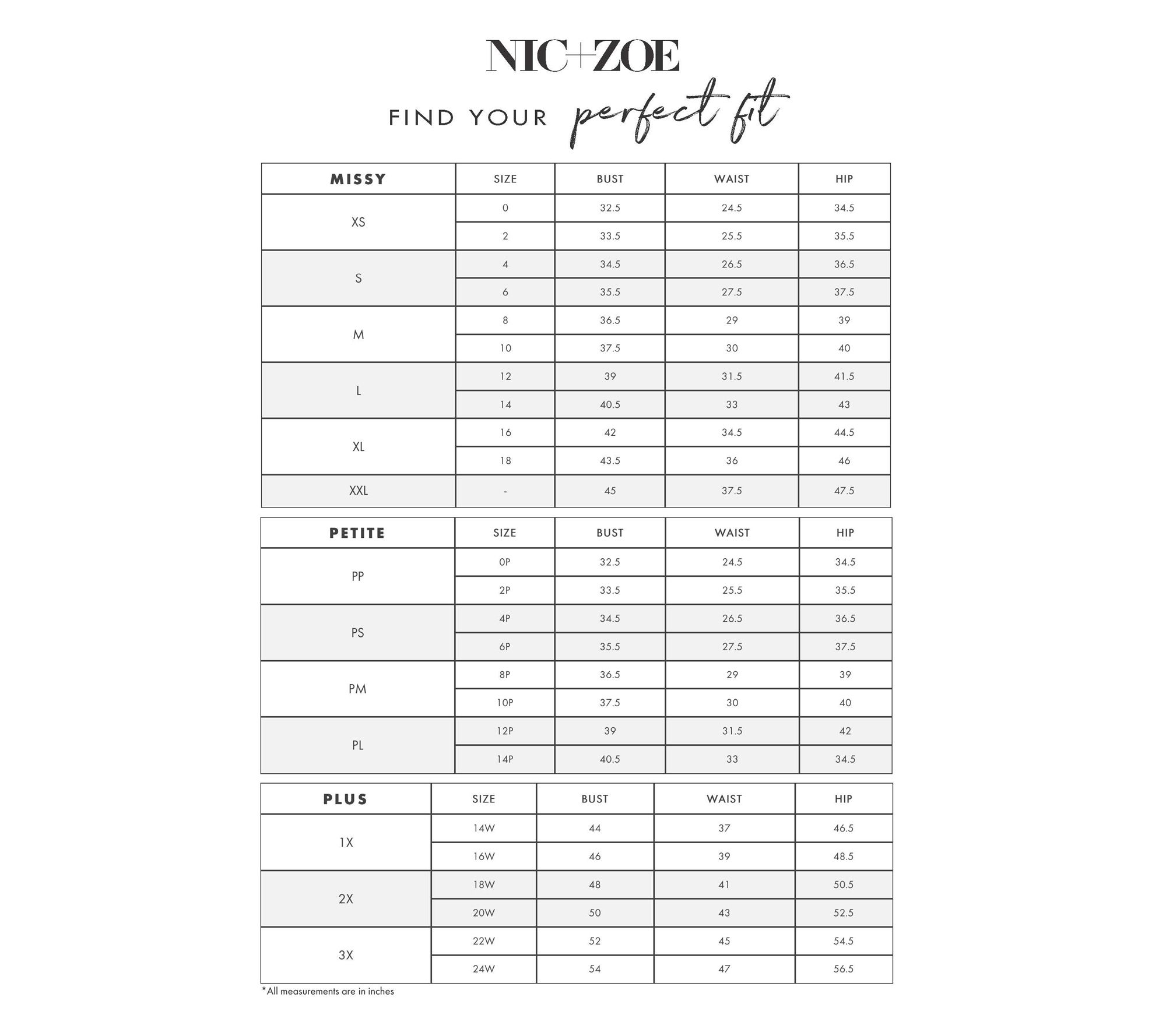 • Length: missy length 22"; petite length 21"; plus length 24"