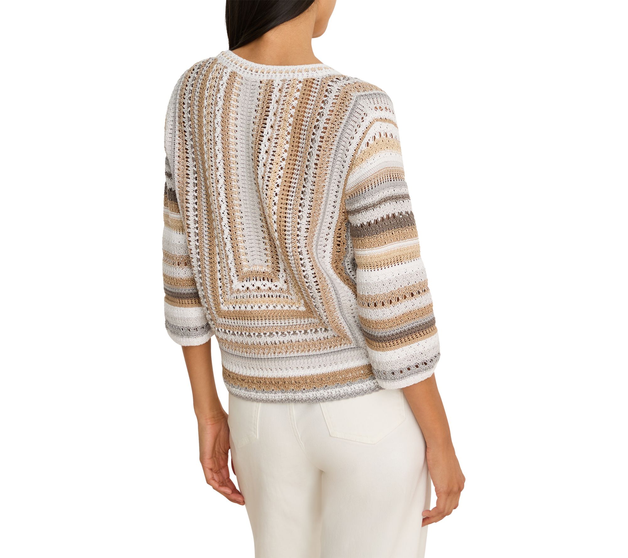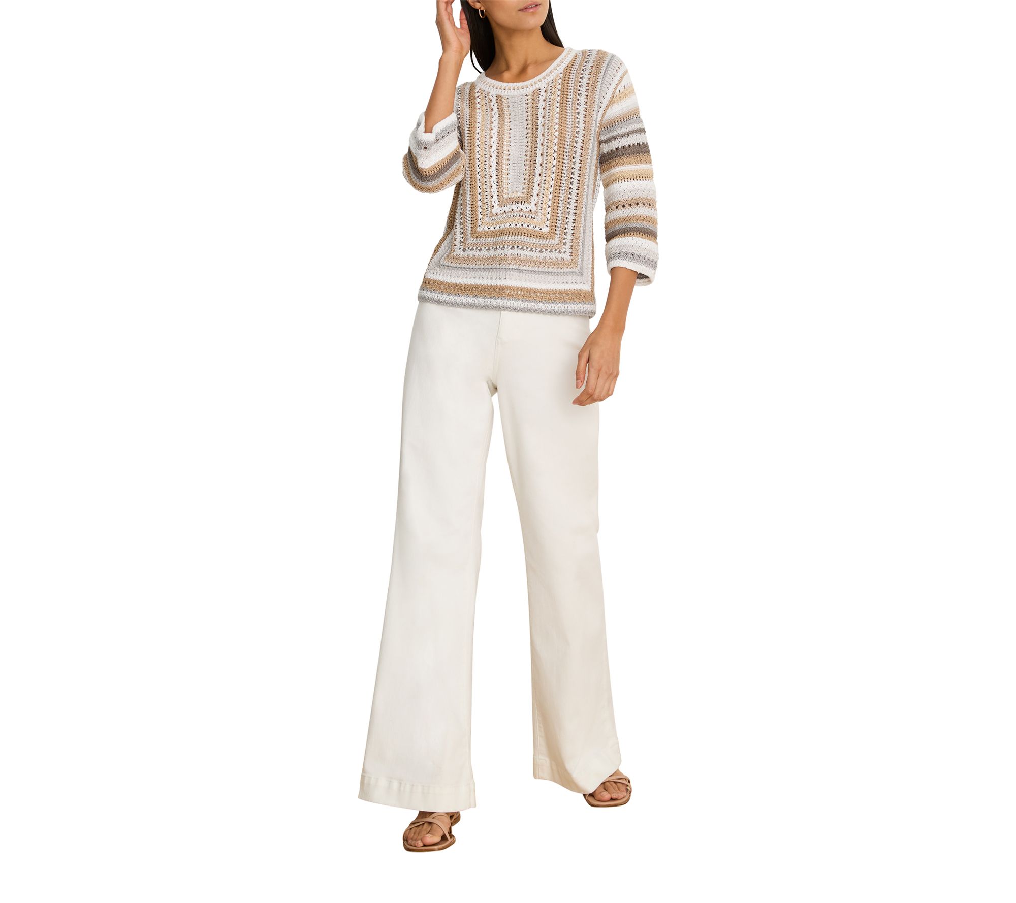 A cozy day at home, a casual coffee meet-up, or those breezy evenings -- this sweater brings effortless comfort and subtle style to every moment. With its artful blend of color and knit design, it lends a modern touch to your favorite jeans or skirts, inviting layering through every season. From NIC+ZOE.