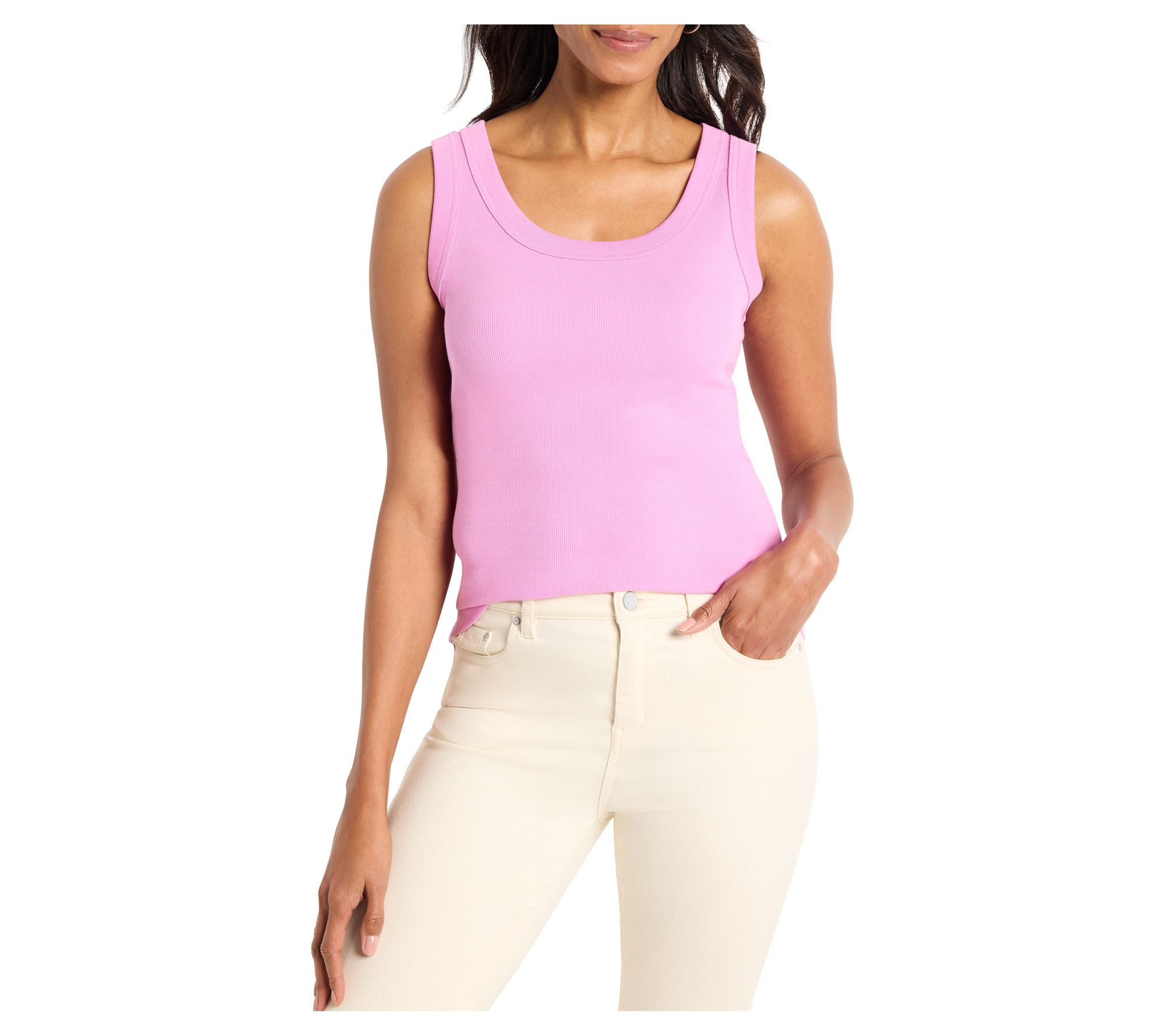 Office to evening chic is effortless with this versatile Perfect Knit rib scoop tank. Comfortable, breathable, and designed with a flattering scoop neckline, this staple piece is perfect for layering or solo wear. From NIC+ZOE.