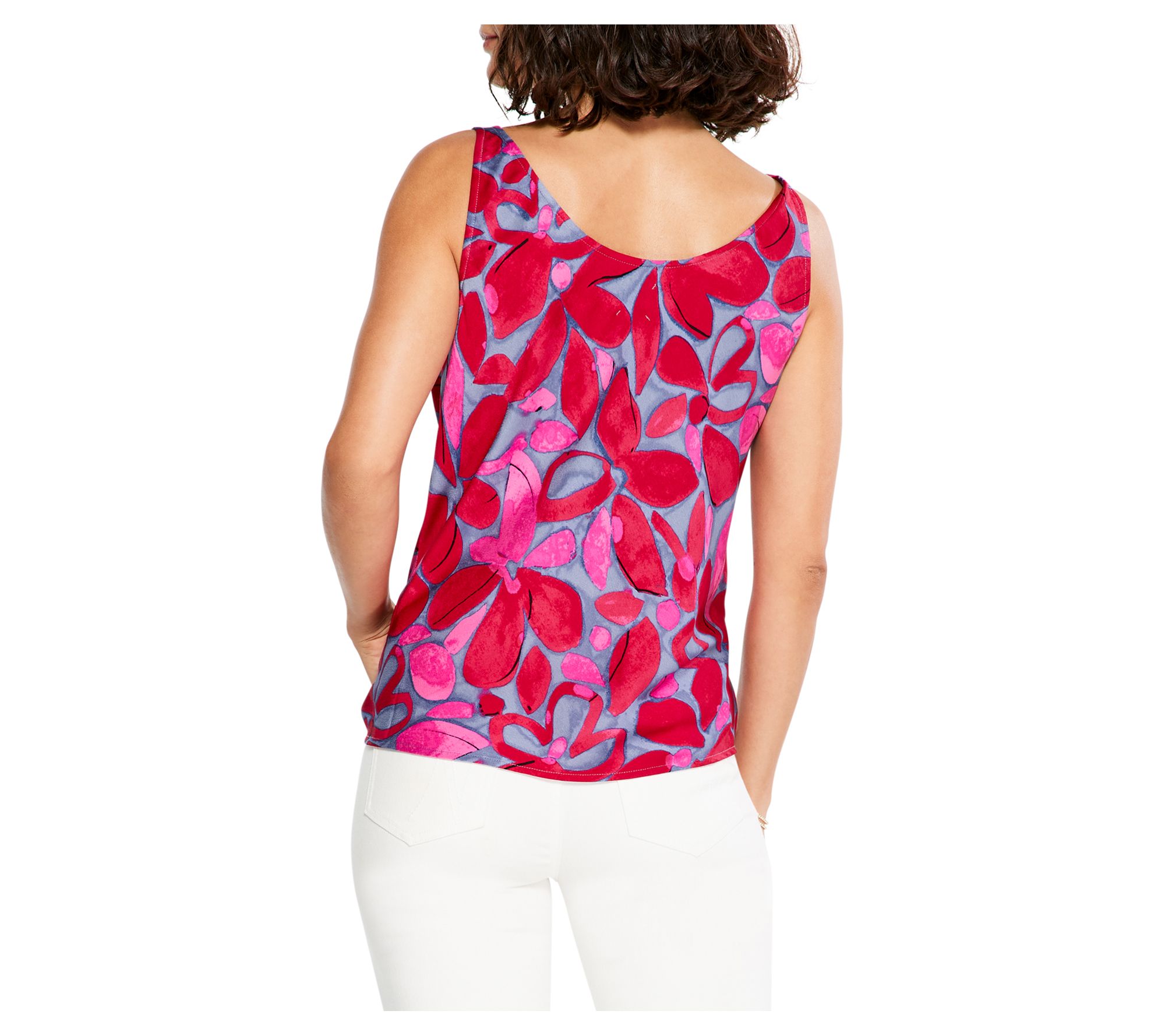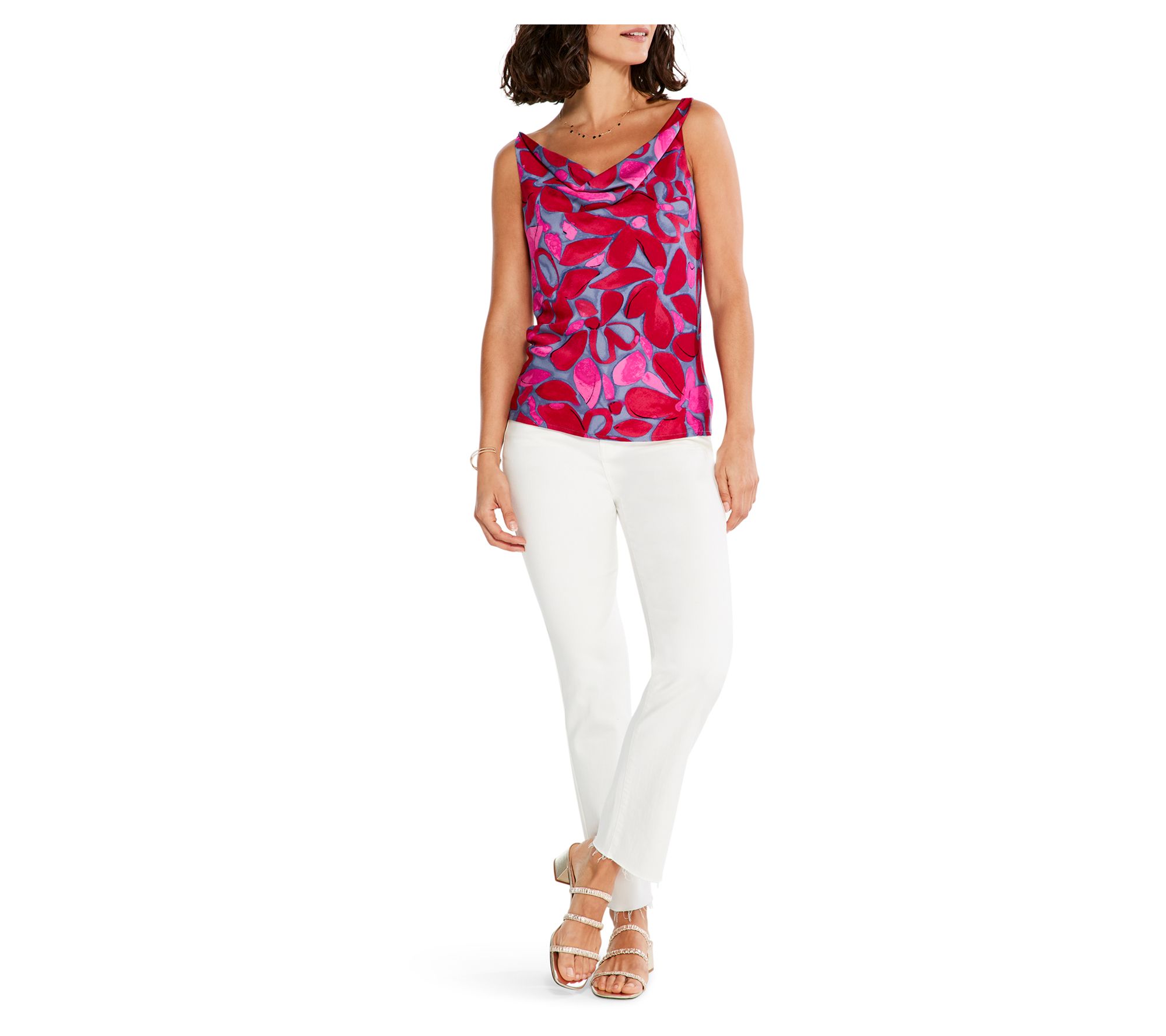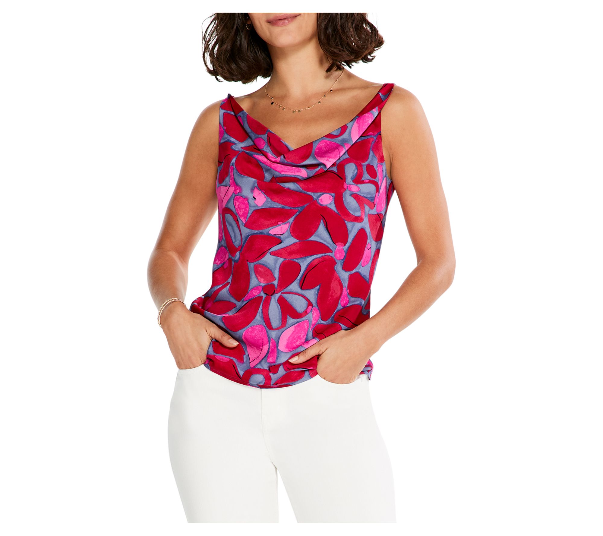 A bright, cheery floral design and a flowy drape neckline makes this sleek tank a must-have for professional and casual wardrobes alike. From Leota.