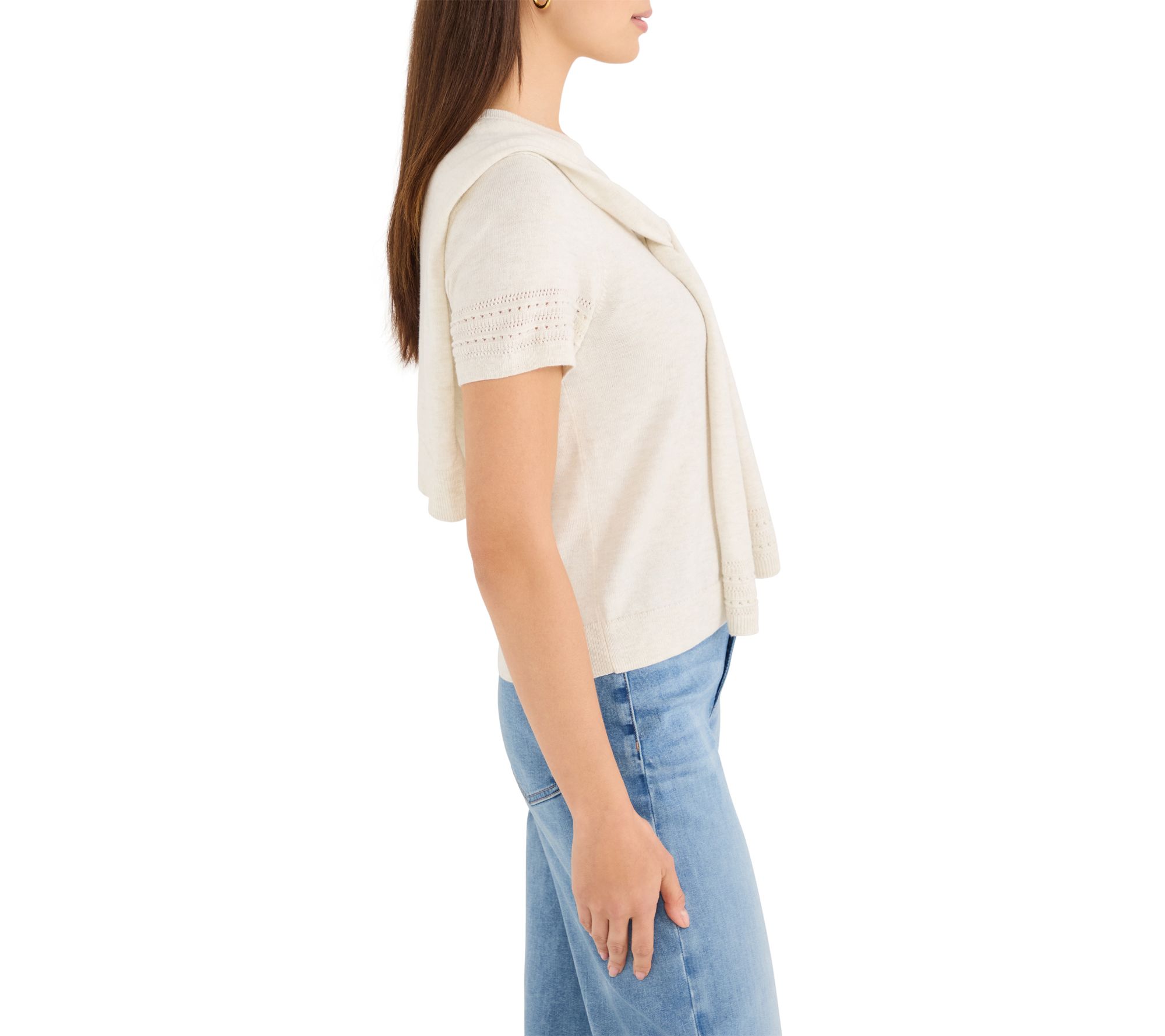 A preppy sweater instantly adds cozy-cool style to casual afternoons and evening gatherings alike. Featuring a draped over-the-shoulder design, this pullover pairs beautifully with tailored pants or your favorite denim for versatile, effortless elegance. Secured at the neck, the attached sweater lifts to fit a jacket or blazer underneath, so you still get that perfect over-the-shoulder effect even with an added layer. From NIC+ZOE.