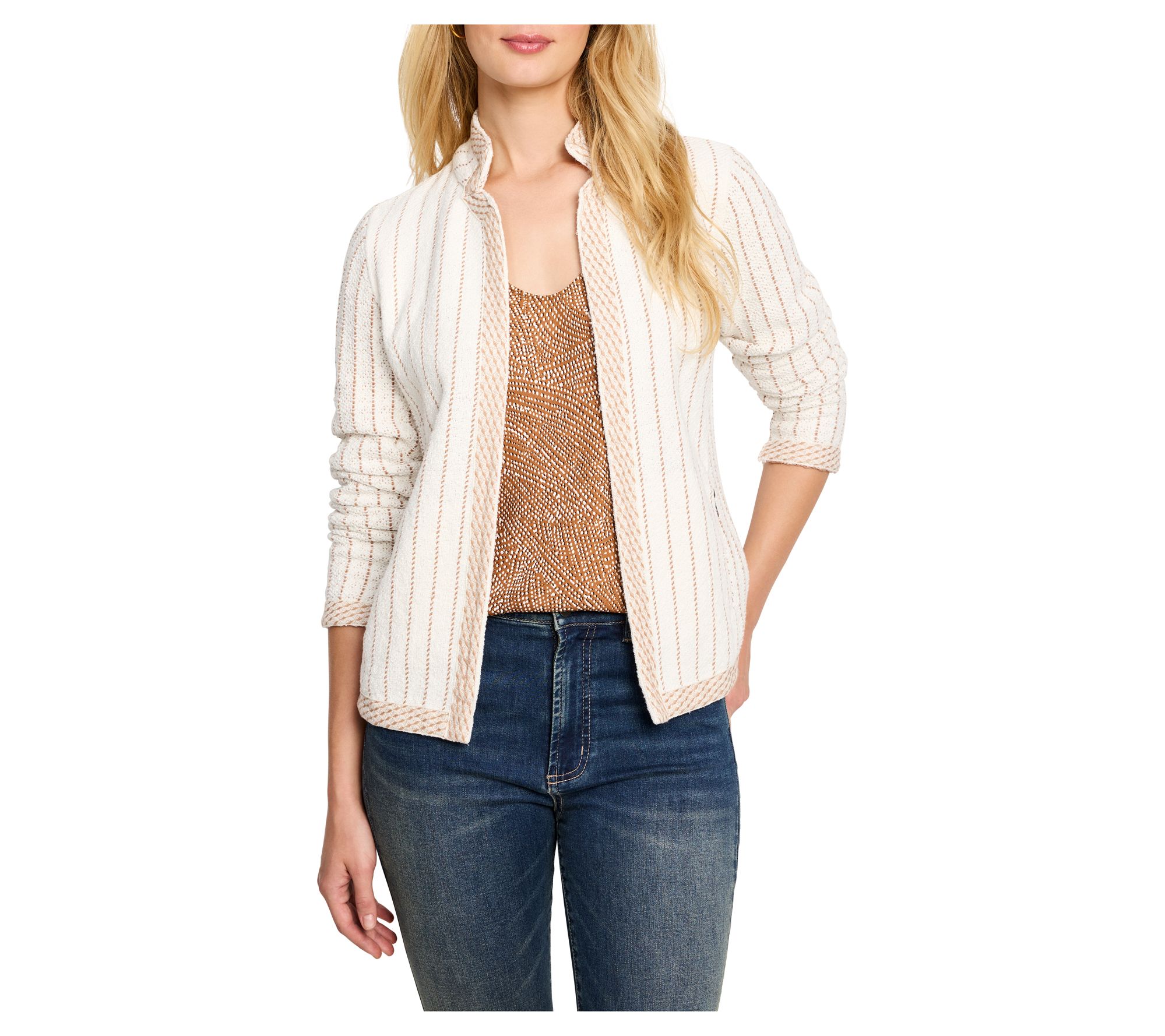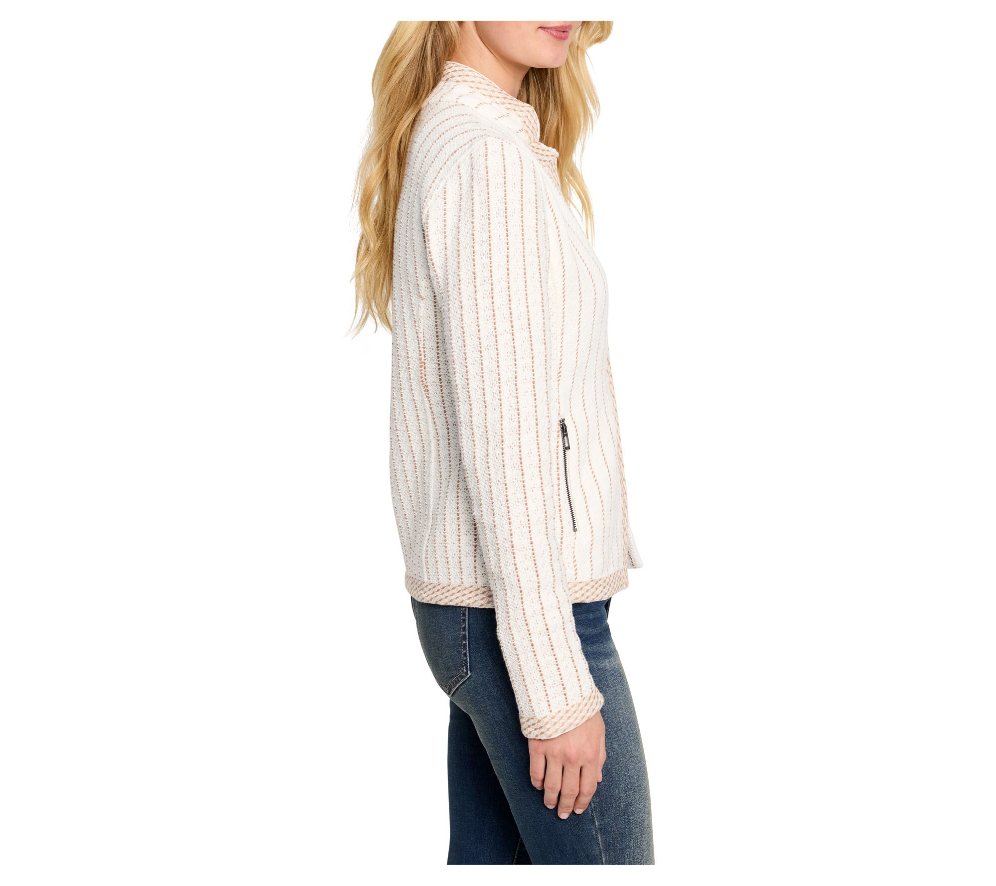 NIC+ZOE Pinstripe Notch Collar Knit Jacket