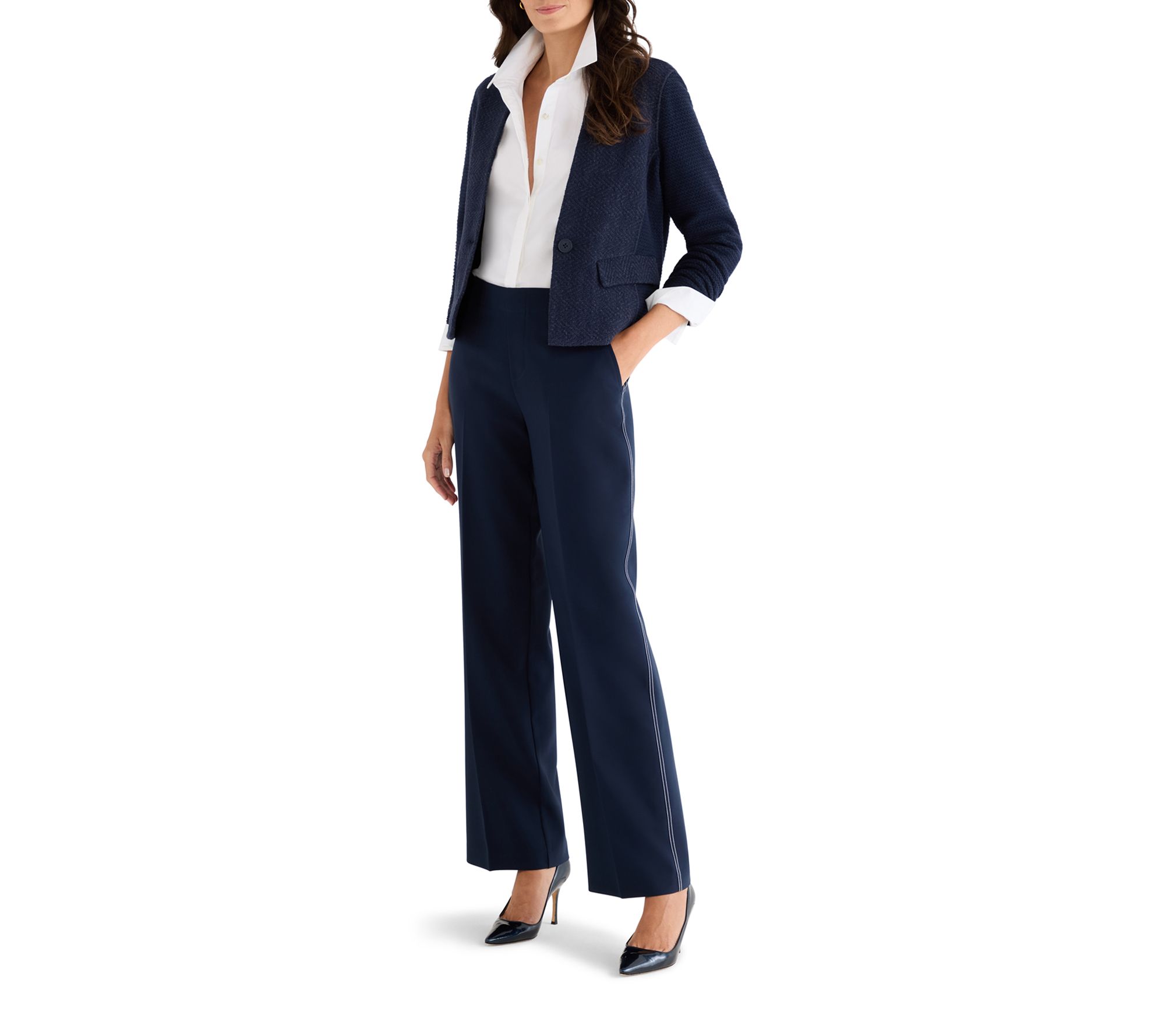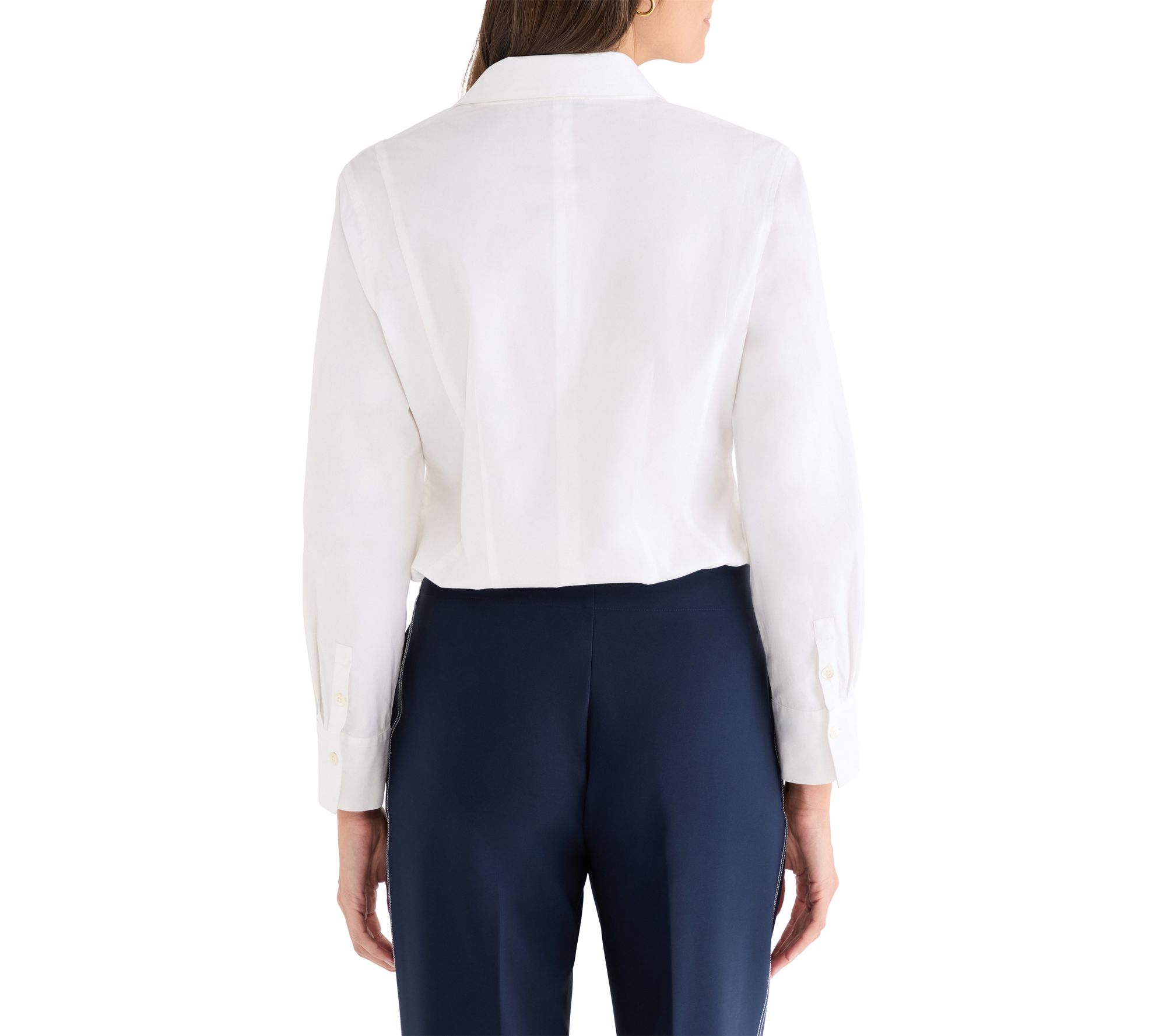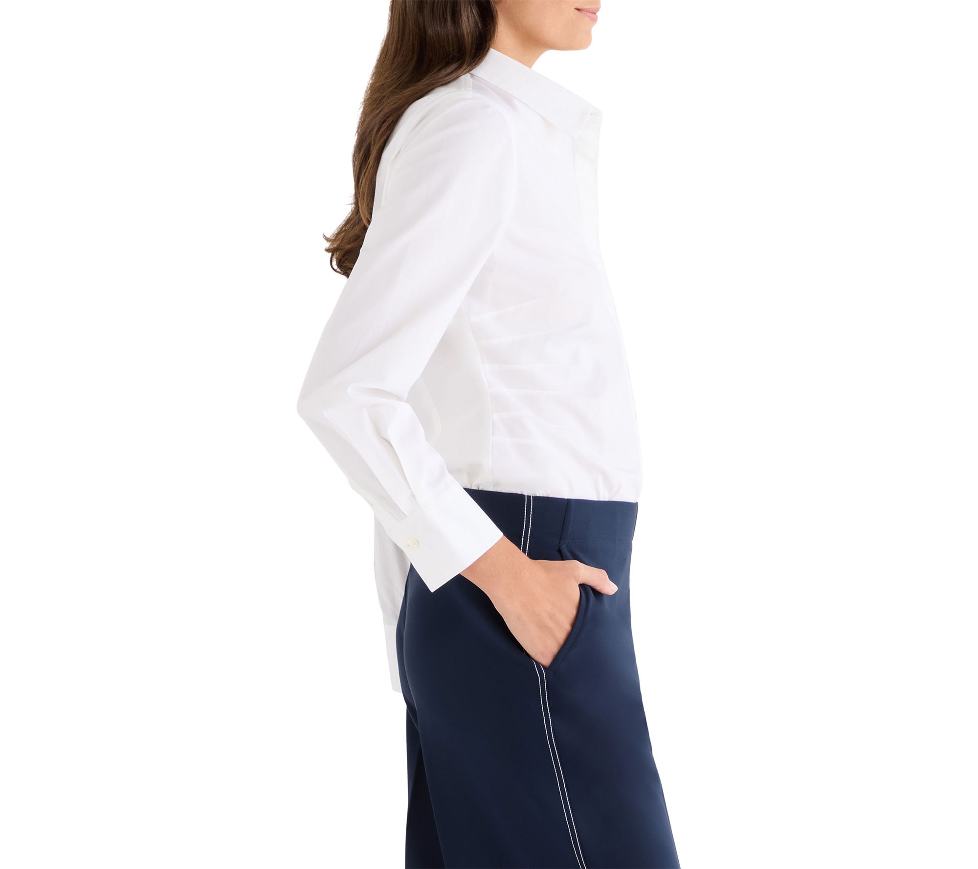 Whether you're heading to the office or meeting friends for brunch, this stretch cotton shirt effortlessly combines classic charm and modern femininity. Radiating pintuck pleats and back darting flatter your waist, while the sophisticated woven design keeps your look crisp and polished throughout the day. From NIC+ZOE.