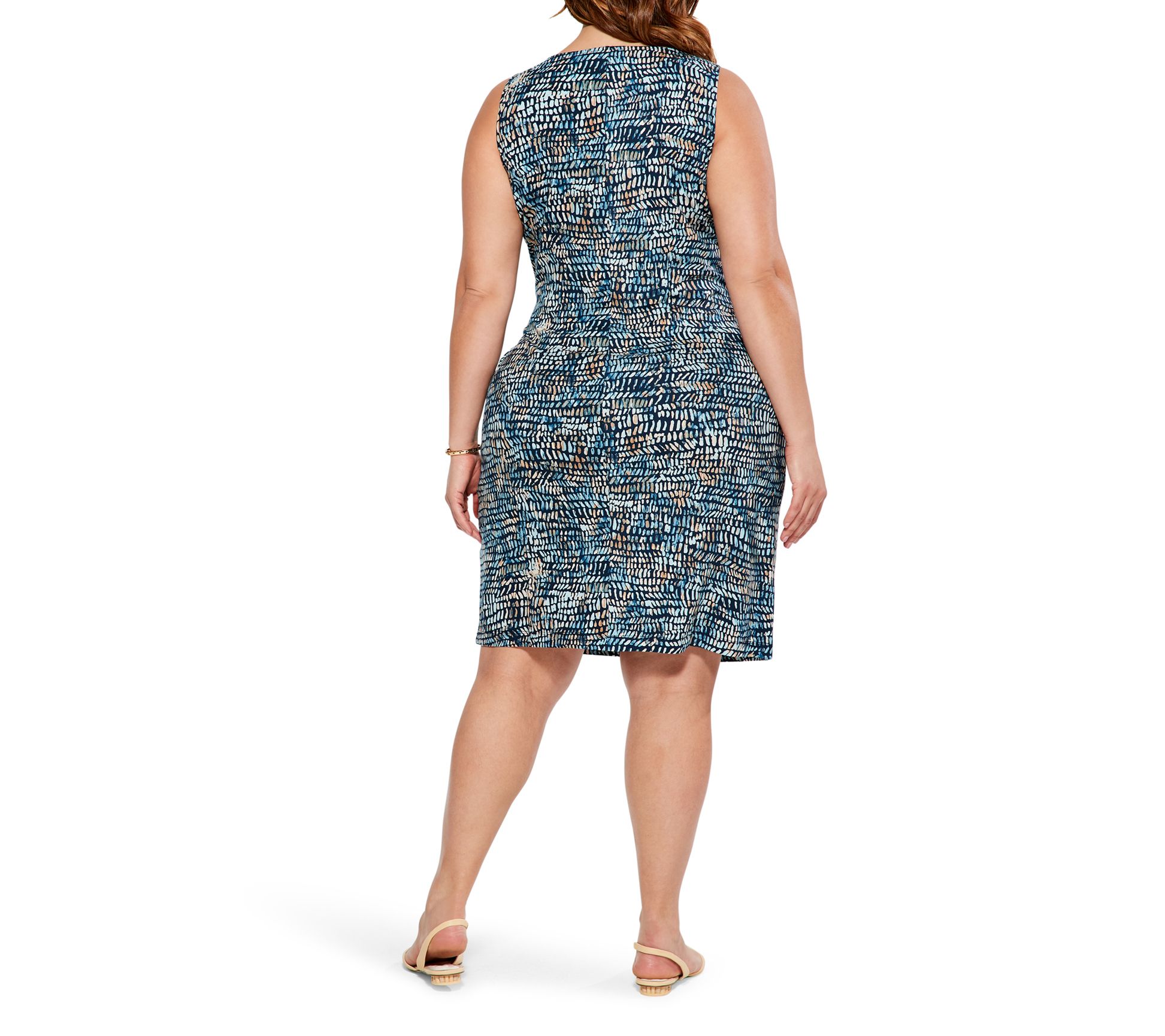 • Features: crew neckline, sleeveless, side twist, above-the-knee length