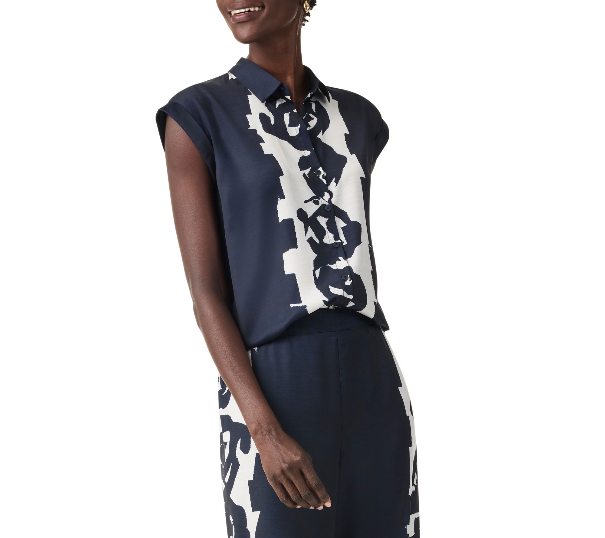 Elevate your wardrobe with the NIC+ZOE rose bloom collared button-front blouse. Featuring a brilliant abstract floral design in striking dark indigo and white, this blouse is the statement piece of any outfit. Pair it with the matching pant for a chic set, or style it on its own for versatile looks. From NIC+ZOE.