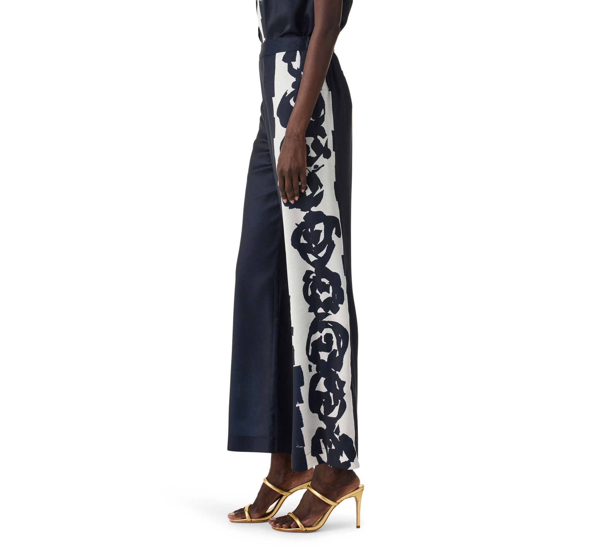 Elevate your wardrobe with the NIC+ZOE rose bloom wide-leg pant. Featuring an abstract rose print along the side, this full-length pant is perfect for pairing with the matching top or sweater for a coordinated look, or with a simple top to let the pattern shine. The pull-on style with extra stretch at the back of the waist ensures all-day comfort. From NIC+ZOE.