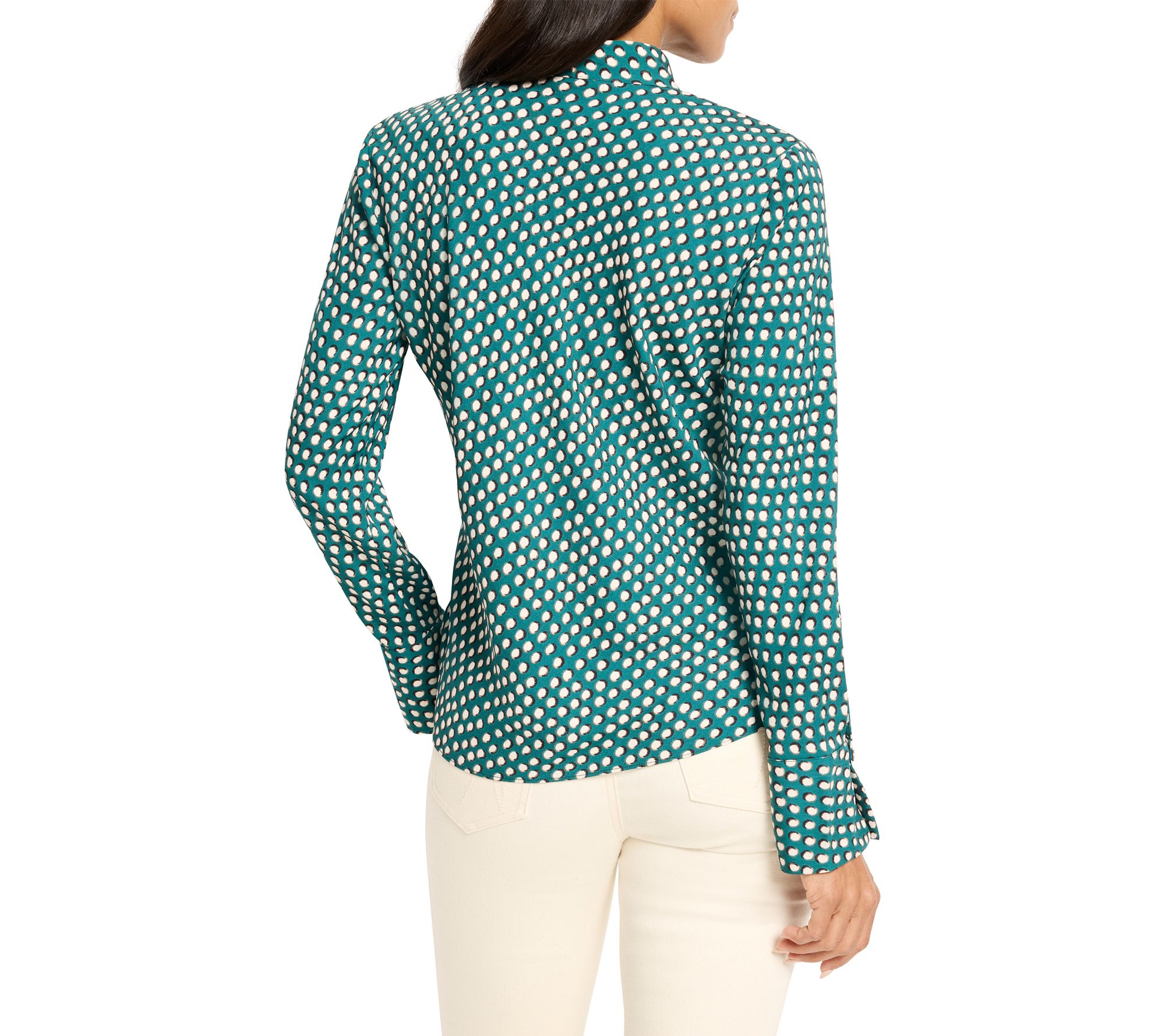 Features: V-neckline, long sleeves with single-button split cuffs, pull-on style
