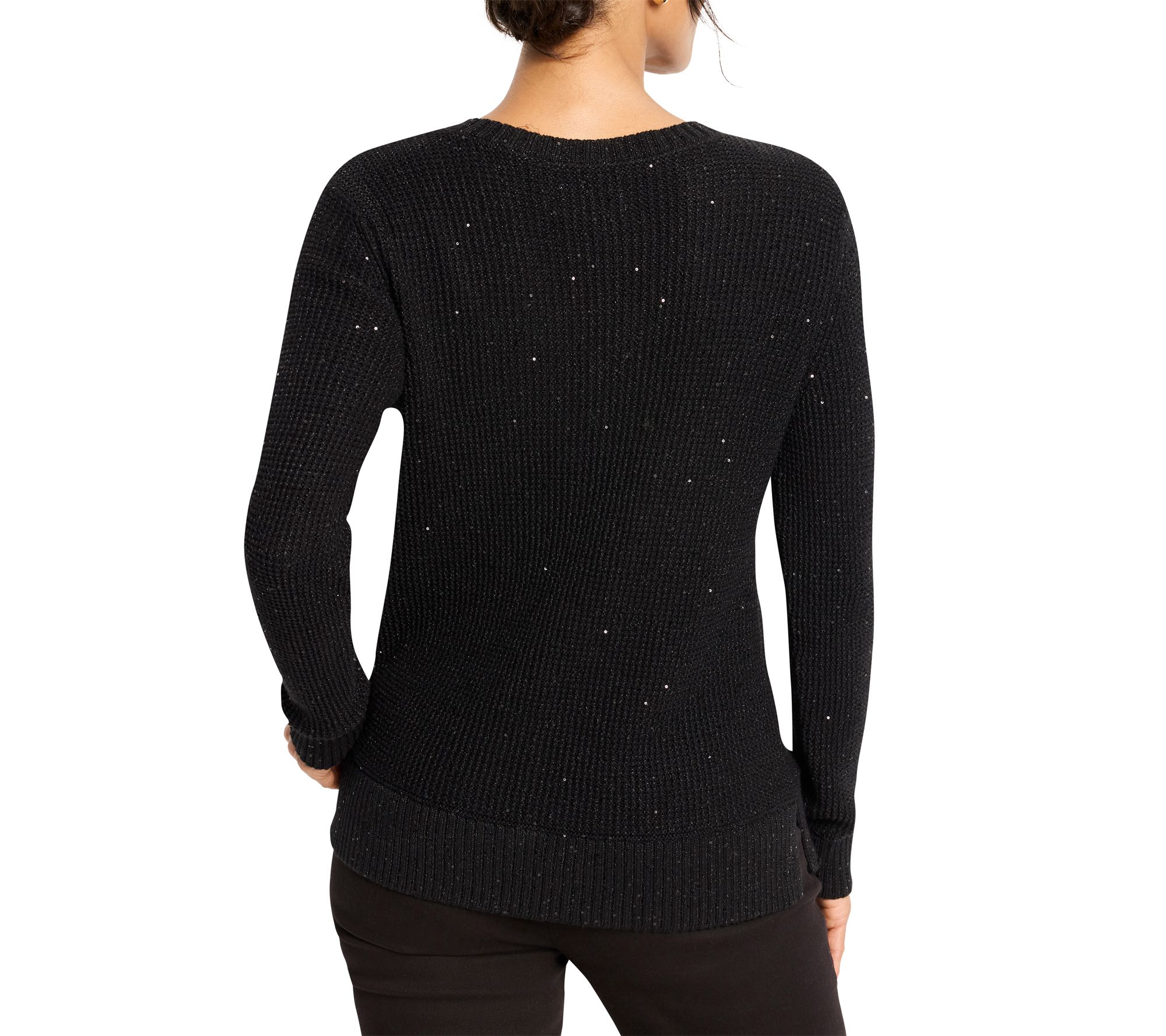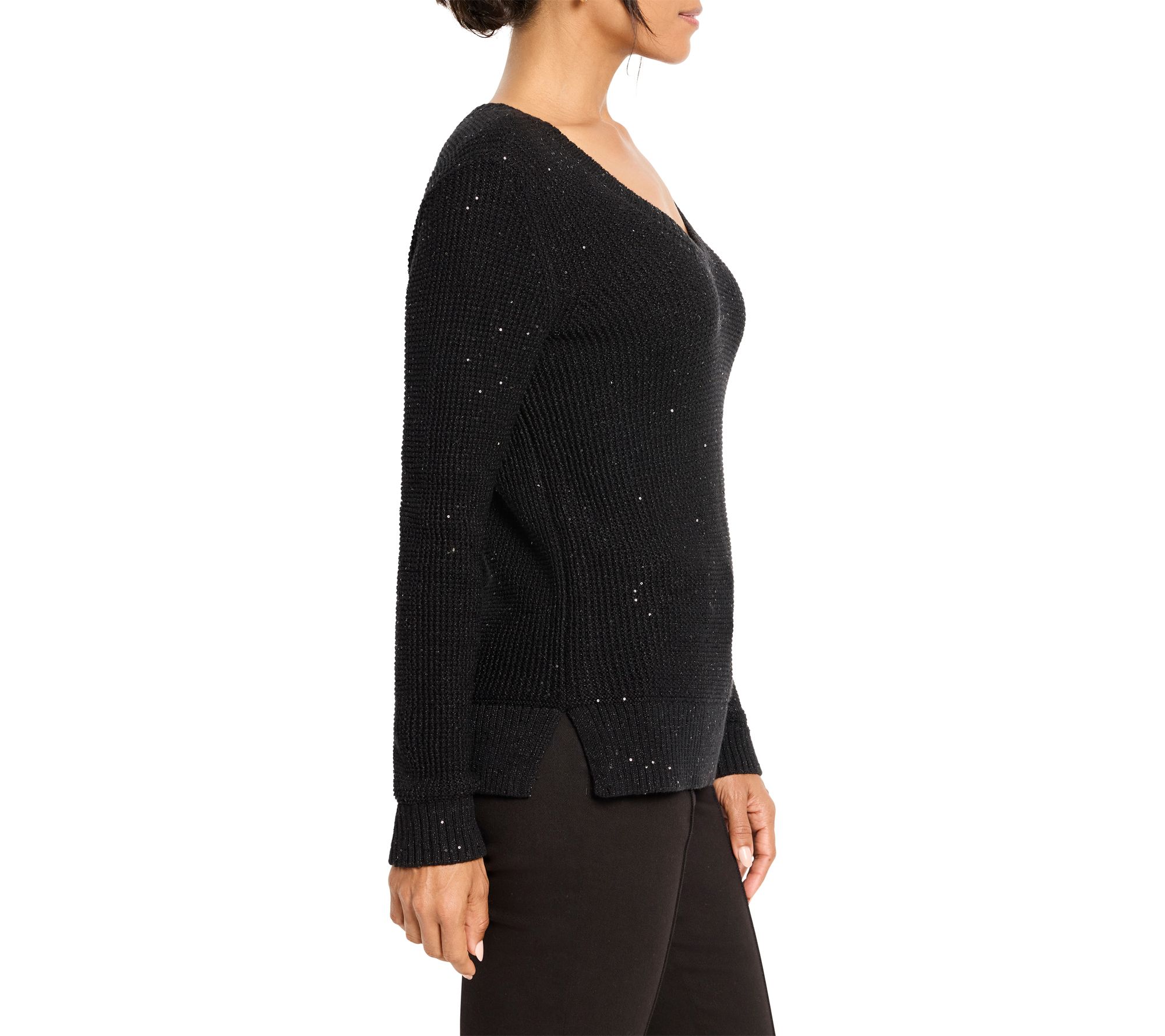 Shimmering with subtle detail, this sweater brings a touch of elegance to everyday moments -- whether you're catching up with friends over coffee or heading out for a cozy evening stroll. The waffle texture and flattering V-neck elevate your look with effortless style and comfort, making it easy to dress up or down for any occasion. From NIC+ZOE.
