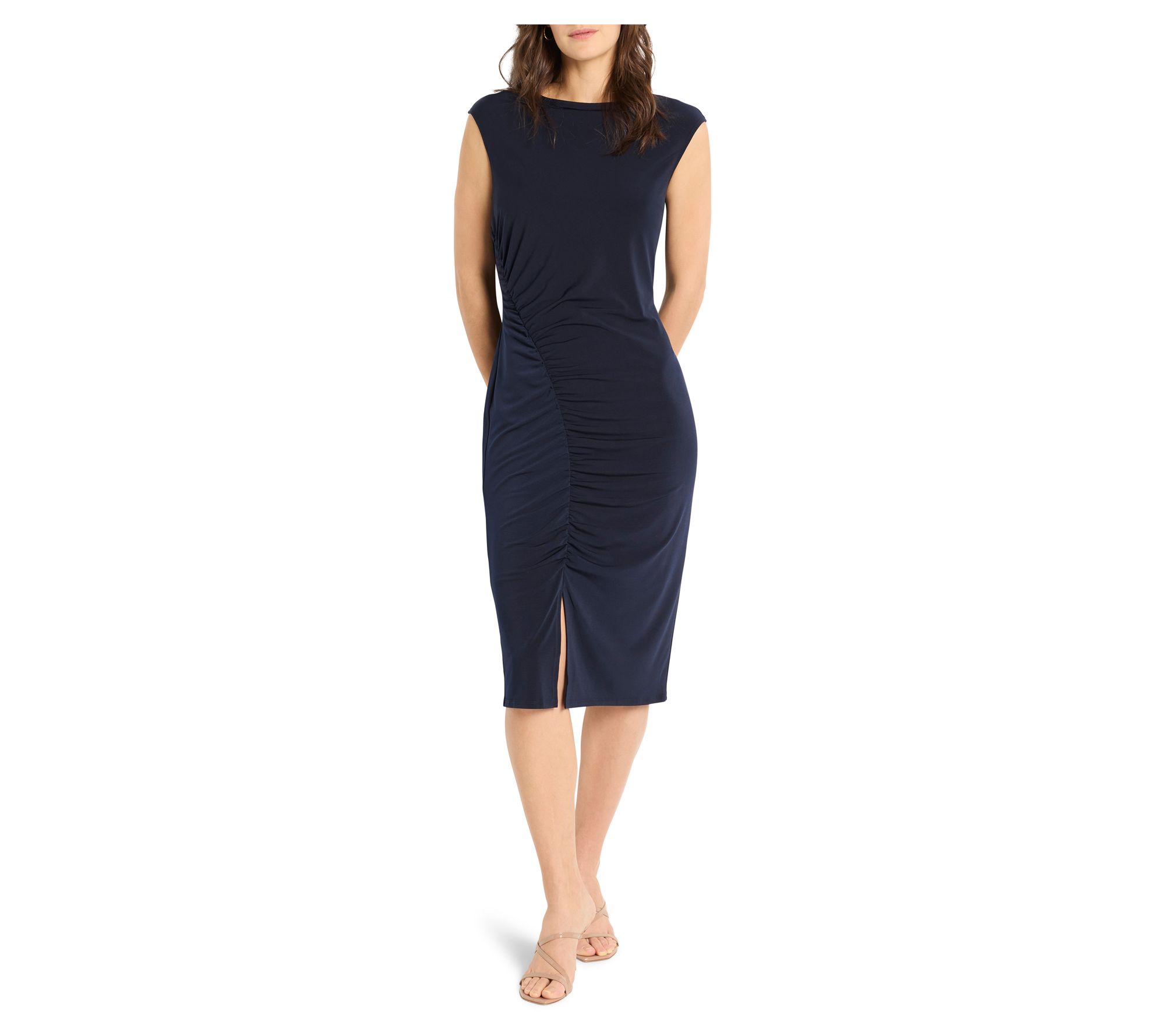 Take your style up a notch with this NIC+ZOE side-ruche dress. Its high-twist jersey fabric offers a polished look, while the angled smocking detail and fitted sheath silhouette flatter your figure. The bateau neckline and sleeveless design ensure an elegant touch for any occasion. From NIC+ZOE.