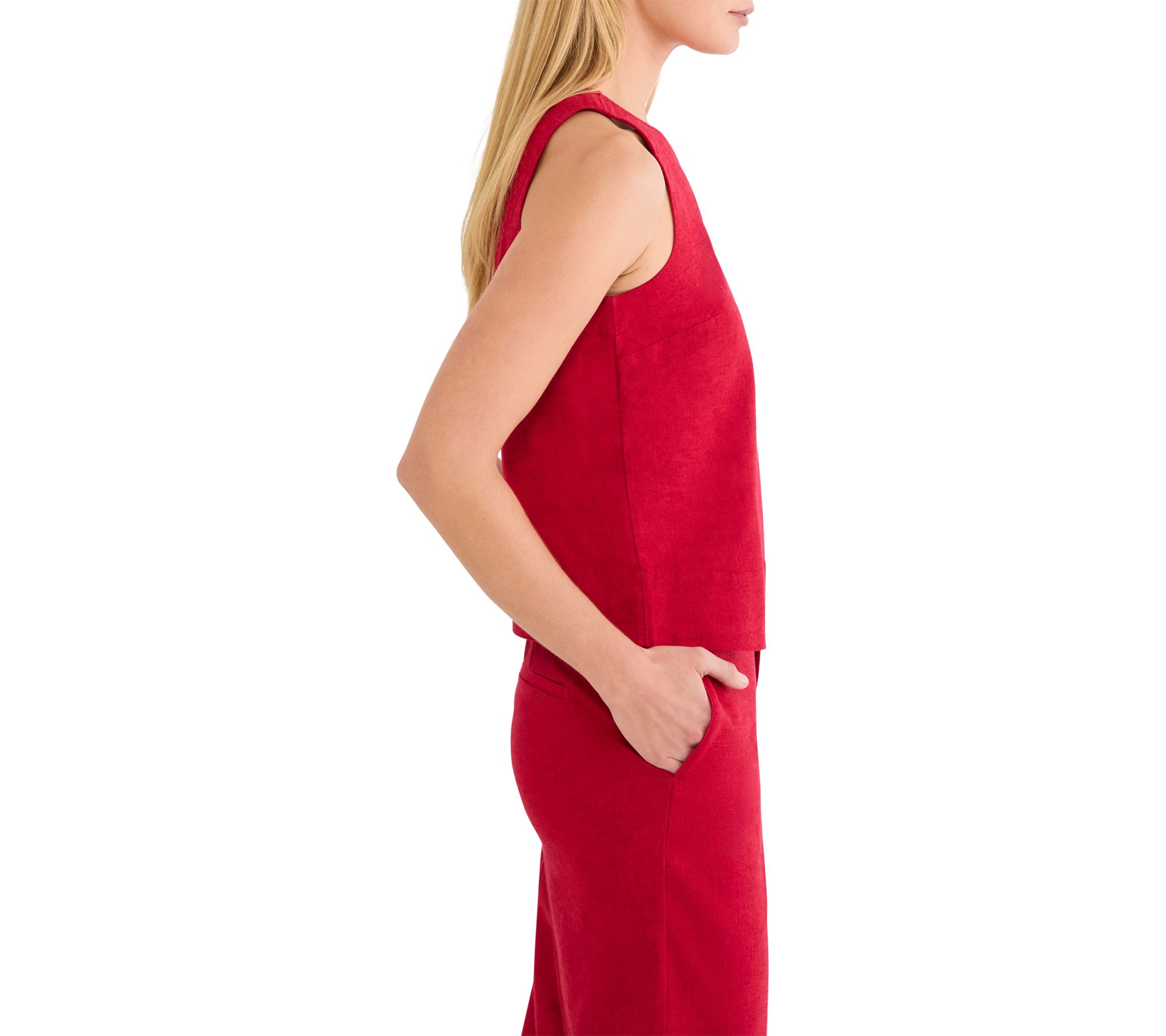 A breezy tank top to take you from running errands to brunch with friends, this stretch linen style is designed for laid-back comfort with easy movement. The lightweight fabrication keeps you cool during warm afternoons, while simple pull-on styling lets you transition effortlessly through whatever your day brings. From NIC+ZOE.