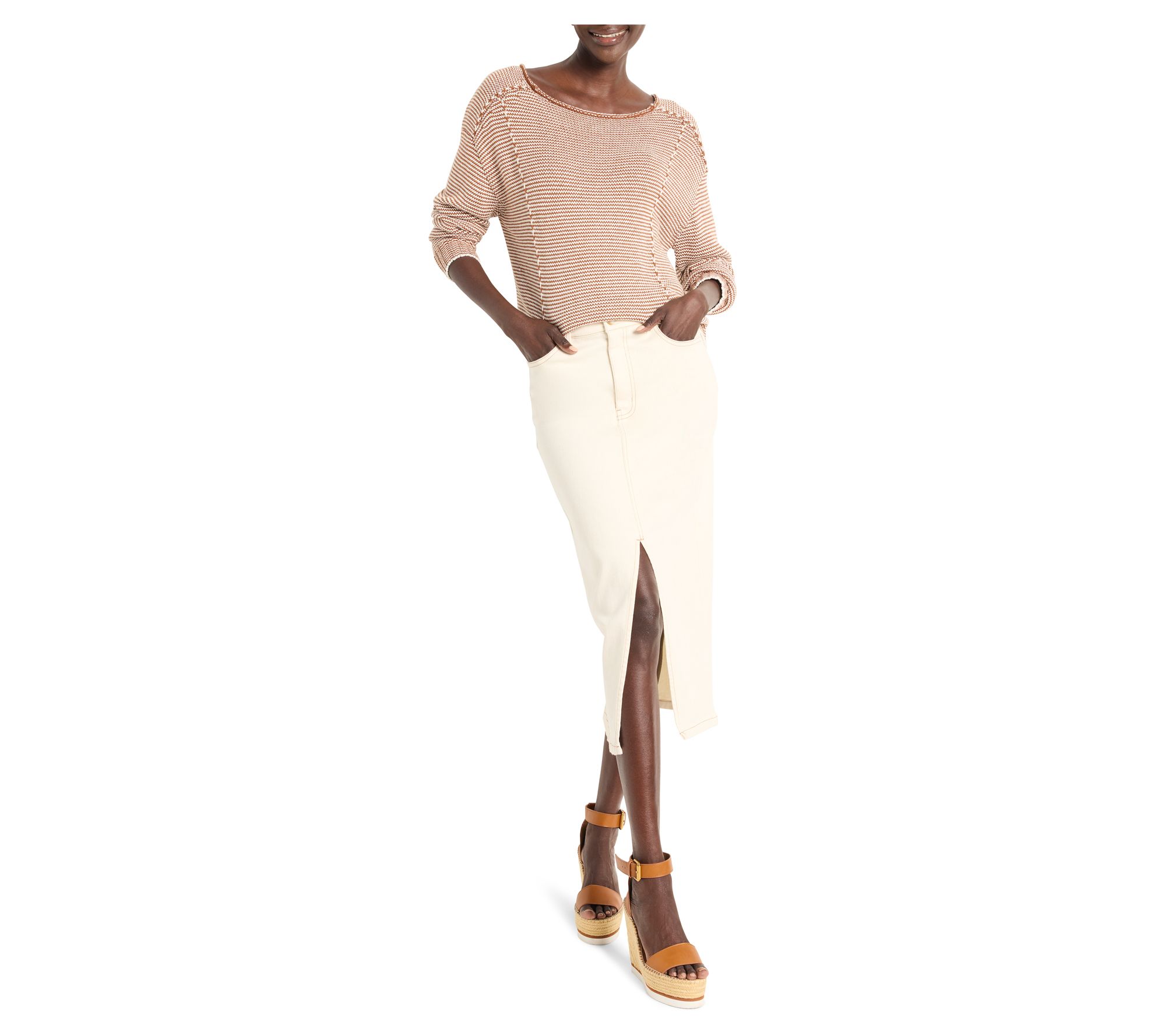 NIC+ZOE Striped Seamed Cotton Cord Sweater