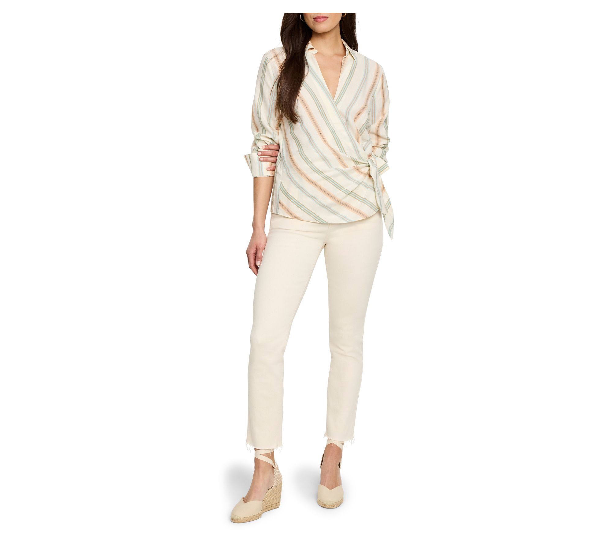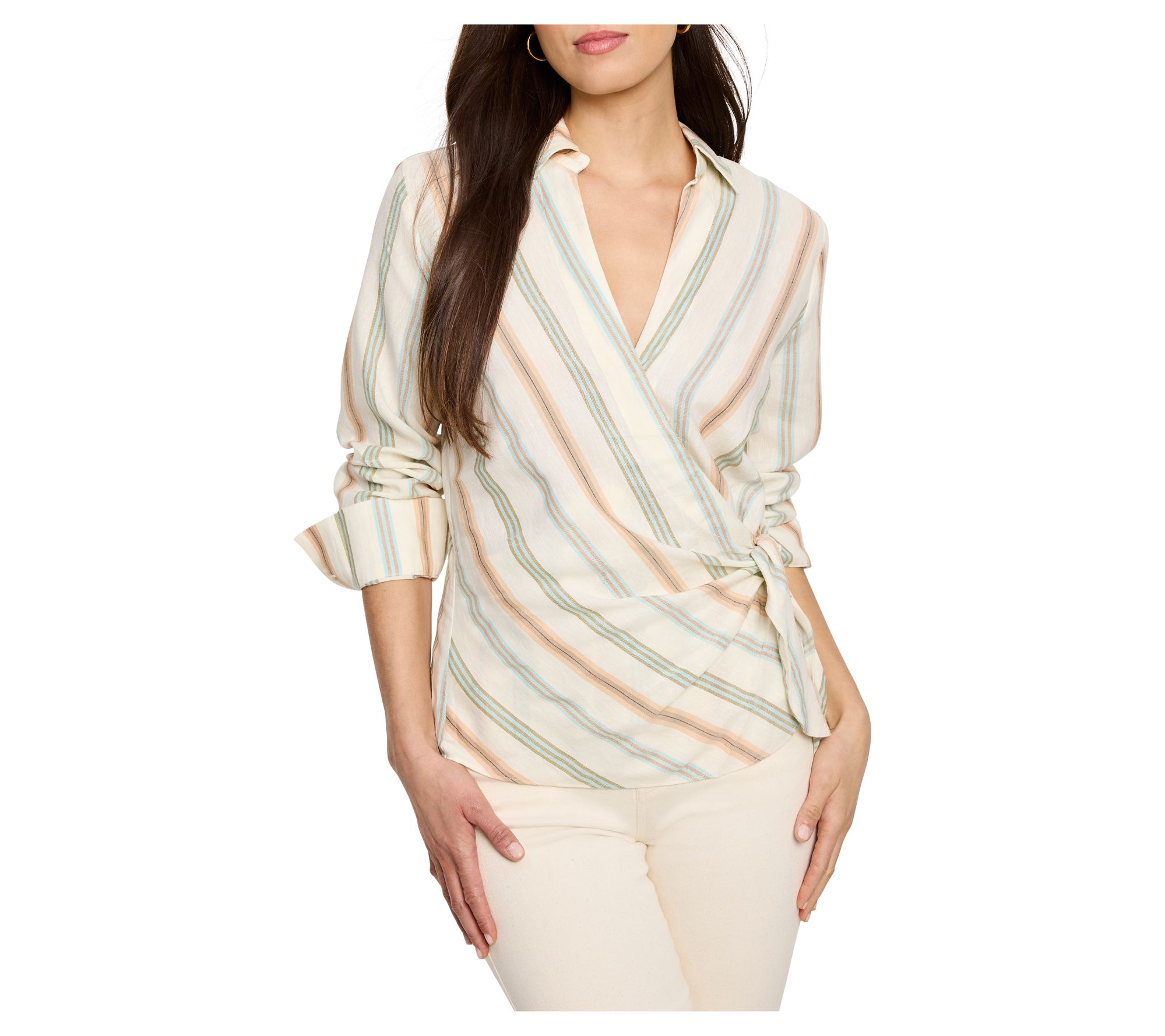 Enjoy a chic, lightweight look with this NIC+ZOE striped weekly wrap top. The lyocell-hemp blend lends a linen-like texture, while the yarn-dyed stripes provide understated elegance. A wrap-effect design with a tie and secure snap closure ensures it stays perfectly in place. From NIC+ZOE.