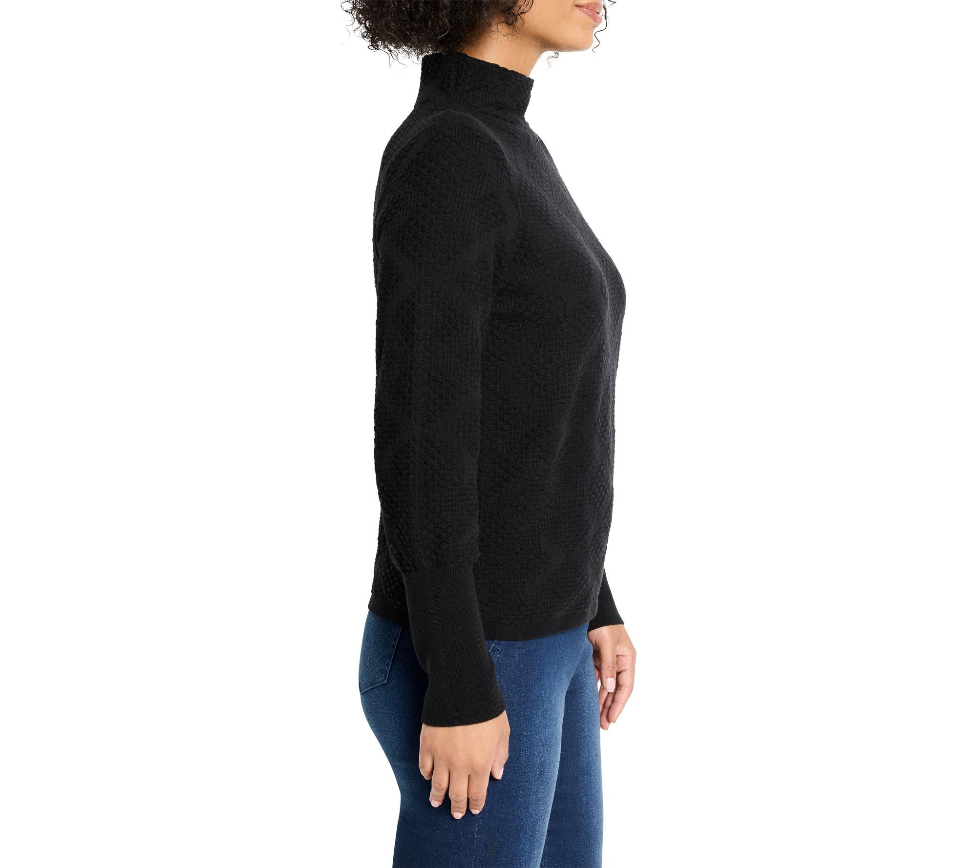 Whether you're heading to brunch with friends or cozying up at home, this textured sweater brings a touch of style to any moment. The diamond pattern adds visual interest while the soft knit keeps you comfortable through every season. From NIC+ZOE.