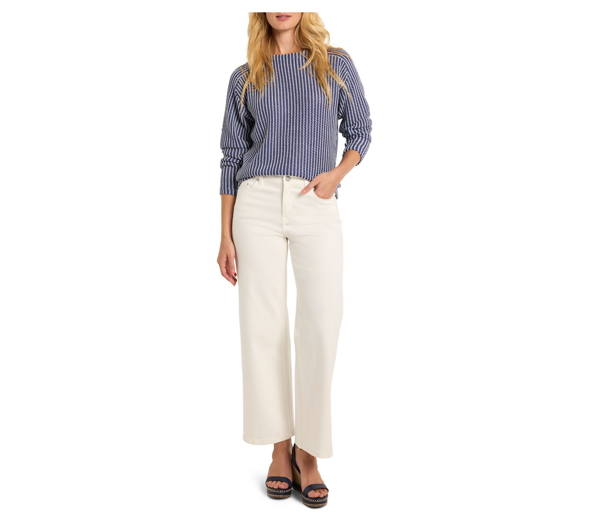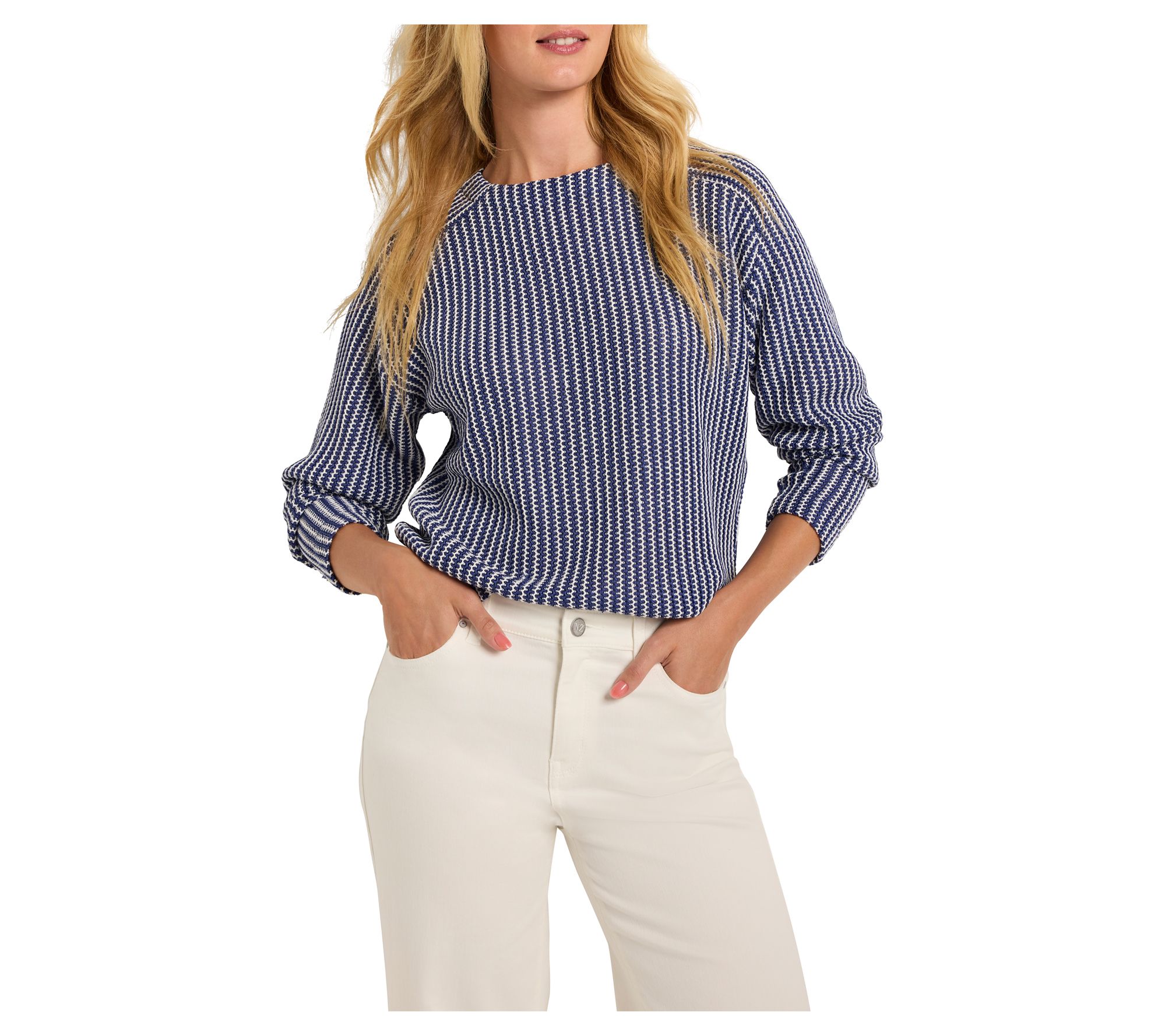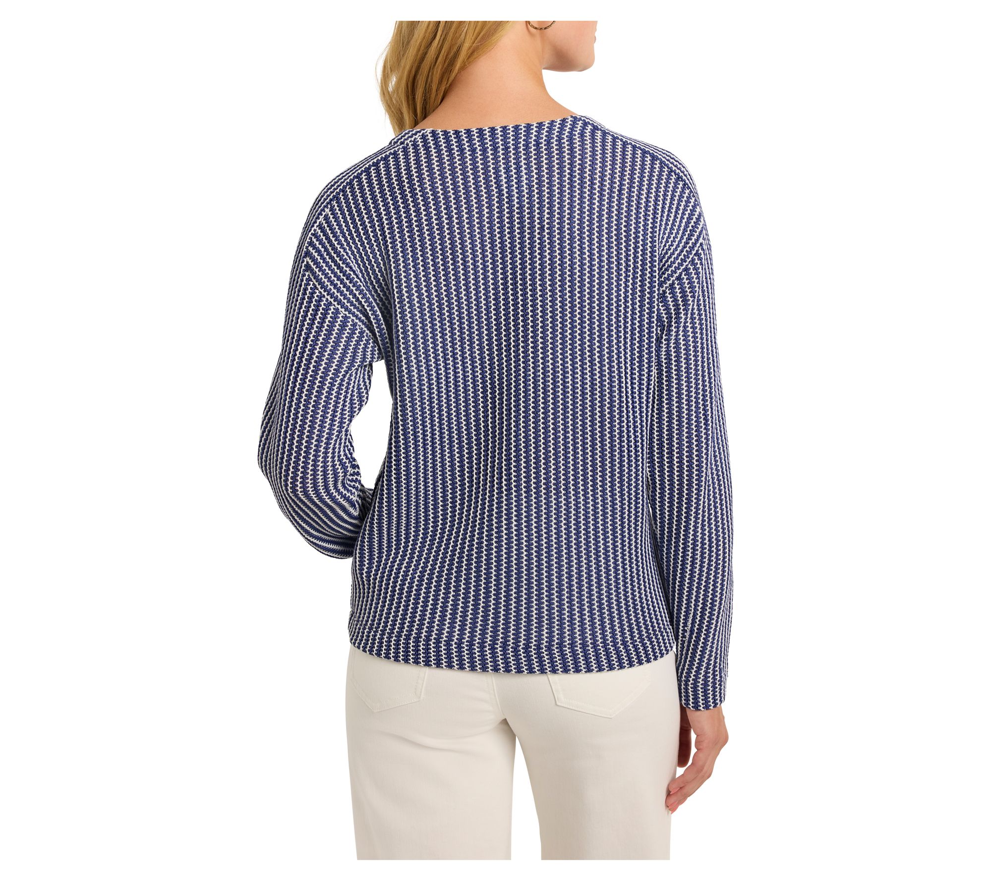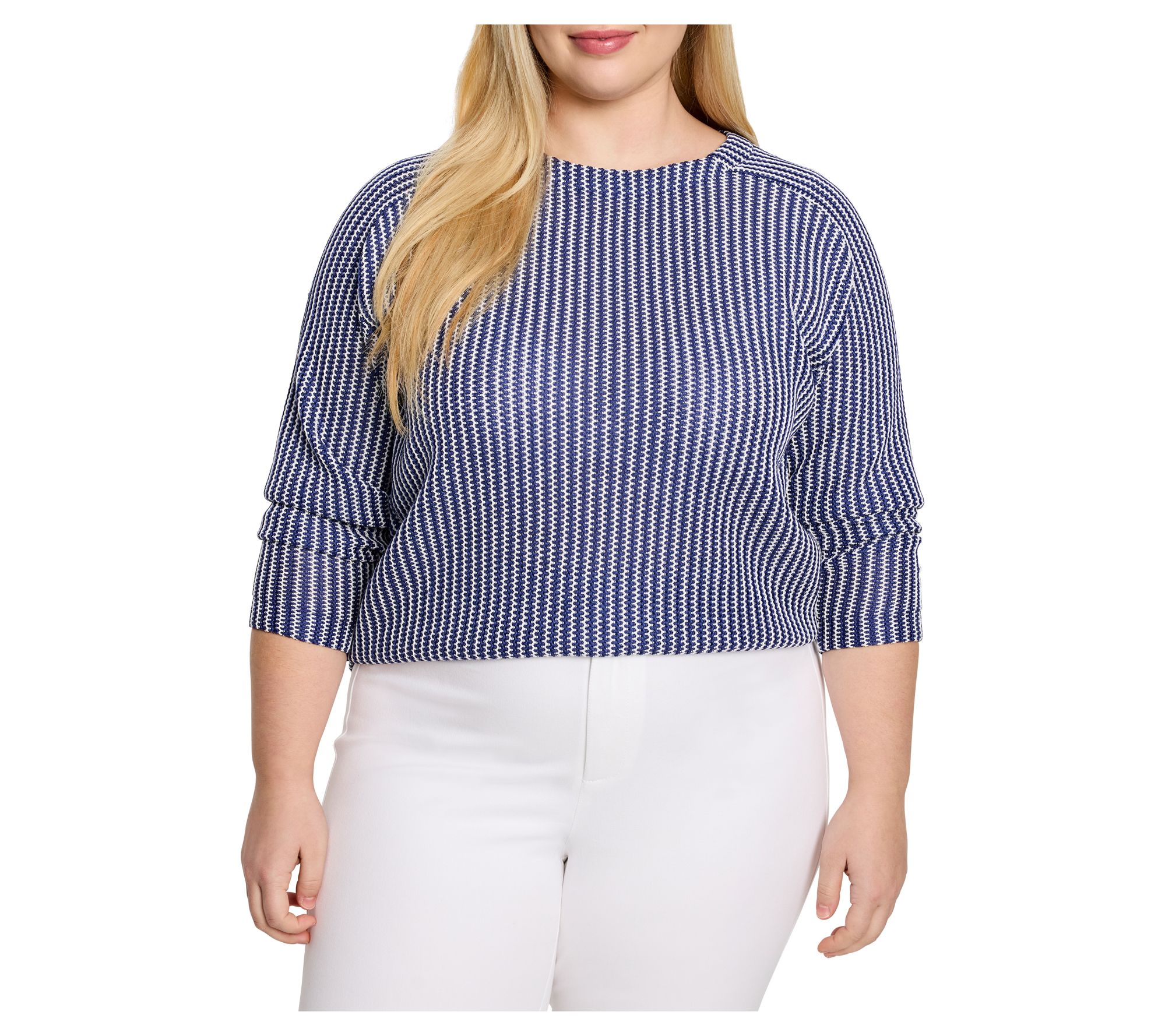 Elevate your everyday look with the NIC+ZOE zig zag blues top. Its eye-catching zig zag stitch and saddle shoulders create a standout, detailed pattern, while the roomy, easy fit ensures you stay comfortable. Pair it with your favorite denim for a casual chic vibe or dress it up for a more refined ensemble. From NIC+ZOE.