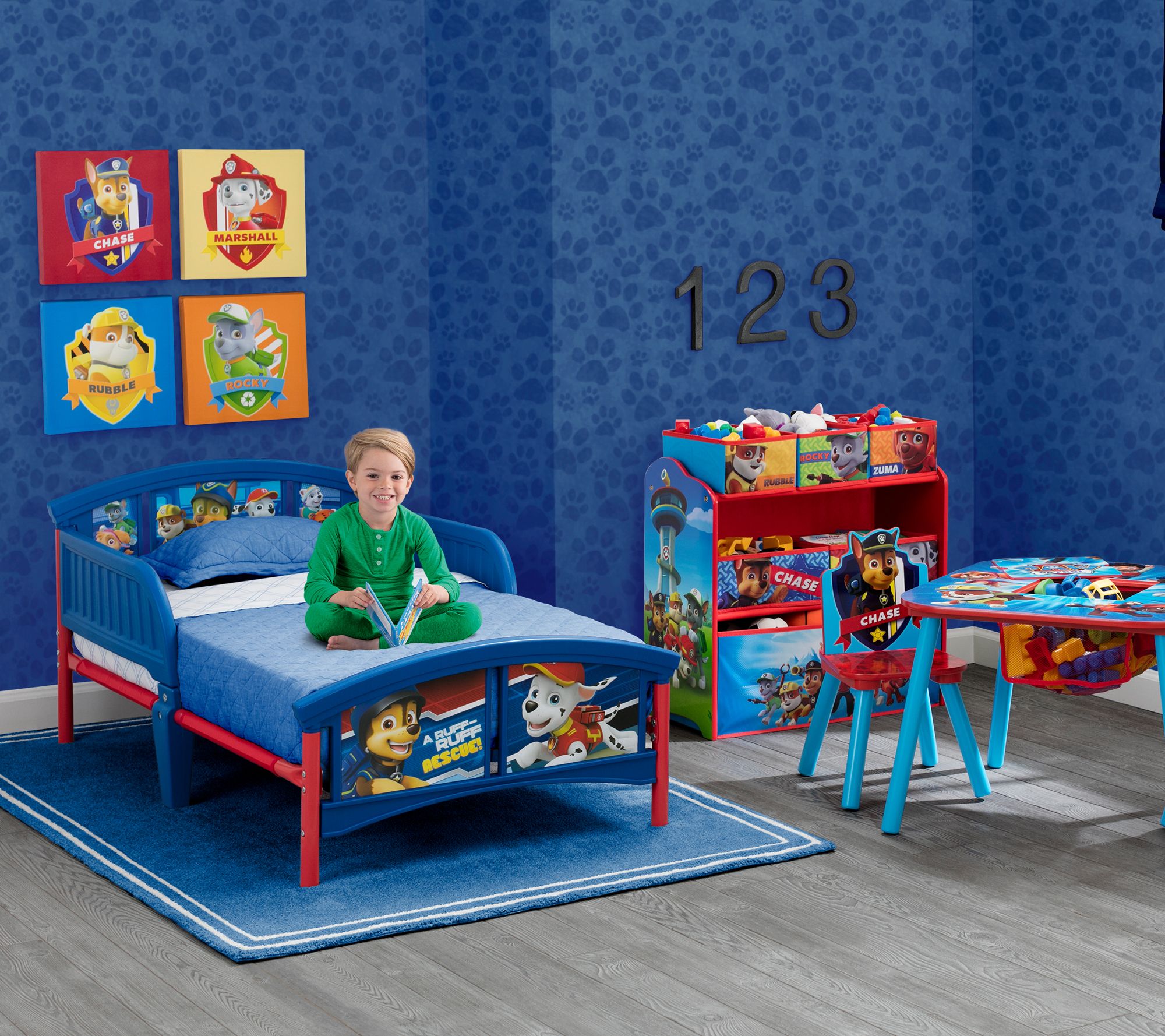 Featuring adorable decals of Chase, Marshall, Rubble, and all their furry friends, this sturdy toddler bed provides a sleep space that your little one will want to stay in all night long. From Delta Children.