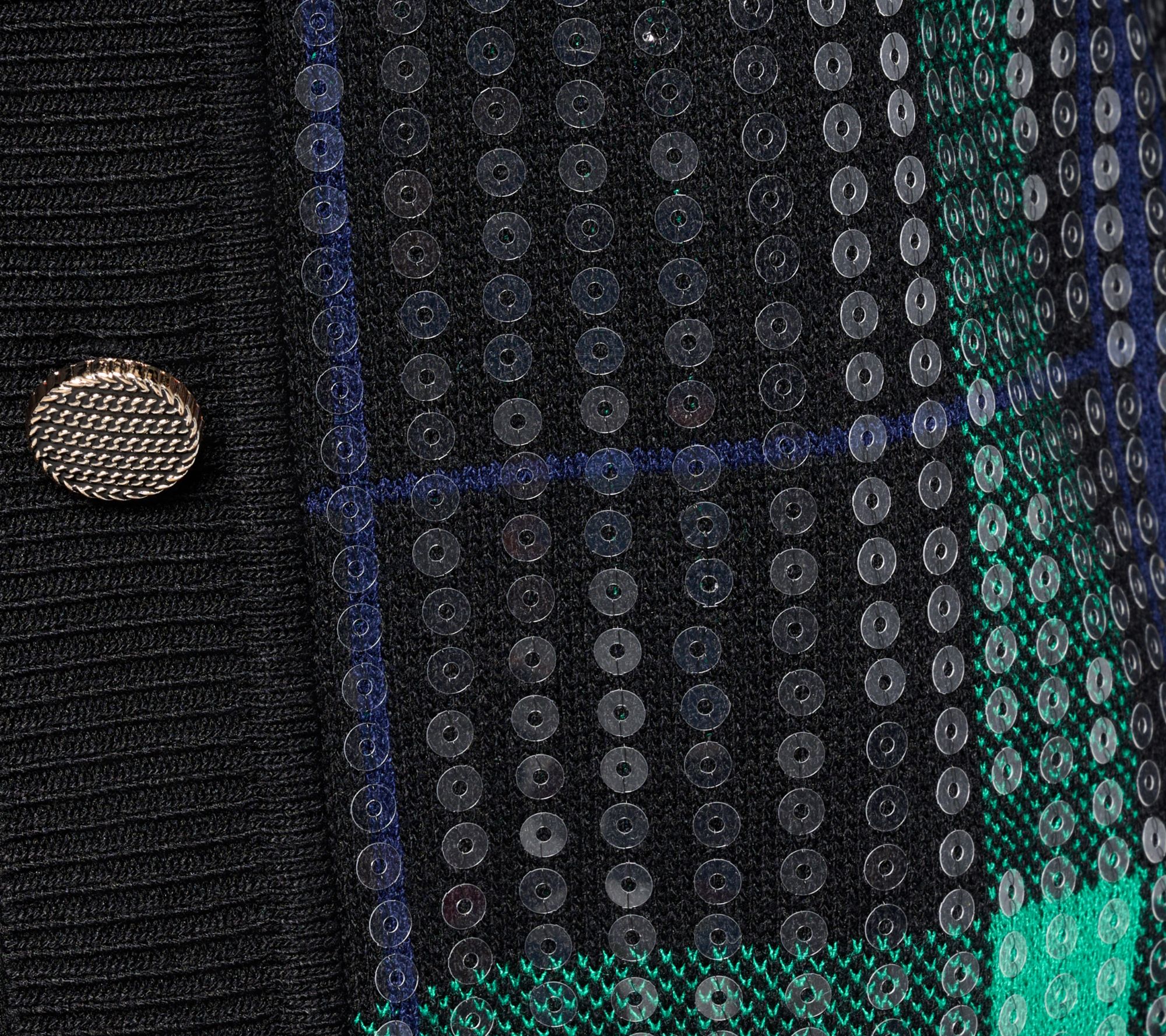 Do it up bright. This sequined cardi shines everywhere from the dance floor to an intimate dinner, yet feels extra comfy thanks a soft knit back panel -- all the better for mixing and mingling. From nicole by Nicole Miller.