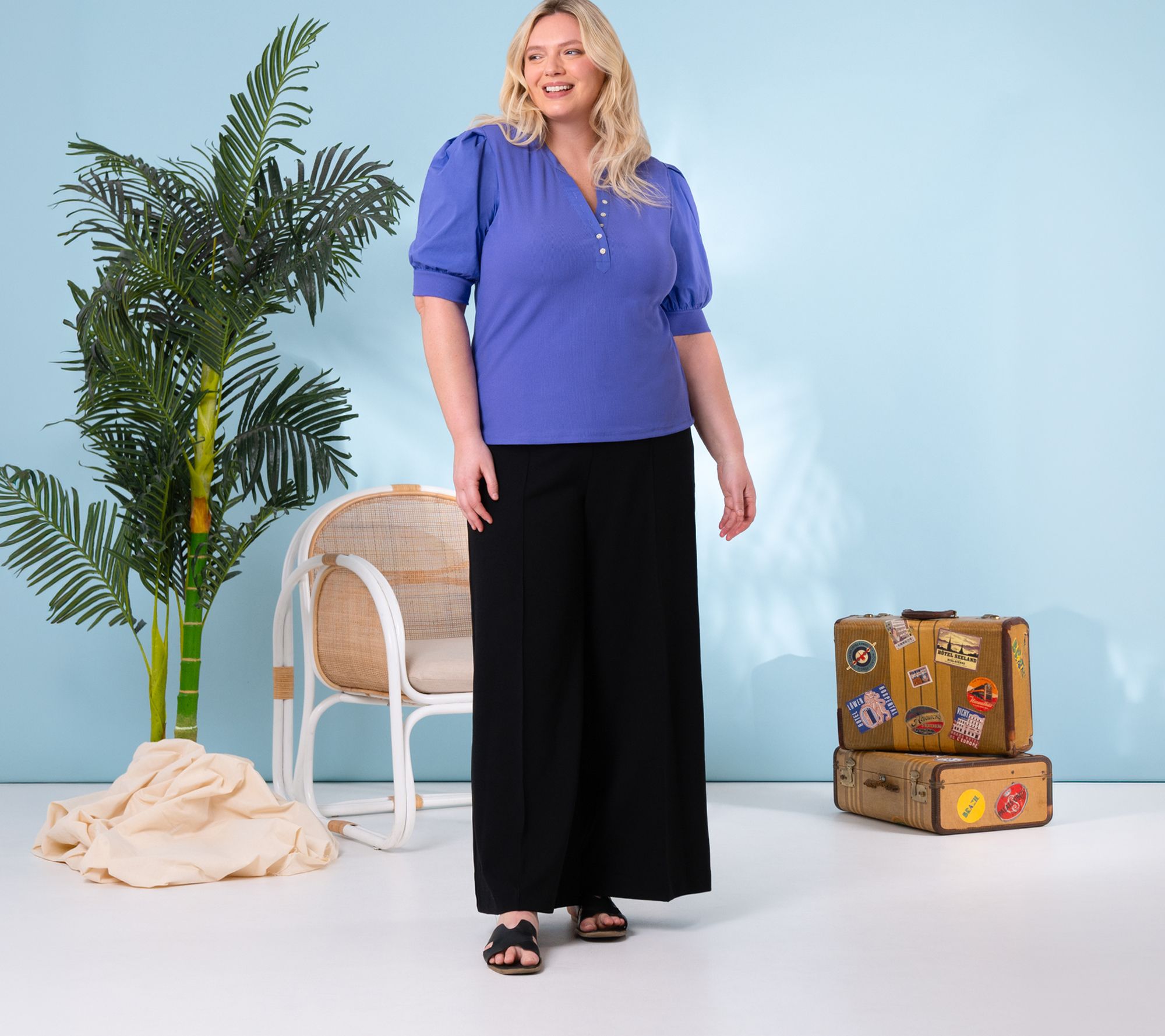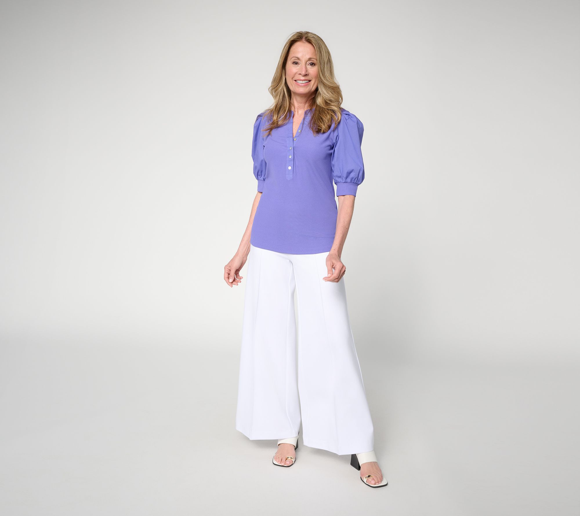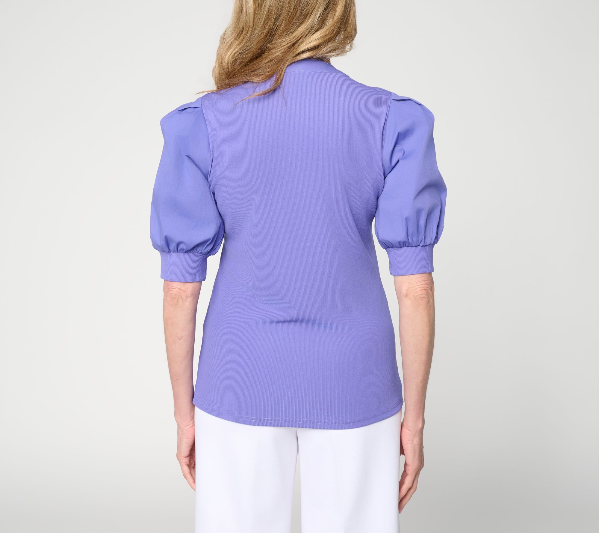 An afternoon meeting or chic weekend plans? Put on the polish with this mixed media top. Woven details at the collar and statement puff sleeves add a modern fashion moment, while the knit body and cuffs offer comfort designed for all-day wear. From nicole by Nicole Miller.