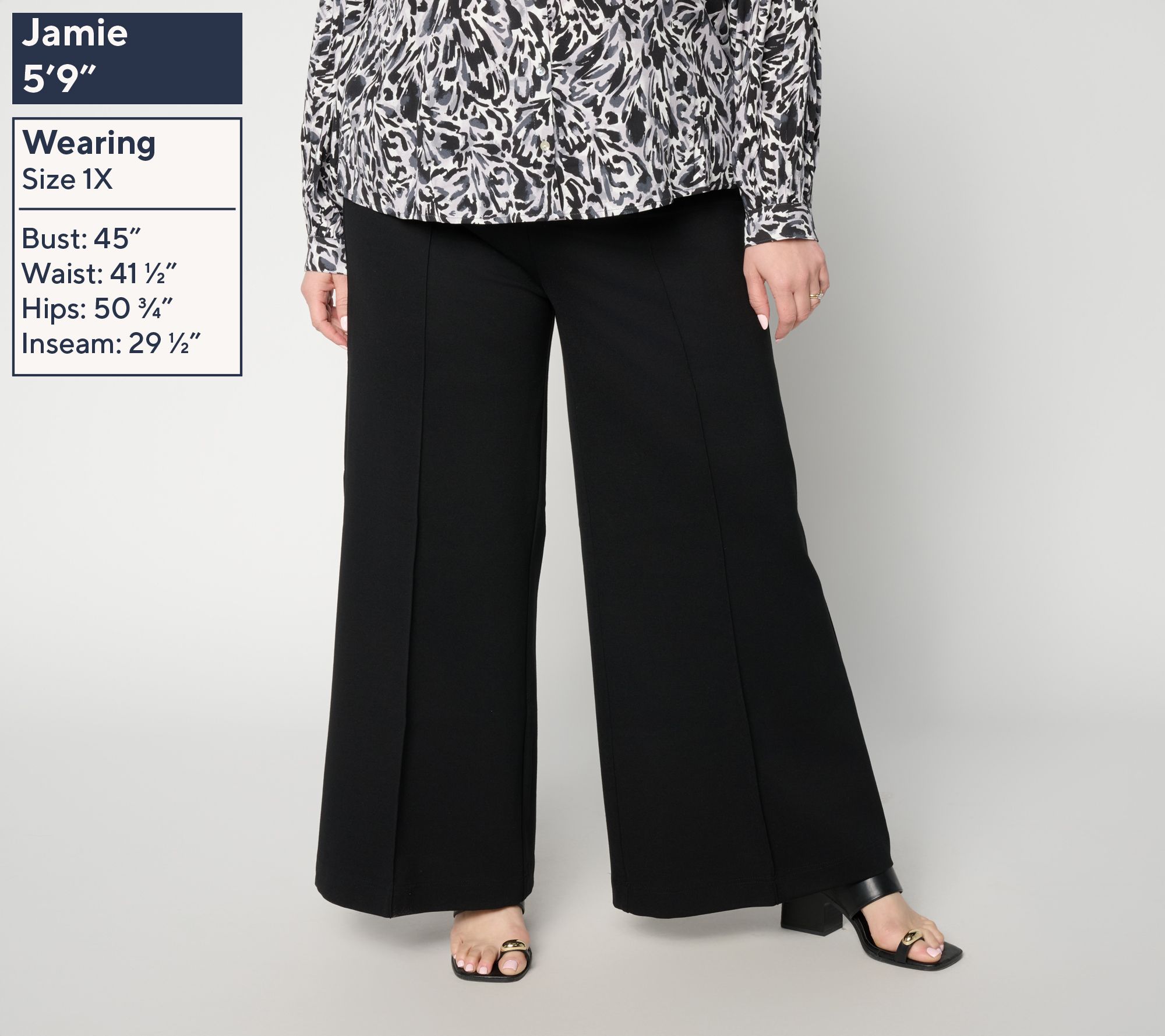 Leg Shape: wide leg; widens fashionably from thigh to leg opening