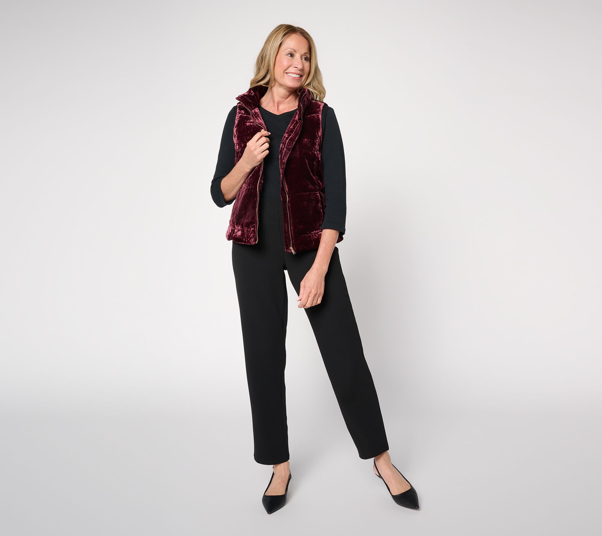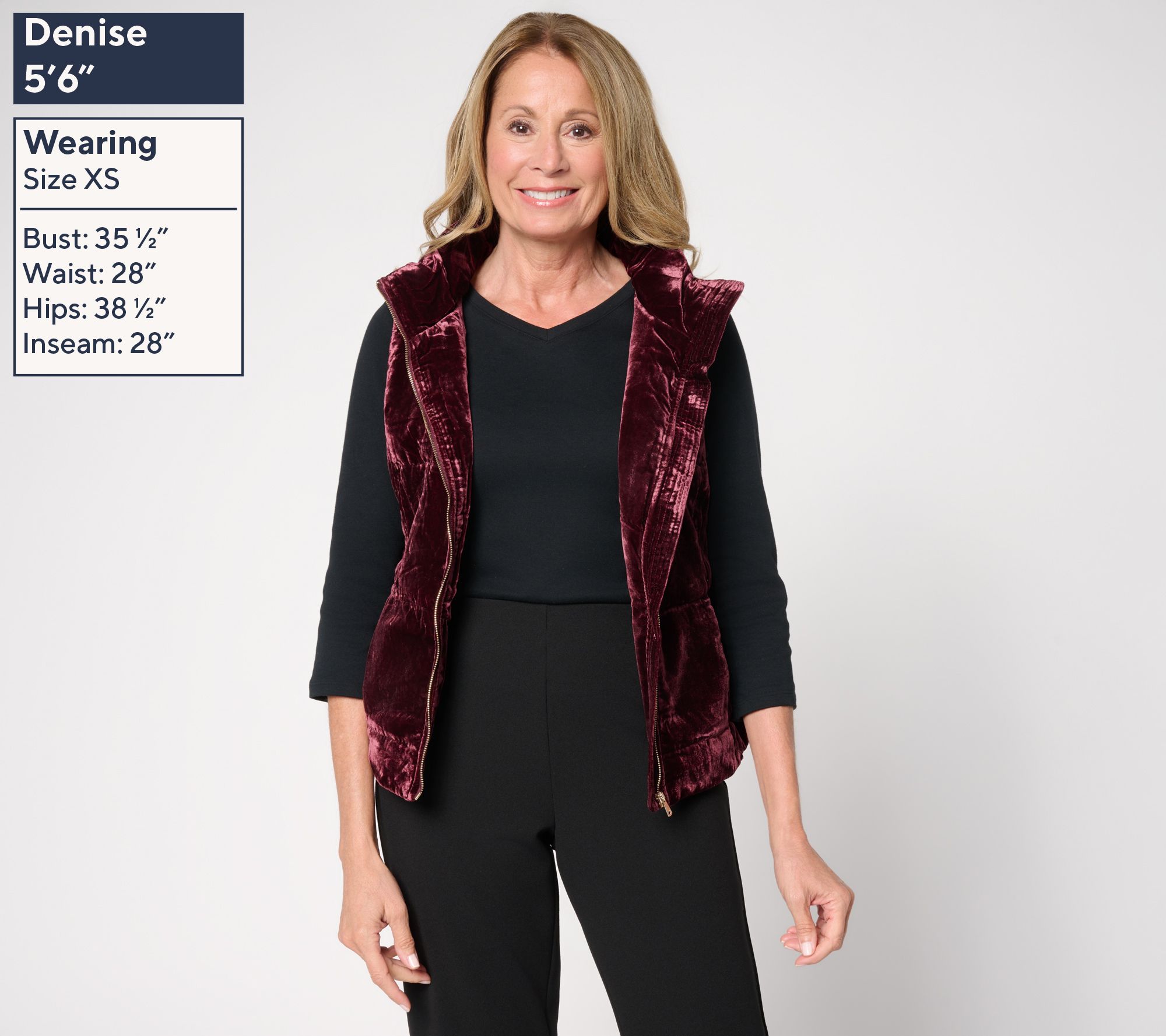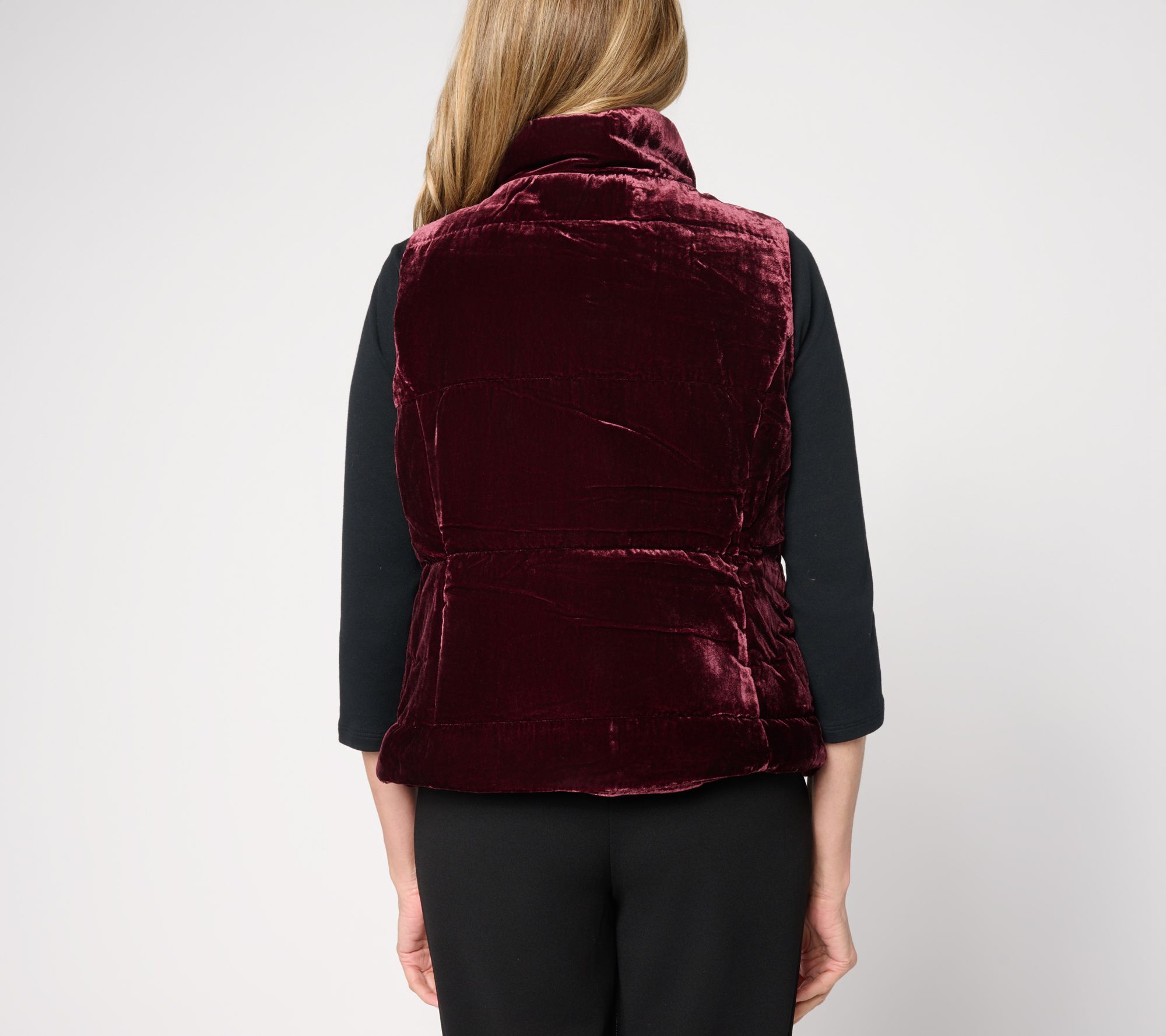 Upgrade your layering game with this stretch velour puffer vest from Nicole Miller -- designed to keep you cozy during morning errands, quick coffee breaks, or extended commutes. Princess seams offer a flattering fit, while the high neck lends extra warmth as temperatures dip. From nicole by Nicole Miller.