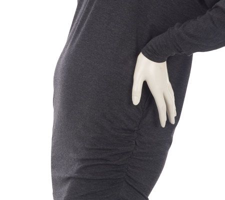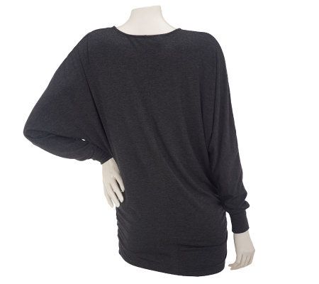 Top off your look. Every closet needs a trendy go-to piece and this tunic is it. With chic details like 3" cuffs, dolman sleeves, a center back seam, and side ruching, this top adds loads of fashion to your look. From the Nicole Richie Collection.