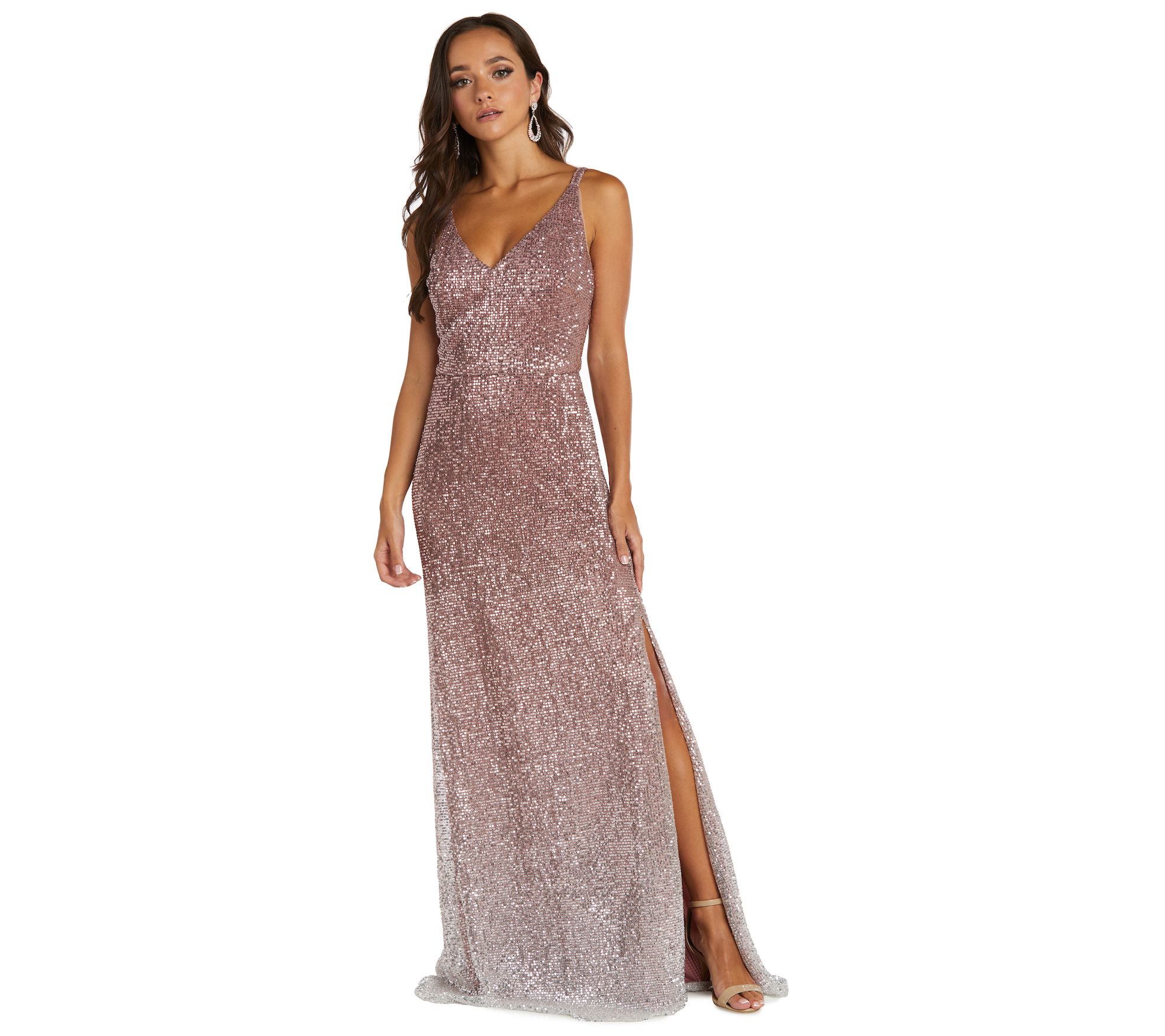 • Features: V-neck, sleeveless, ankle length, sequined design