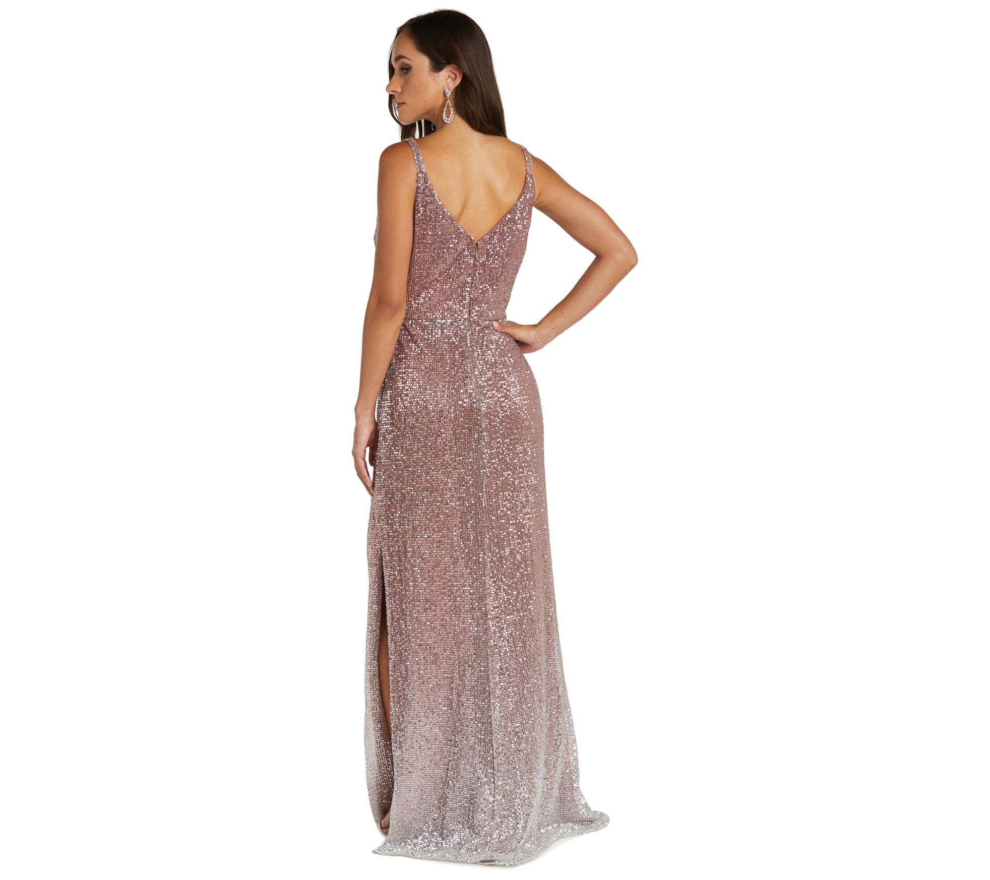 Nightway Long Sequined Gown with High Slit
