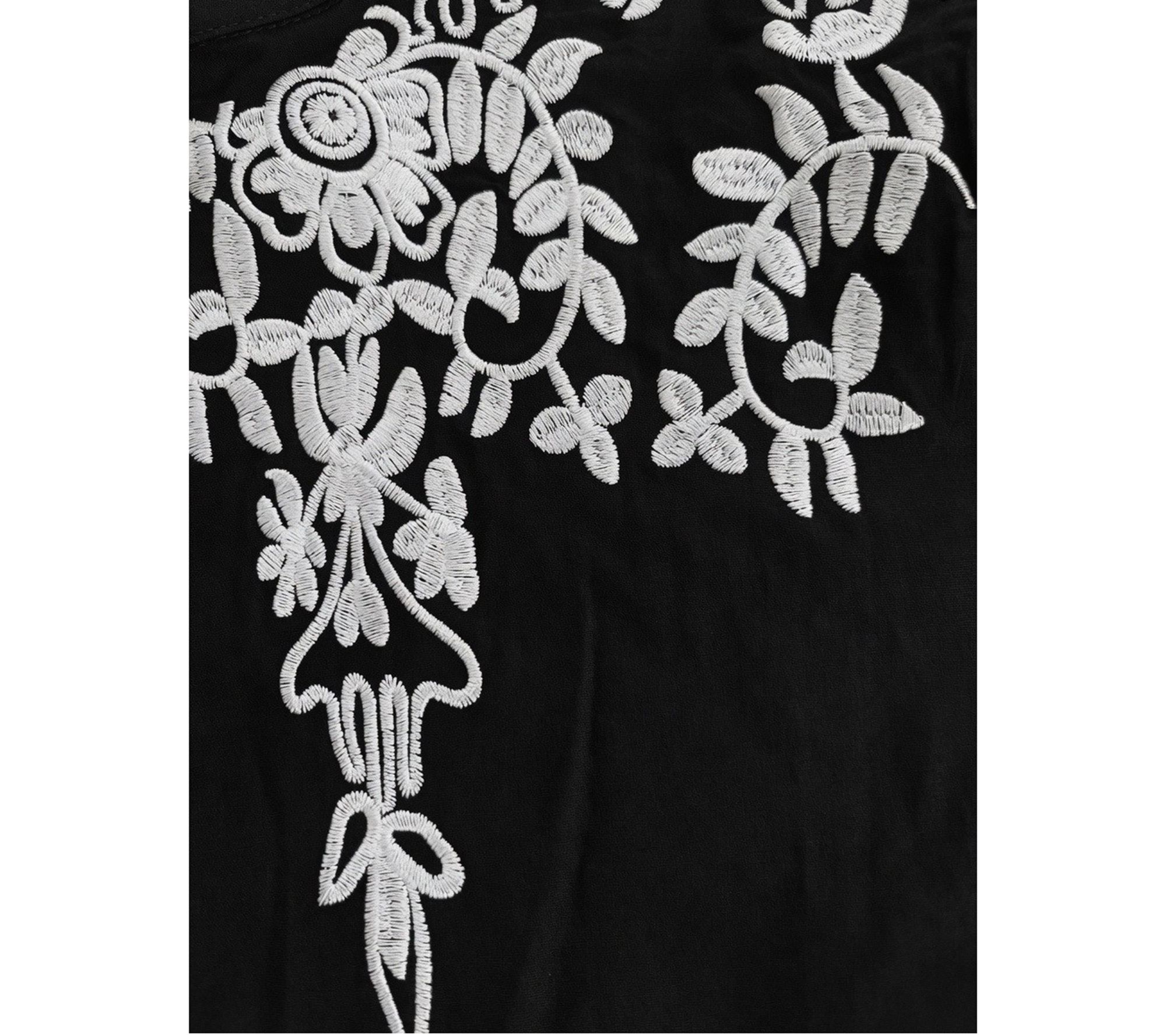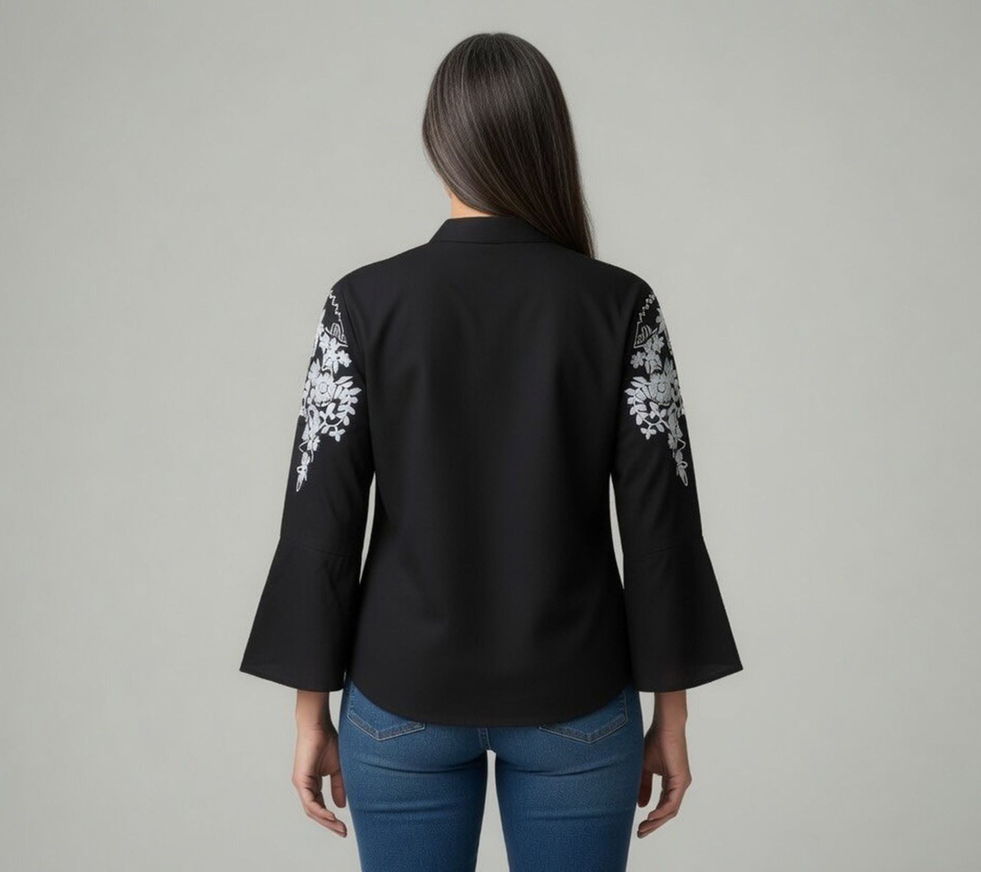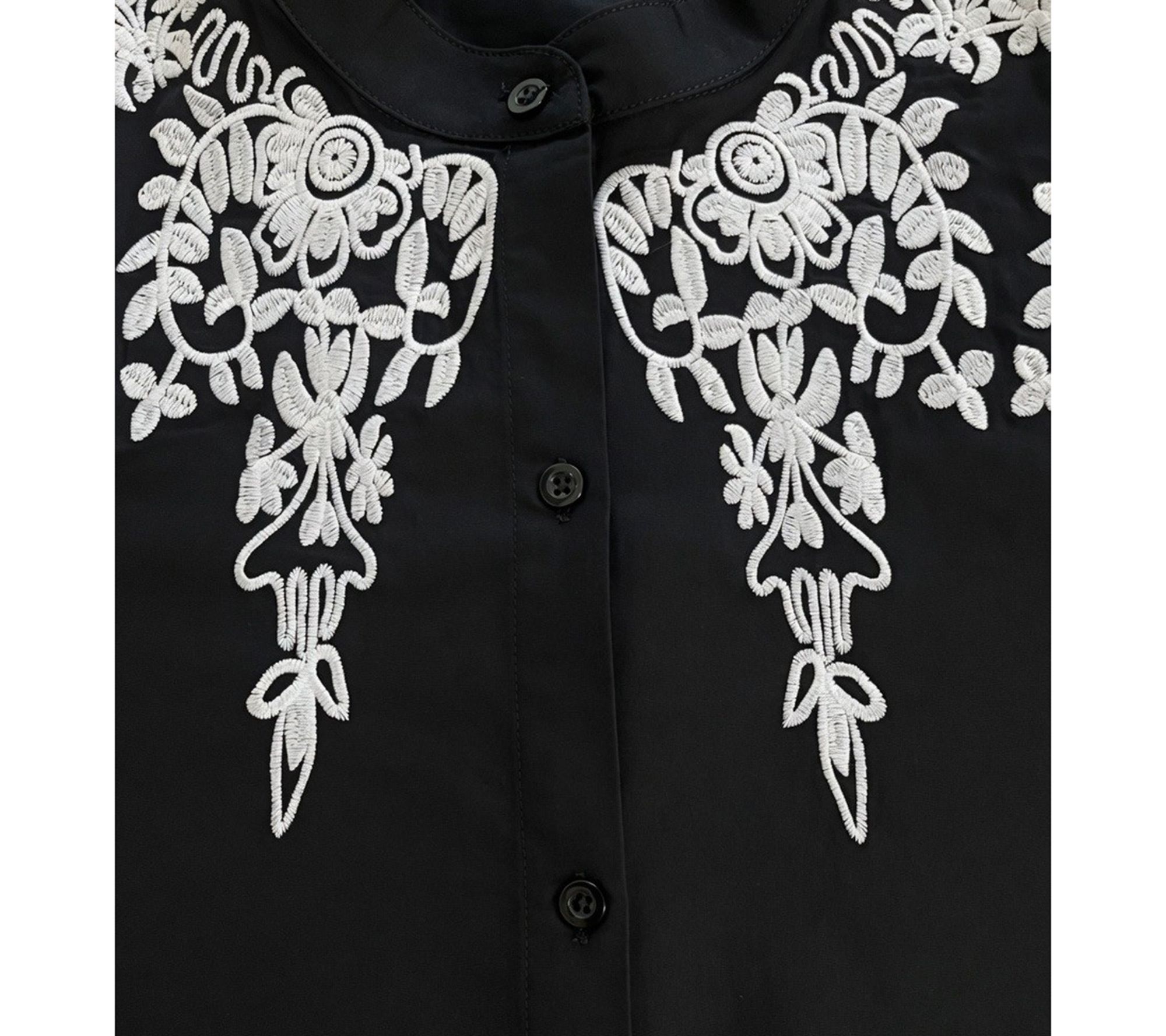 • Features: button-front closure, collar, embroidery on sleeves and chest, long sleeves