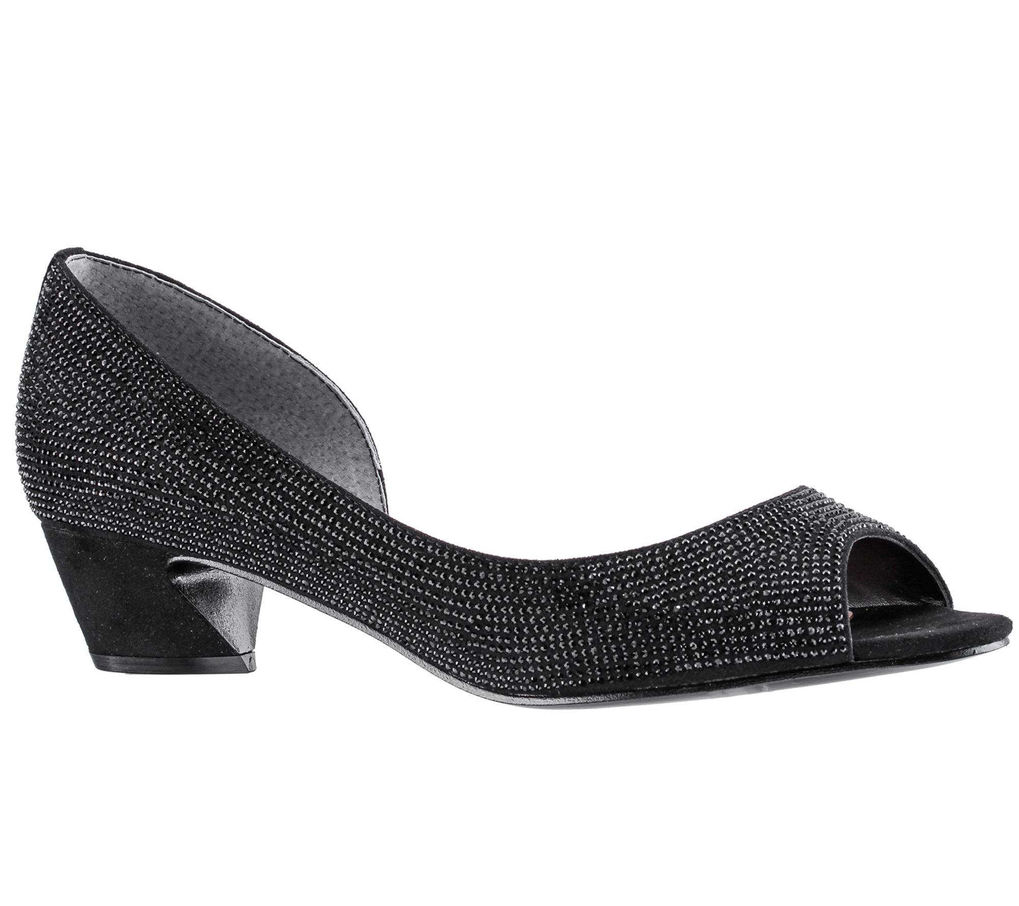 • Slip-on style, crystal embellished upper, cutout side, almond toe