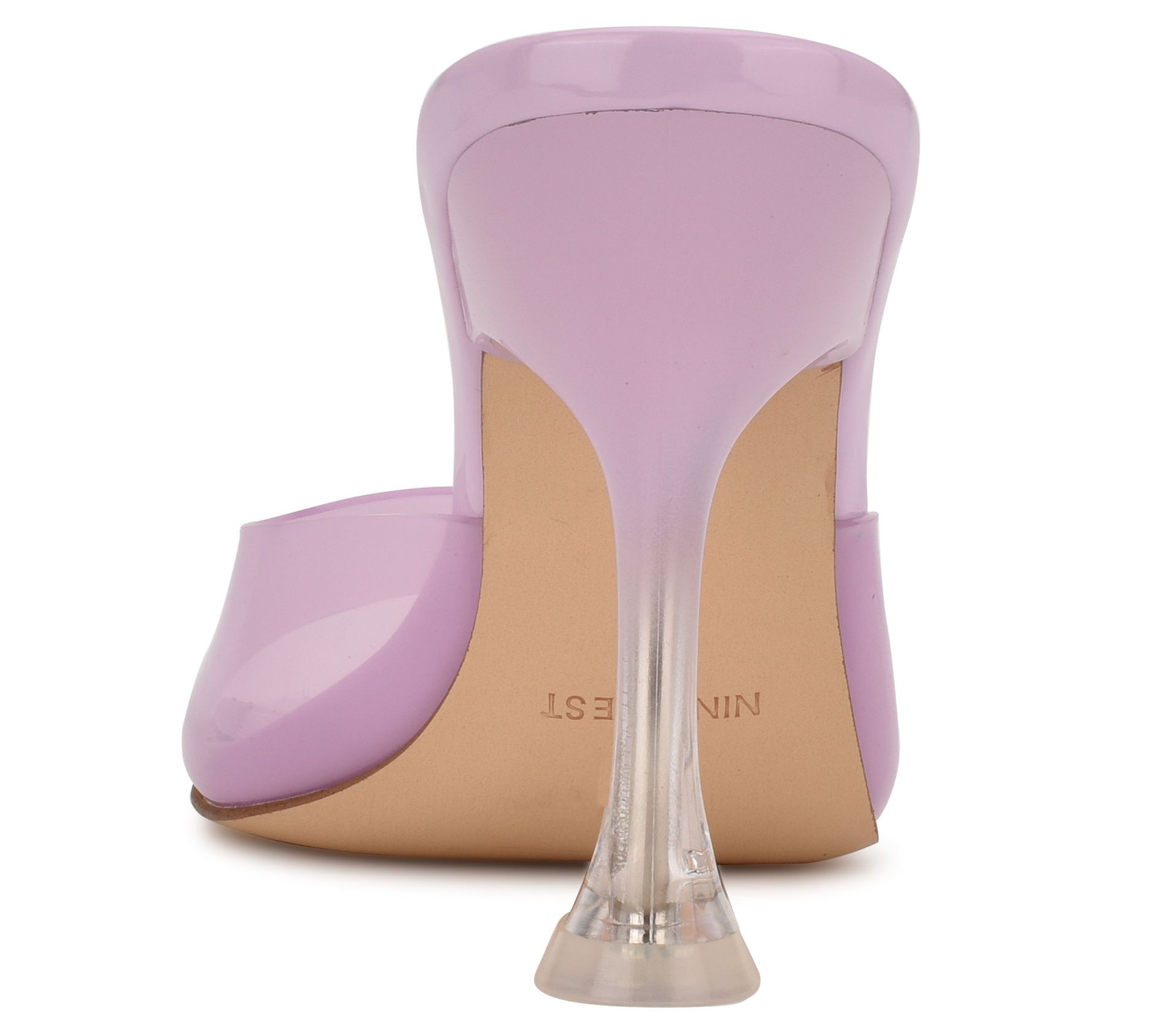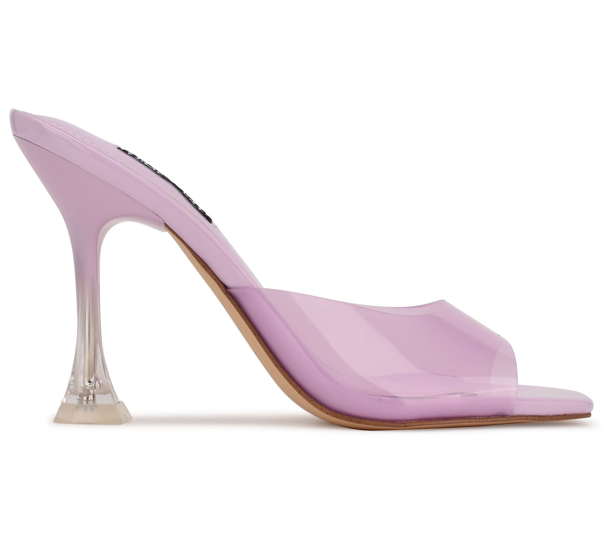 Fun and flirty, the Zooza high-heeled open toe mule takes the classic silhouette and turns up the fun with its bright colors, trendy transparent upper, and sculpted lucite high heel. From Nine West.