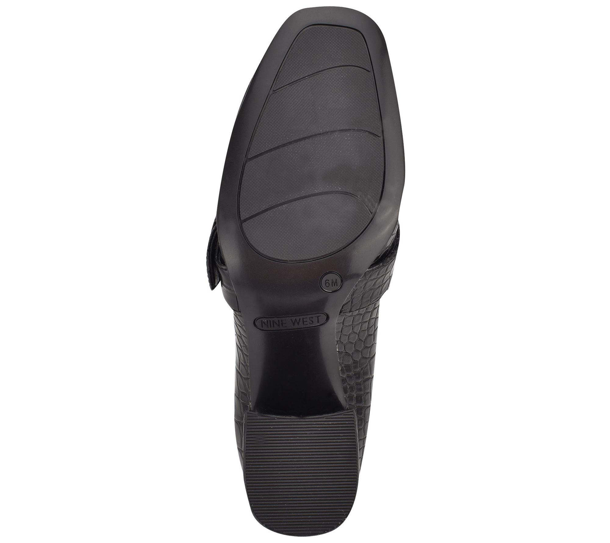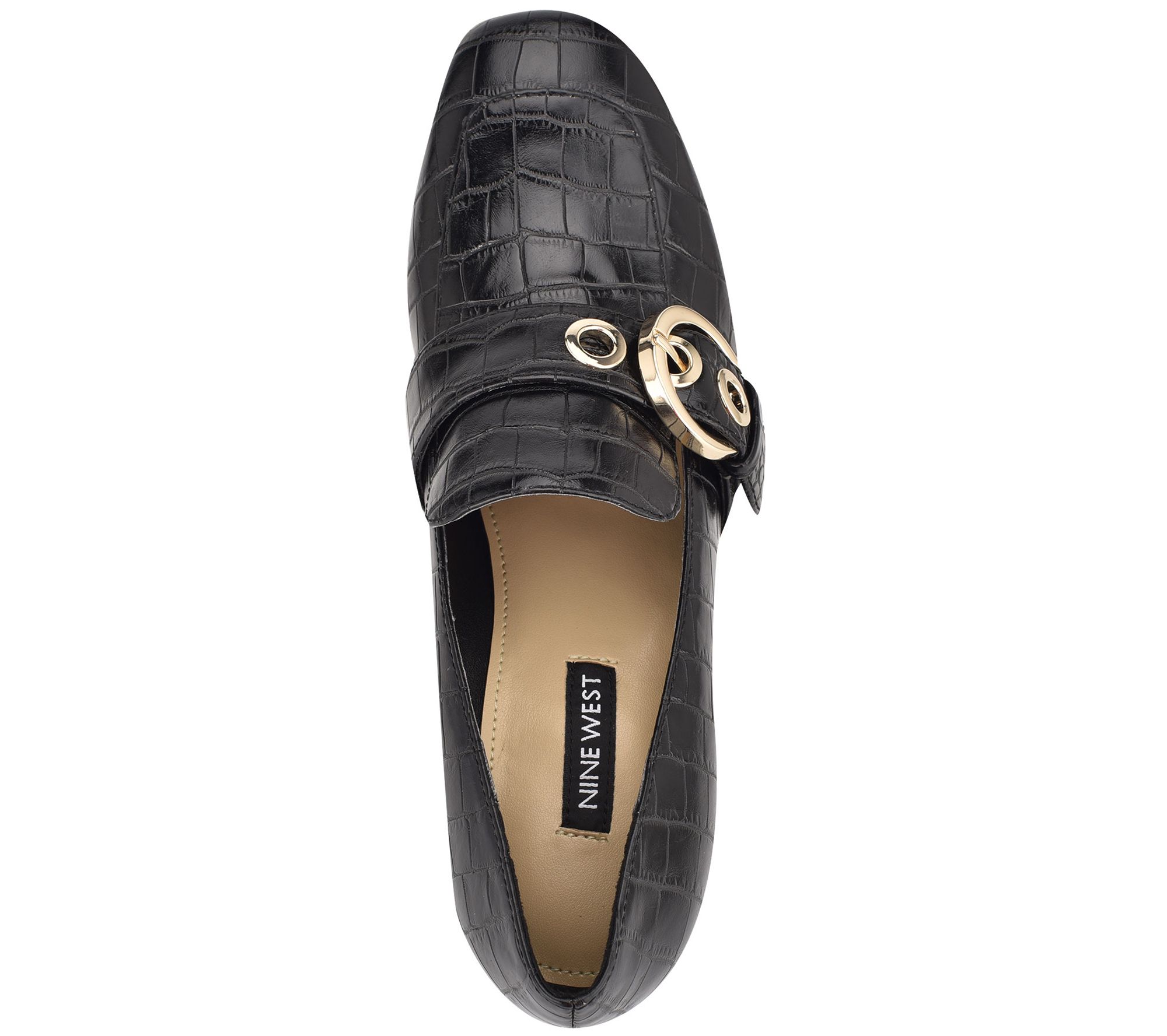 With gorgeous metallic hardware across the vamp and a flared block heel, these sleek loafer-like pumps are a closet necessity. From Nine West.