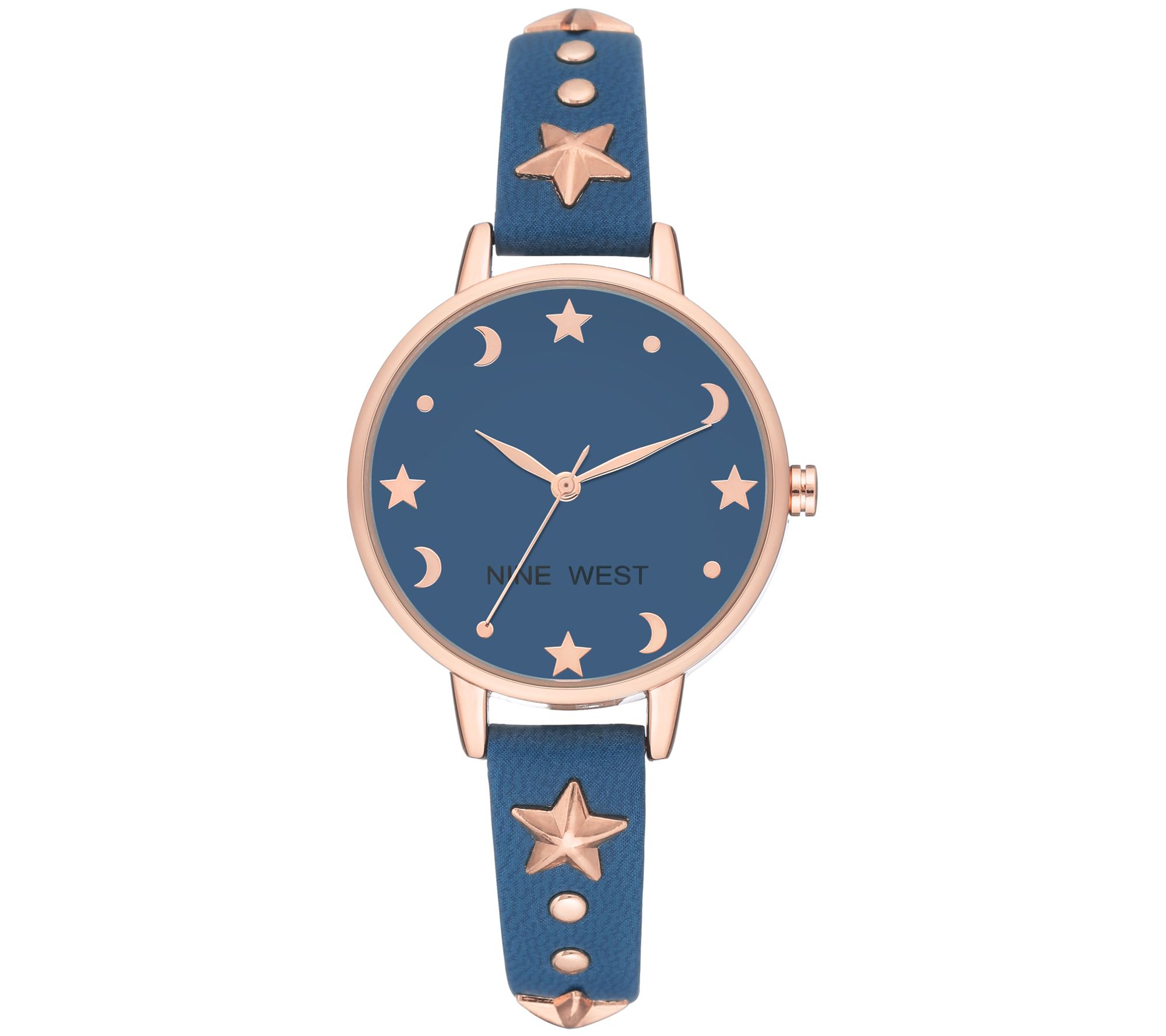 Nine West Women's Rosetone Star & Moon Blue Watch