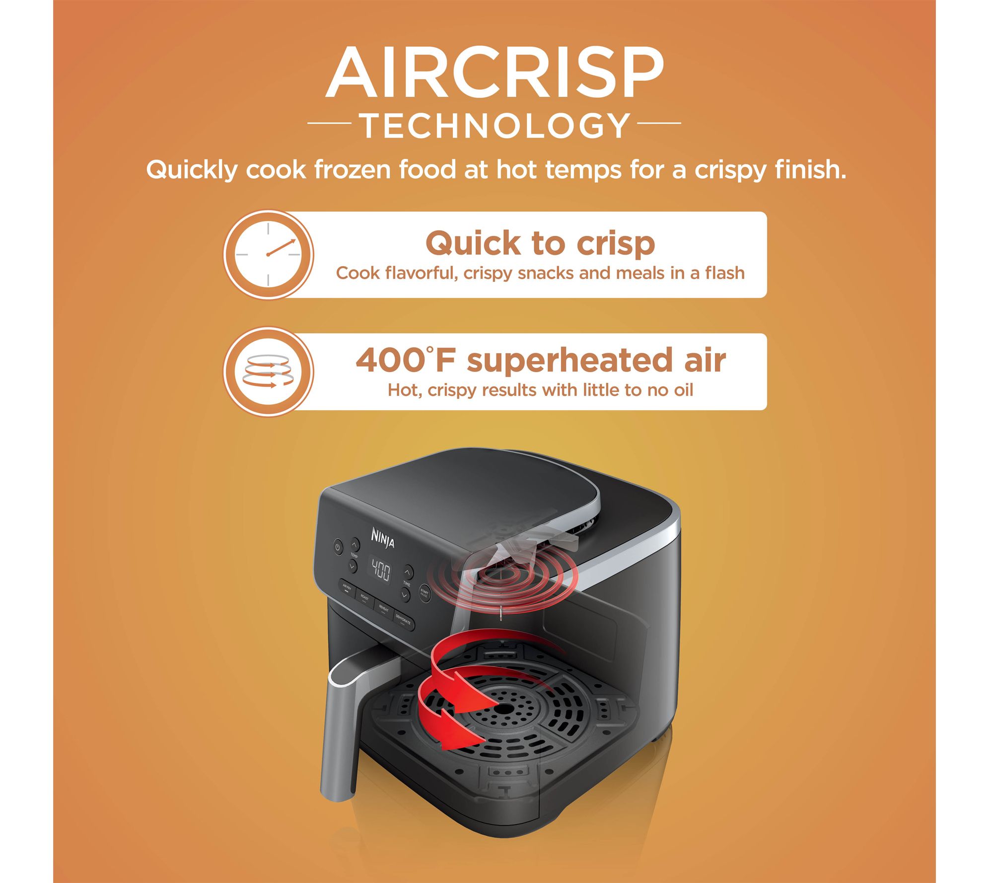 Air Crisp Technology surrounds food with superheated air for crispy results