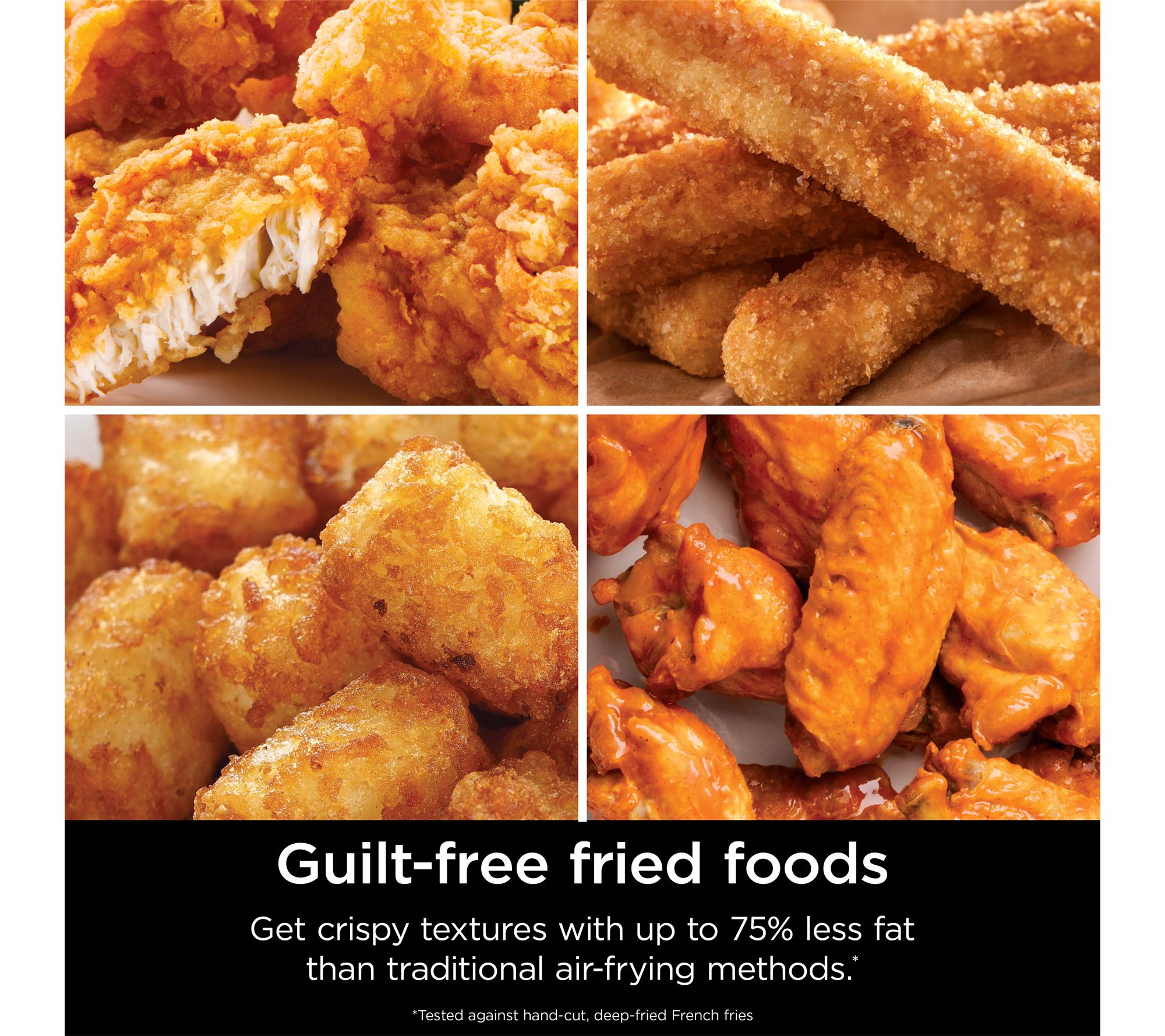 Up to 75% less fat than traditional frying methods