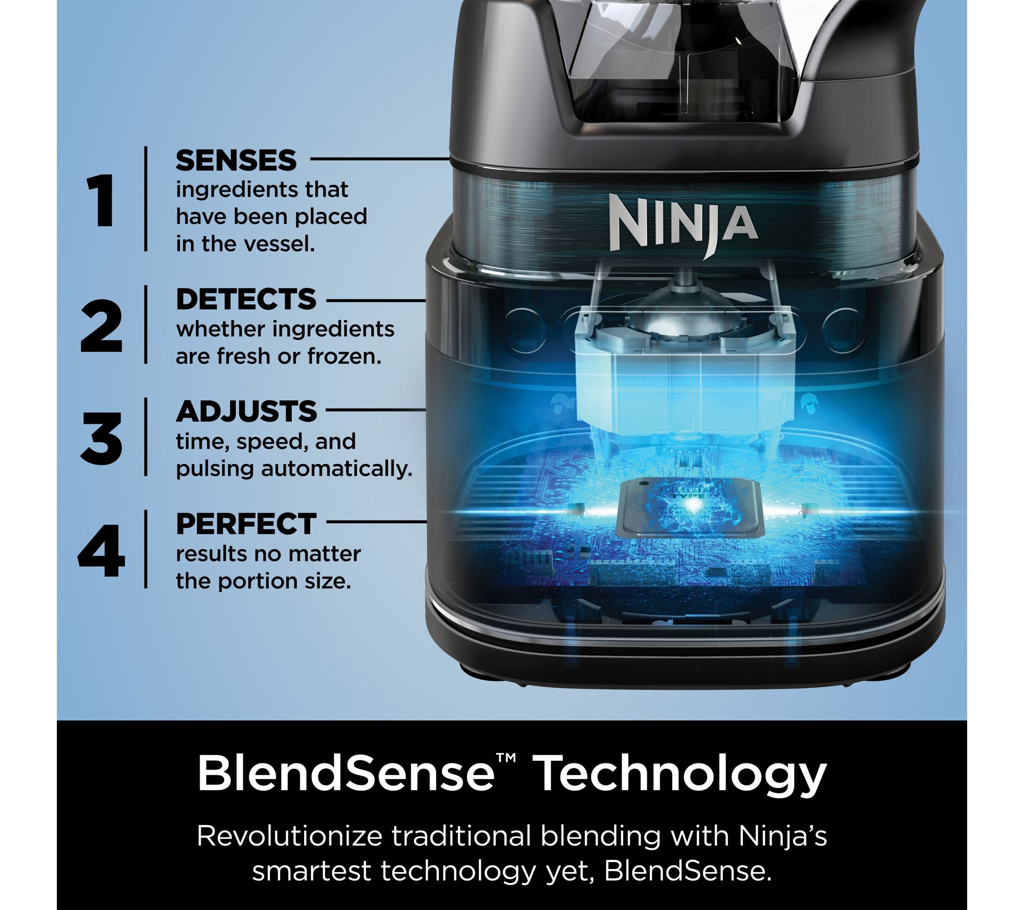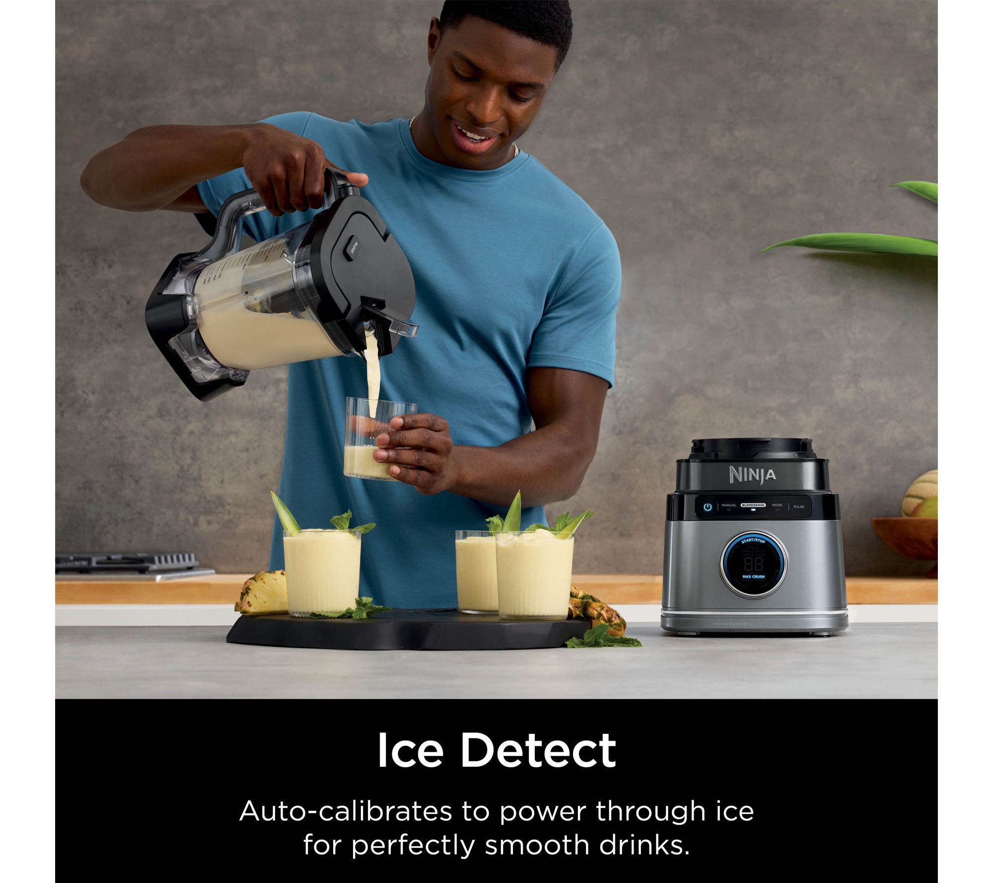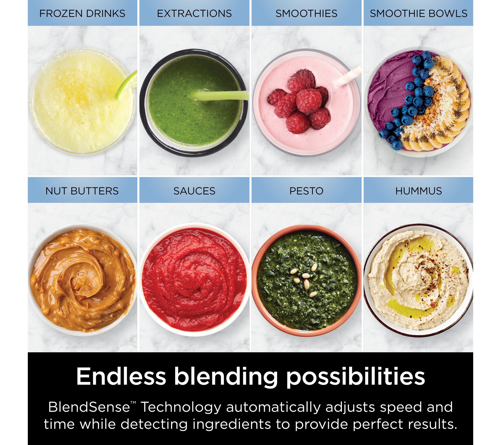 Blend up family-sized smoothies, whip up frozen drinks, or prep salsa with ease -- the Ninja Detect Power Blender Pro with BlendSense Technology makes it all effortless. Its smart dial auto-adjusts speed and time for velvety results, while powerful blades turn ice into snow and chop veggies in seconds. From Ninja.