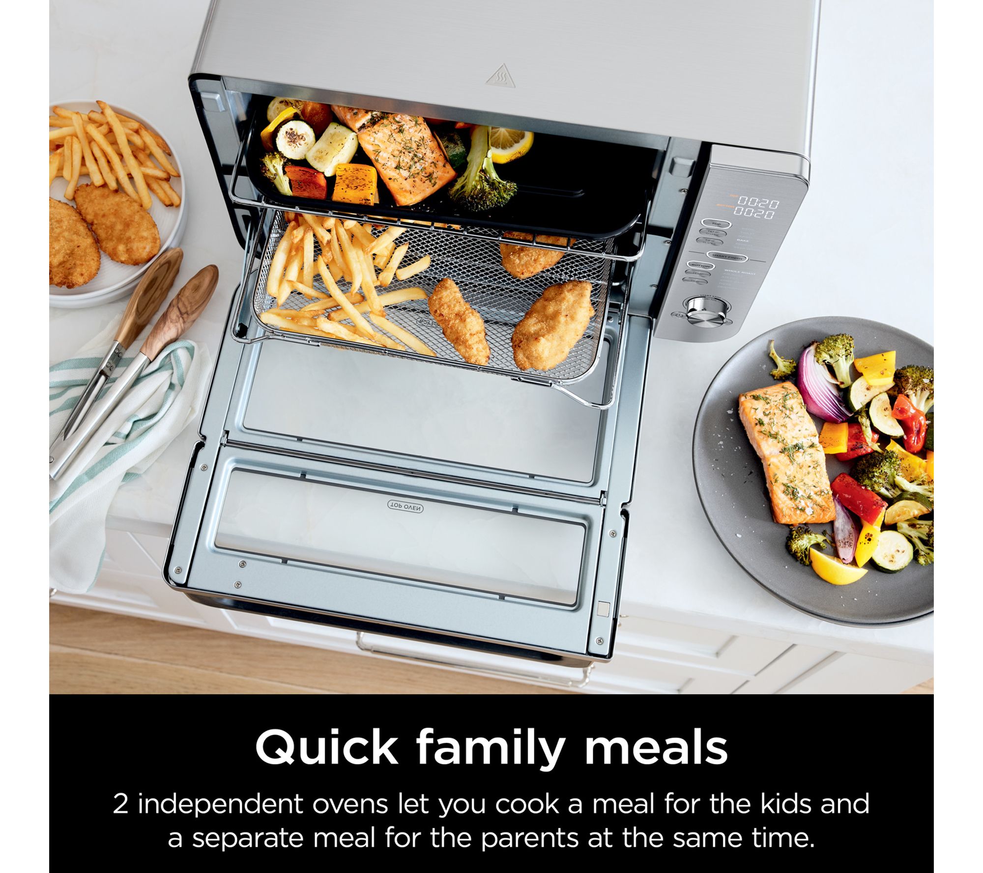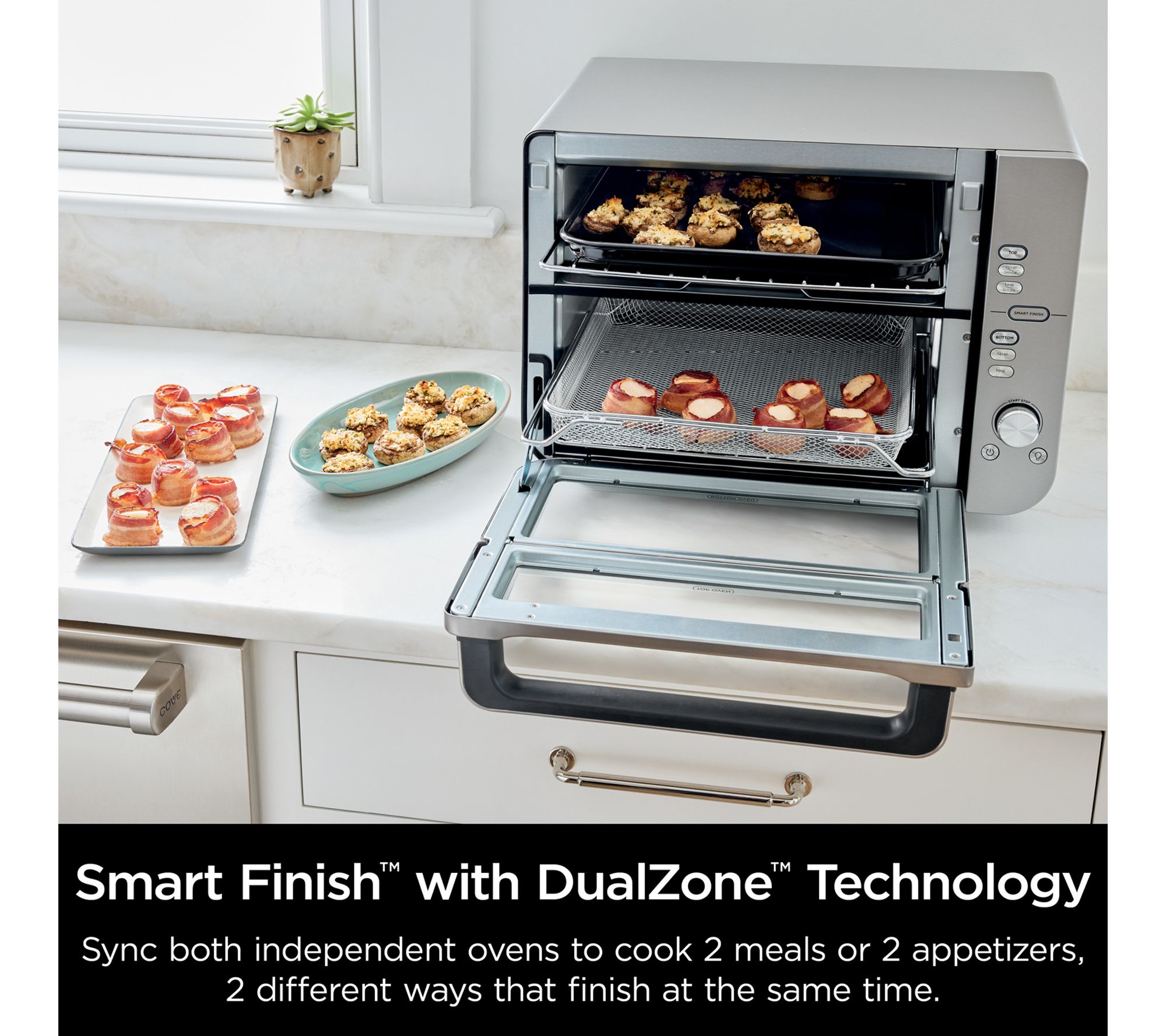 Enjoy the ease of preparing two delicious dishes at once with this countertop oven and air fryer. Whether you're whipping up crispy wings for game night or roasting salmon and veggies for a weeknight dinner, its independent ovens with Smart Finish and DualZone Technology help you serve complete meals -- fast, fresh, and full of flavor. From Ninja.