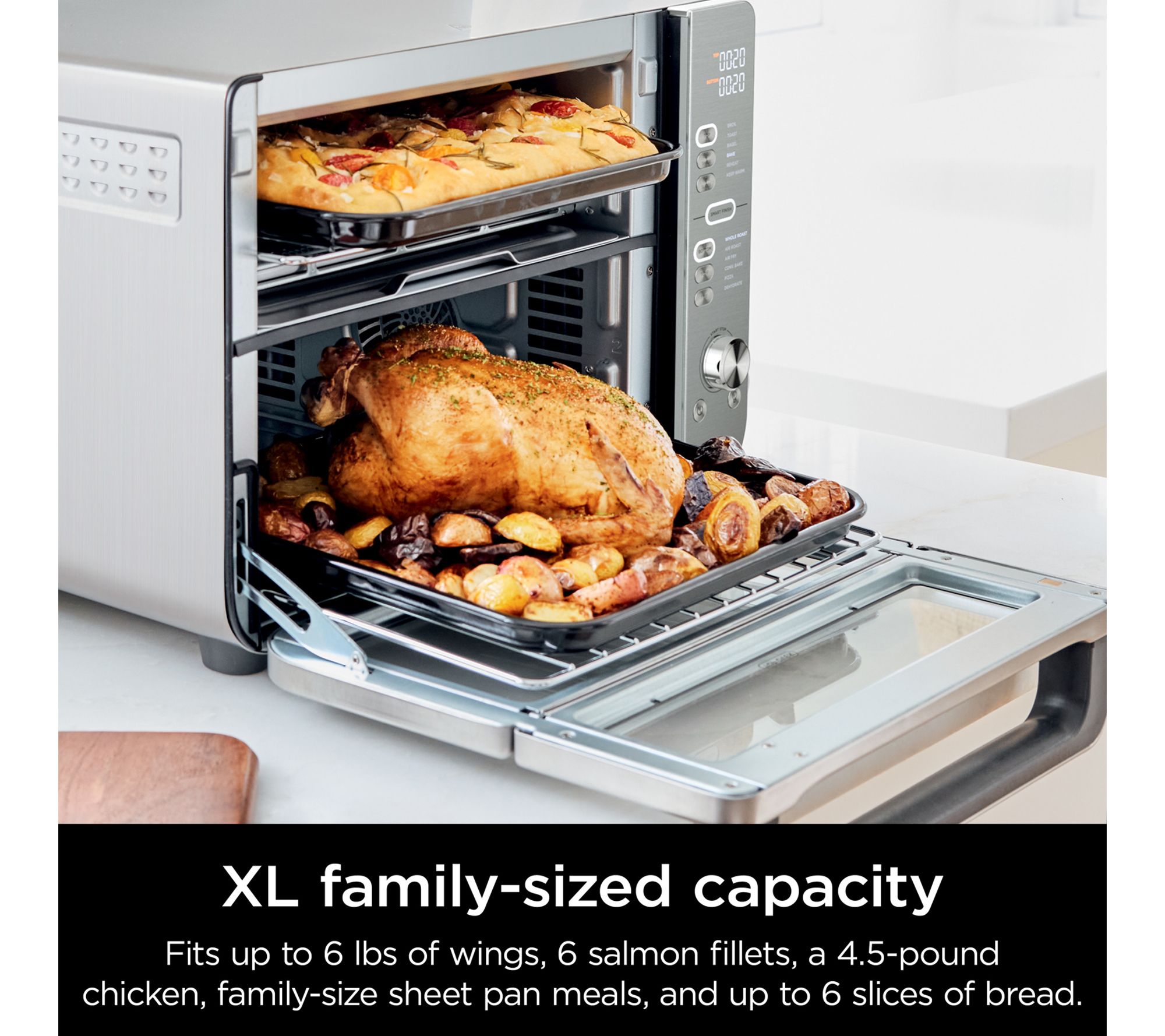XL family-sized capacity fits up to 6lbs of wings, 6 salmon filets, a 4.5-lb chicken, or 6 slices of bread