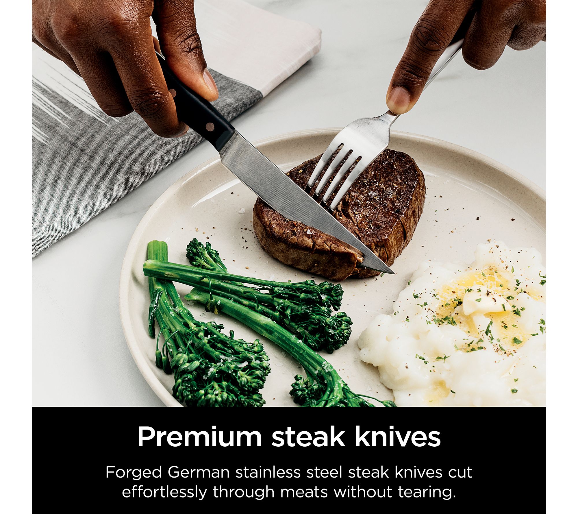 Whether you're prepping weeknight dinners or hosting friends for a holiday feast, this 17-piece knife set delivers sharp precision and comfort with every slice. The built-in NeverDull Technology keeps each German steel blade razor-sharp, so you can glide through tough veggies, meats, and breads with ease -- no more frustration over dull edges. From Ninja.