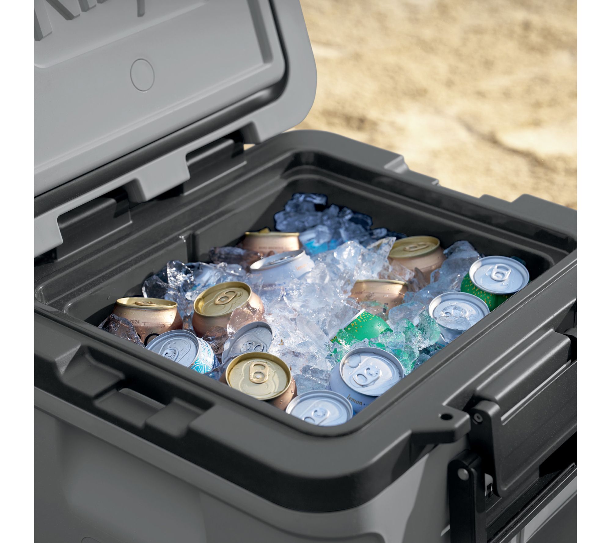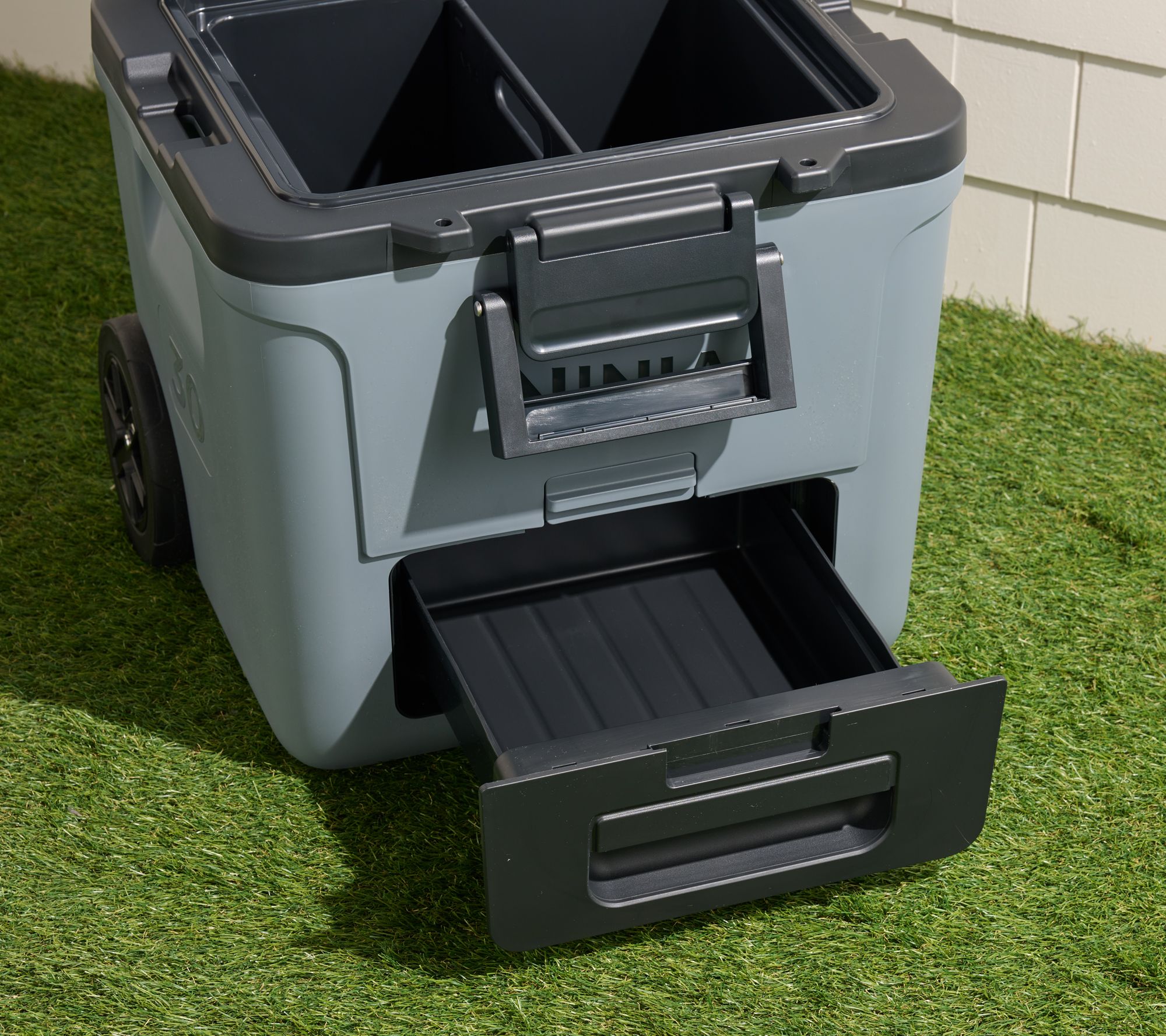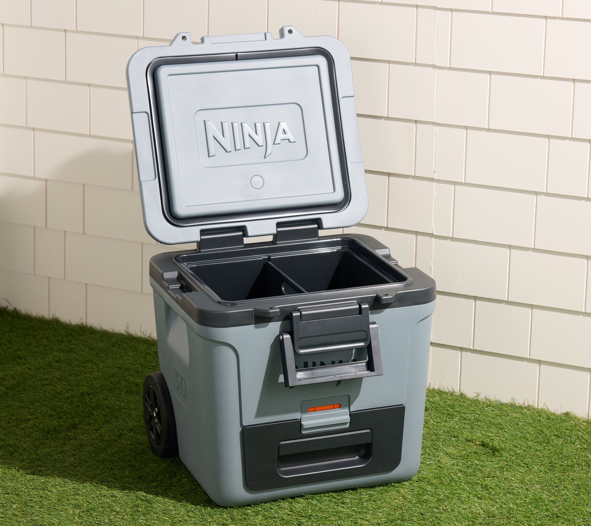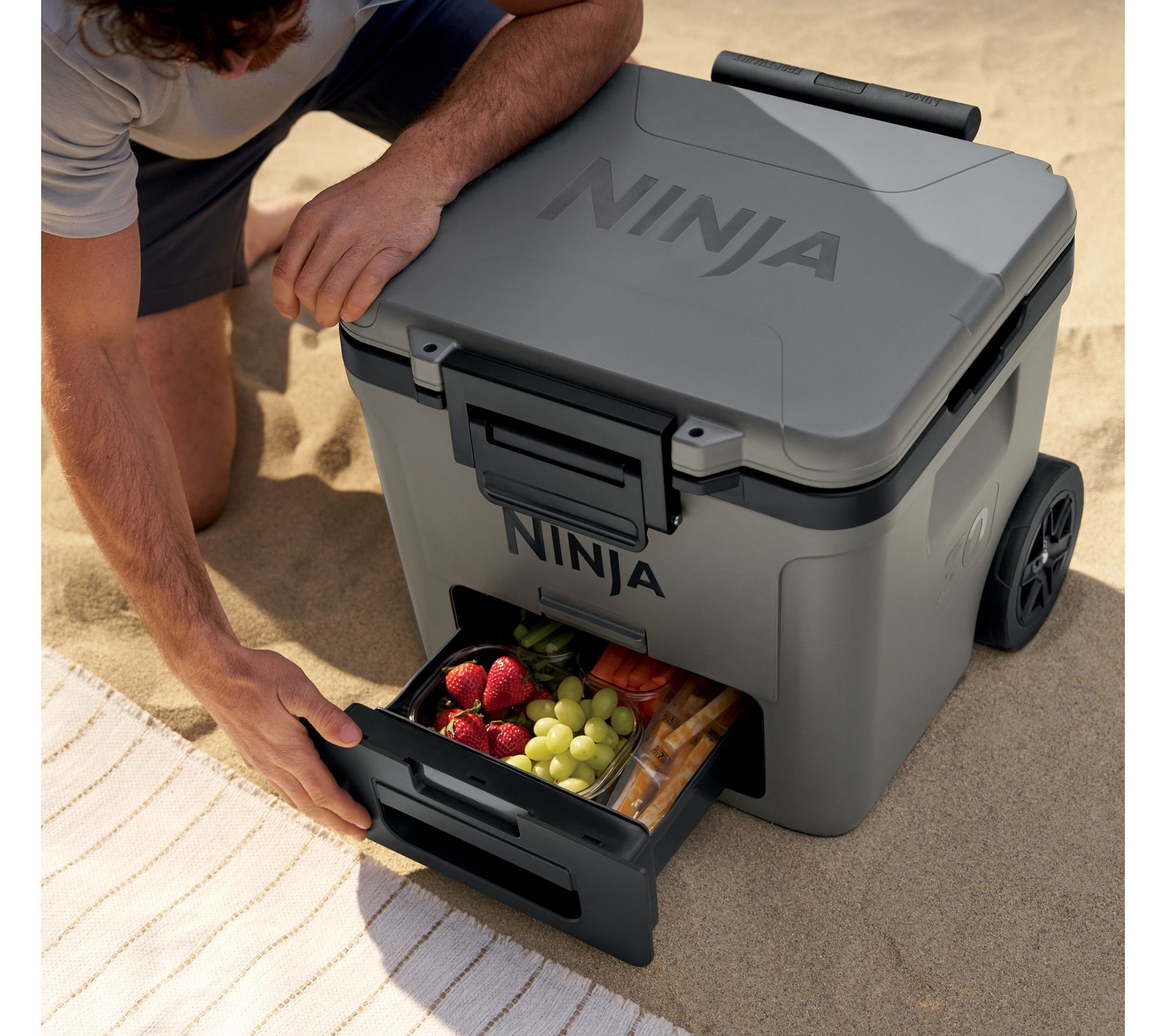 Are your beverages warming up while you're chilling out -- or en route to your destination? Embark on your next outdoor excursion with the Ninja FrostVault and keep your cool! The innovative 30-quart hard cooler keeps ice frozen for days and holds up to 48 cans, so nobody has to go thirsty. It even features an easy-access Dry Zone drawer that separates refrigerated foods from icy beverages (goodbye, soggy sandwiches!) and keeps items chilled at fridge temp for days. That could be a whole camping weekend, tailgate event, or road trip! Of course, with sturdy integrated handles, a telescoping pull handle, and all-terrain wheels, you'll also choose it for low-mileage trips to the park, the farmers market, or your neighbor's barbecue (guess who brought the steaks?!). From Ninja.