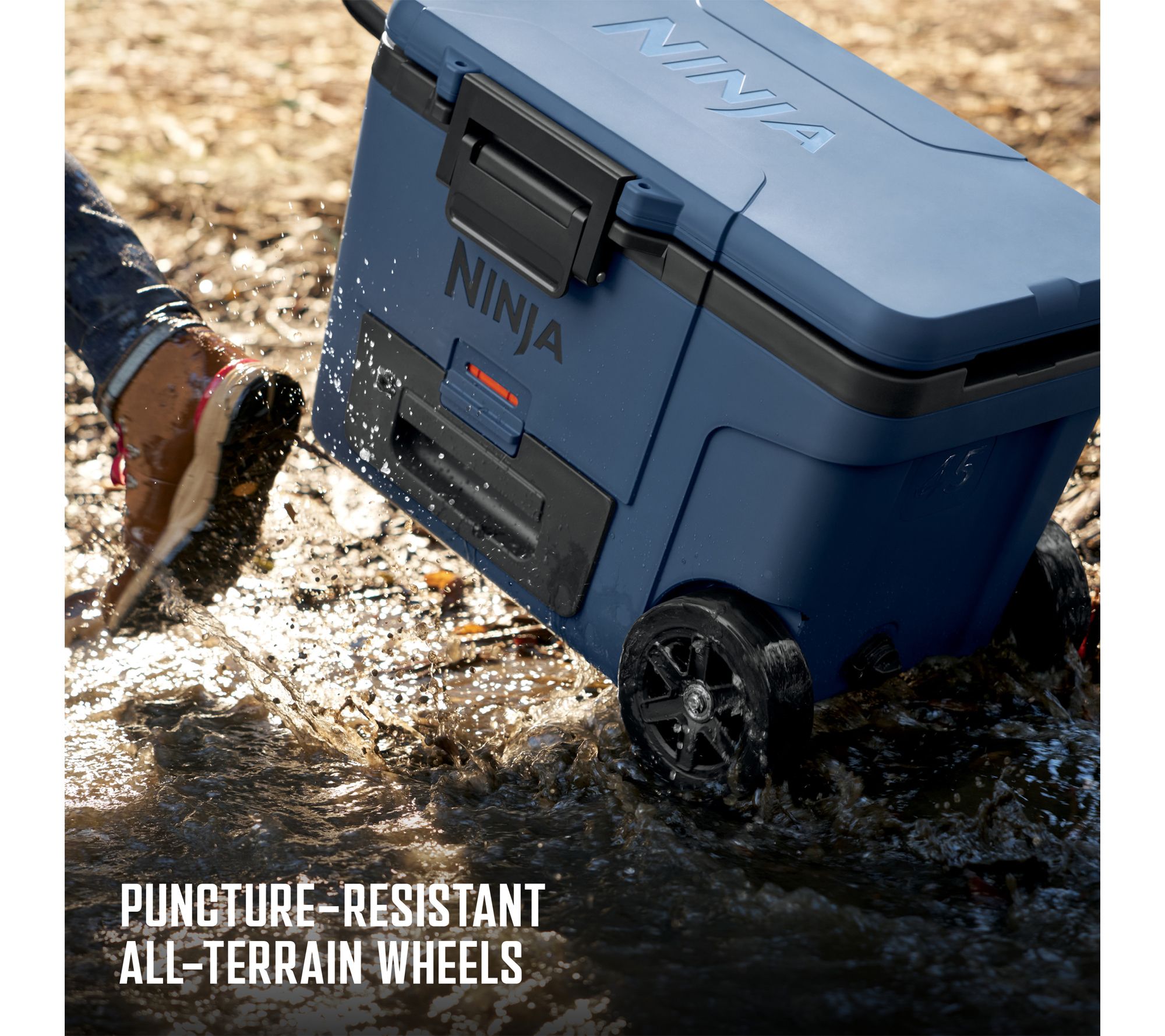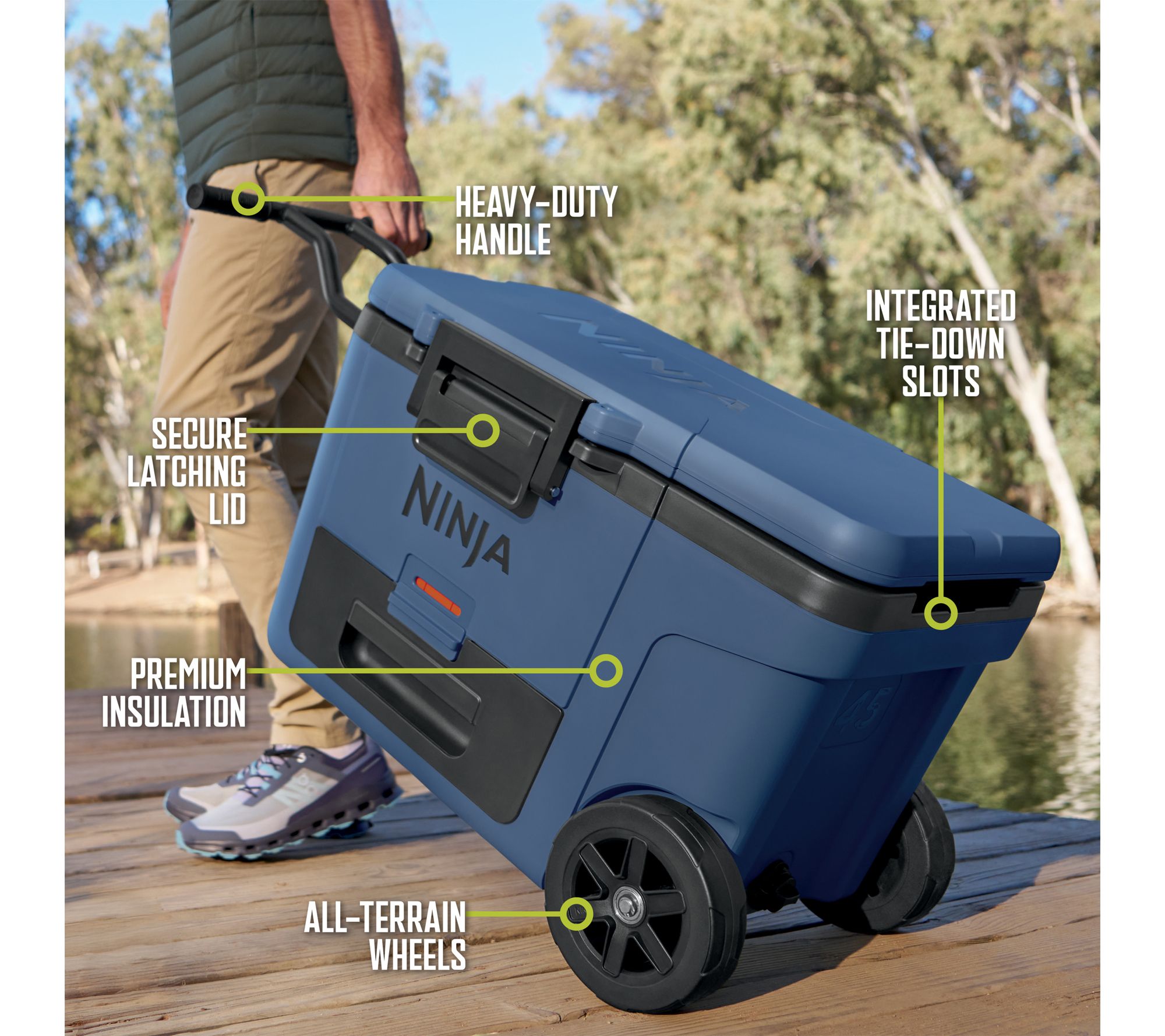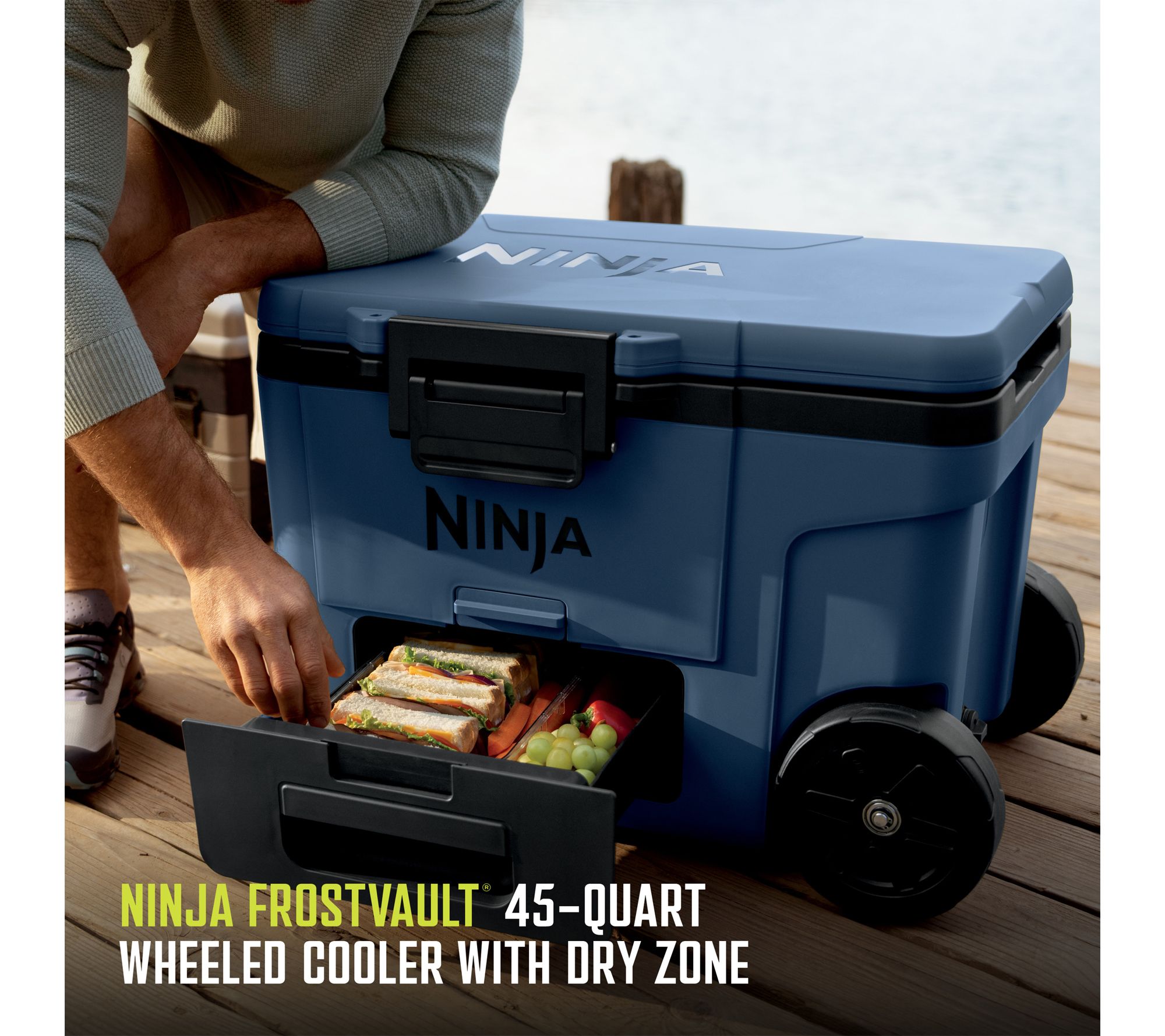 Take beverages and food to go, and keep them chilled -- while you're chilling out -- with the Ninja FrostVault wheeled cooler. Transport game-day drinks, campsite refreshments, or picnic/party/potluck libations easily with this innovative 45-quart hard cooler that holds up to 68 cans, so no one has to go thirsty. It even features an easy-access Dry Zone drawer that separates refrigerated foods from icy beverages (goodbye, soggy sandwiches!) and keeps items chilled at fridge temp. Of course, with sturdy handles, an easy-close one-handed latch, and all-terrain wheels, you'll also choose it for low-mileage trips to the park, the grocery store, or your neighbor's fire pit. From Ninja.