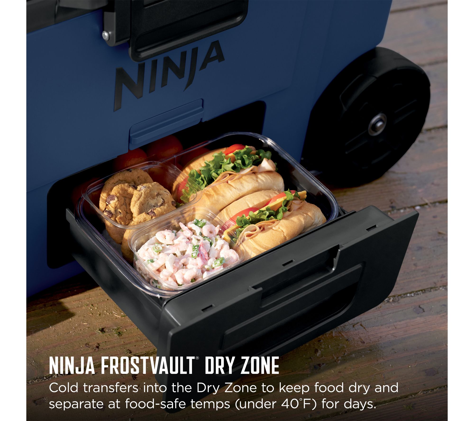 FrostVault Technology: cold transfers into the Dry Zone to keep food cool, dry, and separate at food-safe temperatures