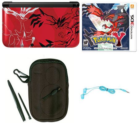 Includes Nintendo 3DS XL Pokemon Y red system, Pokemon Y game, 4GB SD memory card, AC adapter, starter kit, and earbuds