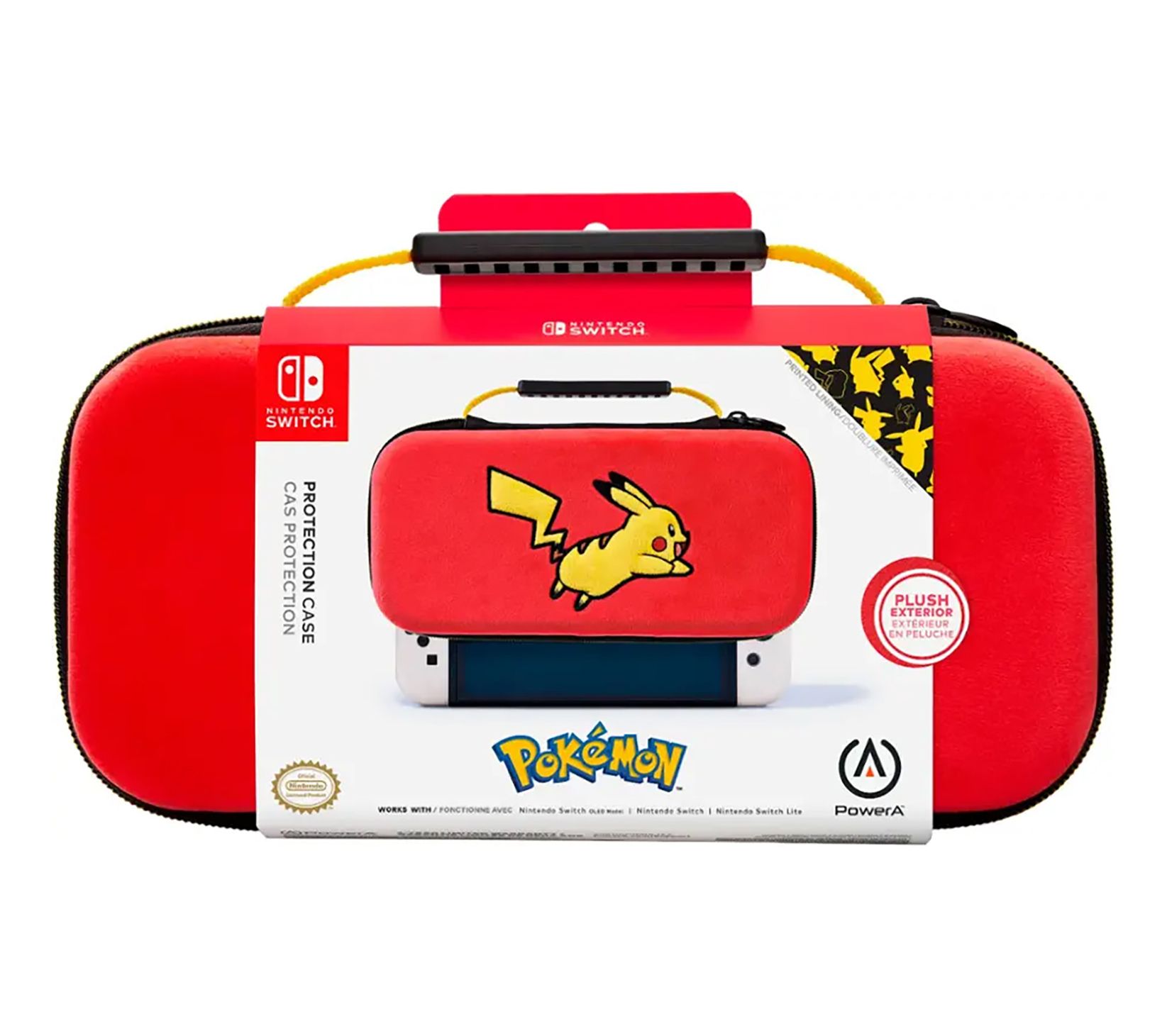 Includes Switch console, Switch dock, Joy-Con L controller in blue, Joy-Con R controller in red, two Joy-Con strap accessories, Joy-Con grip, HDMI cable, power cord, PowerA carrying case, HORI filter, voucher, Pokemon Legends Z-A game
