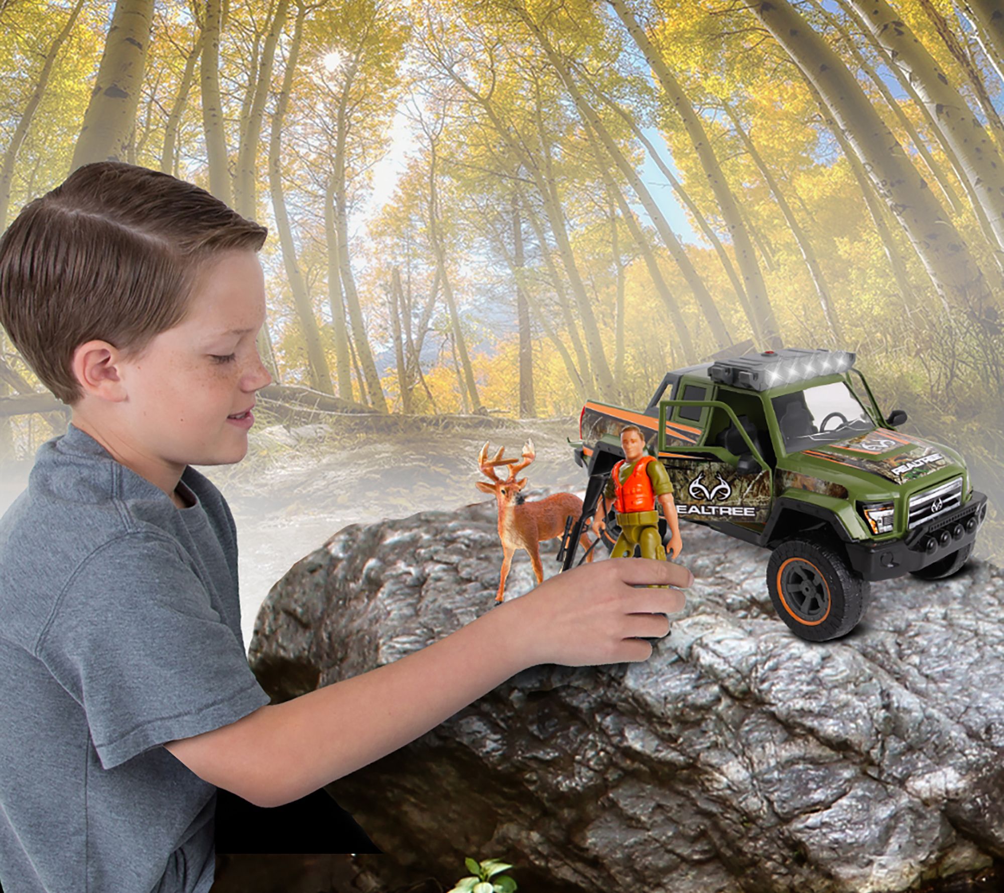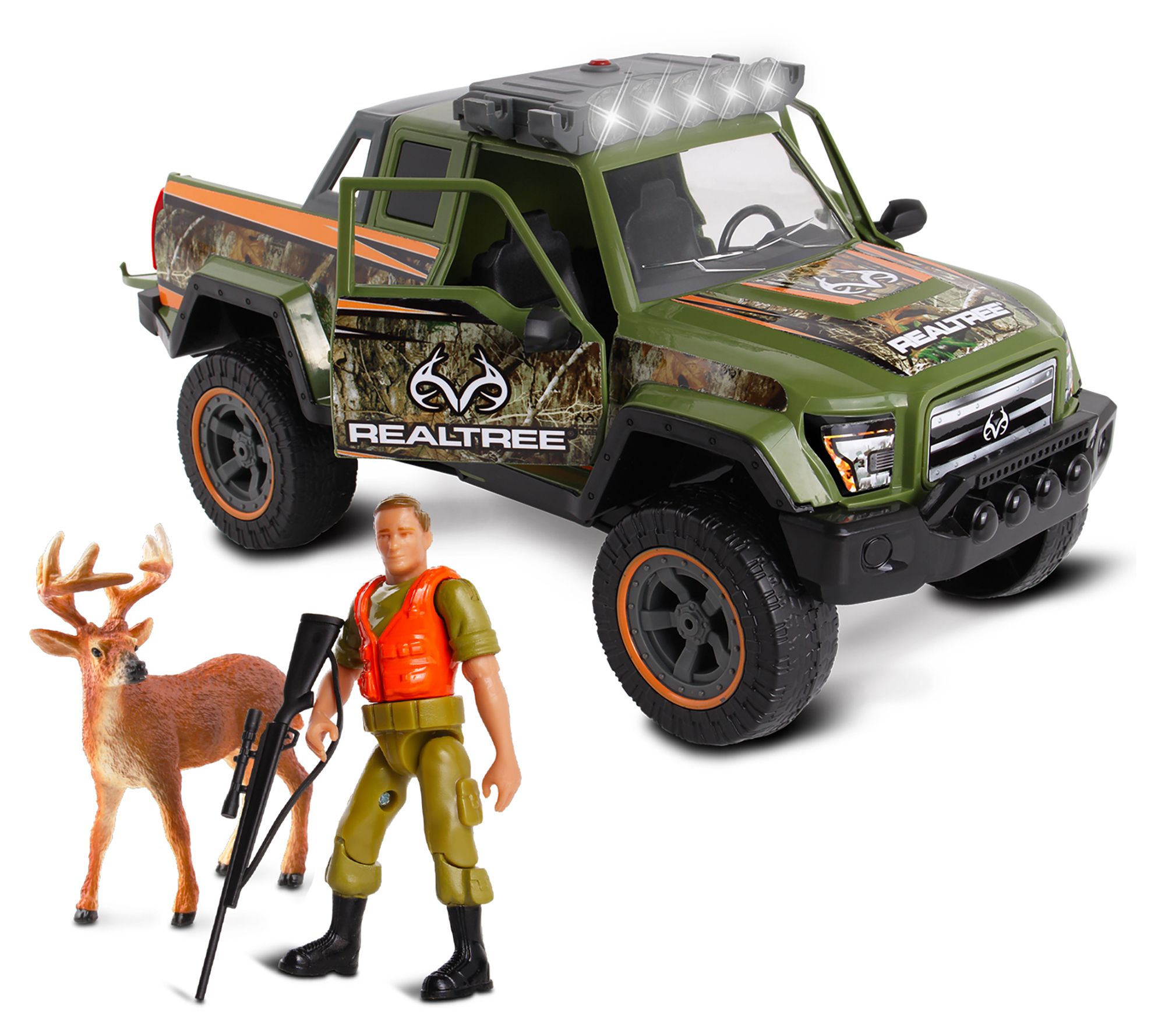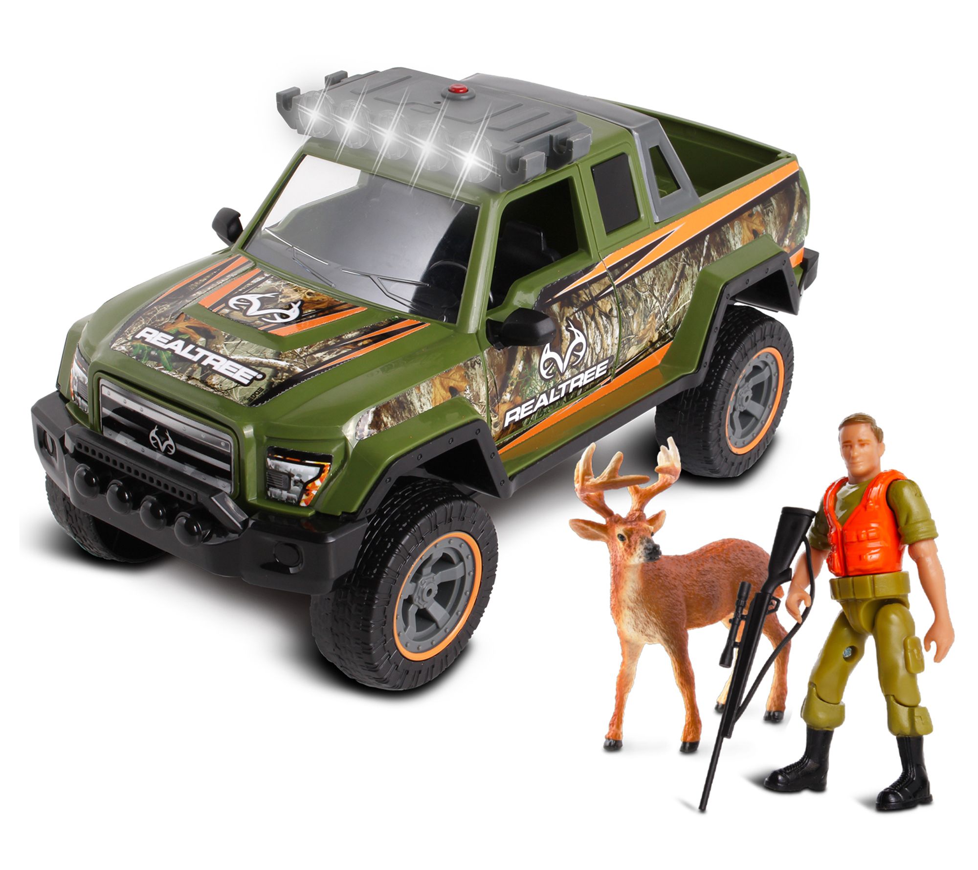Give your young outdoor enthusiast an exciting way to play with this RealTree Buck Hunt set. The camo truck has working lights and sounds and comes complete with a hunter figure and a buck. From NKOK, Inc.