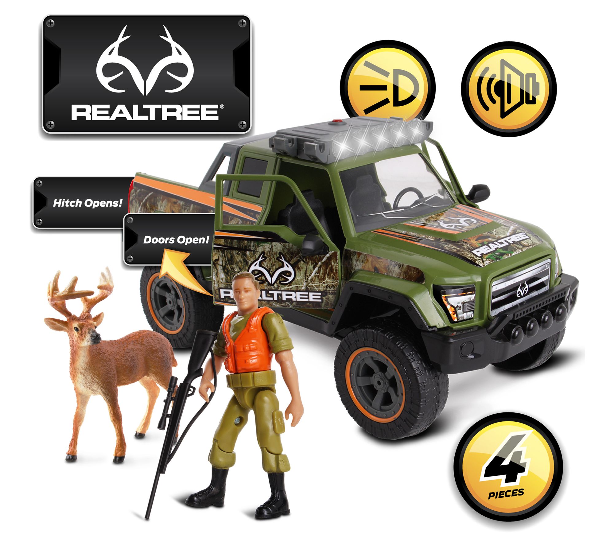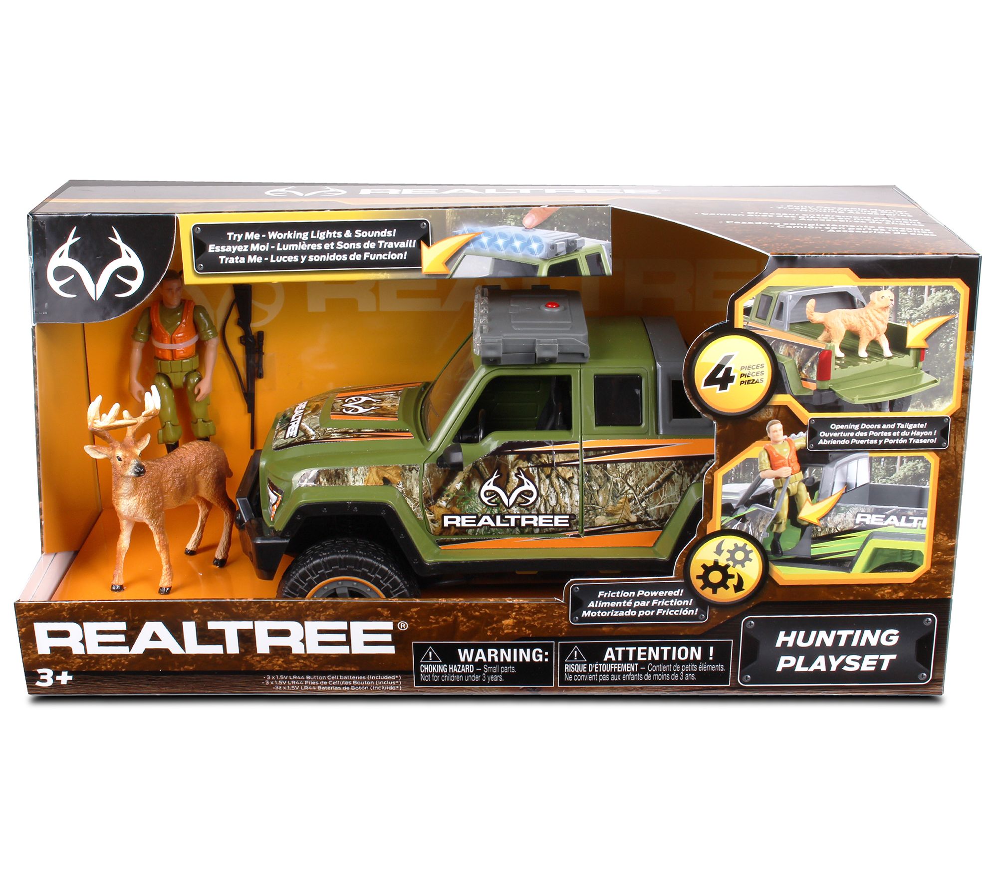 • Includes light and sound truck, hunter figure, buck figure, toy rifle, and 3 LR44 batteries