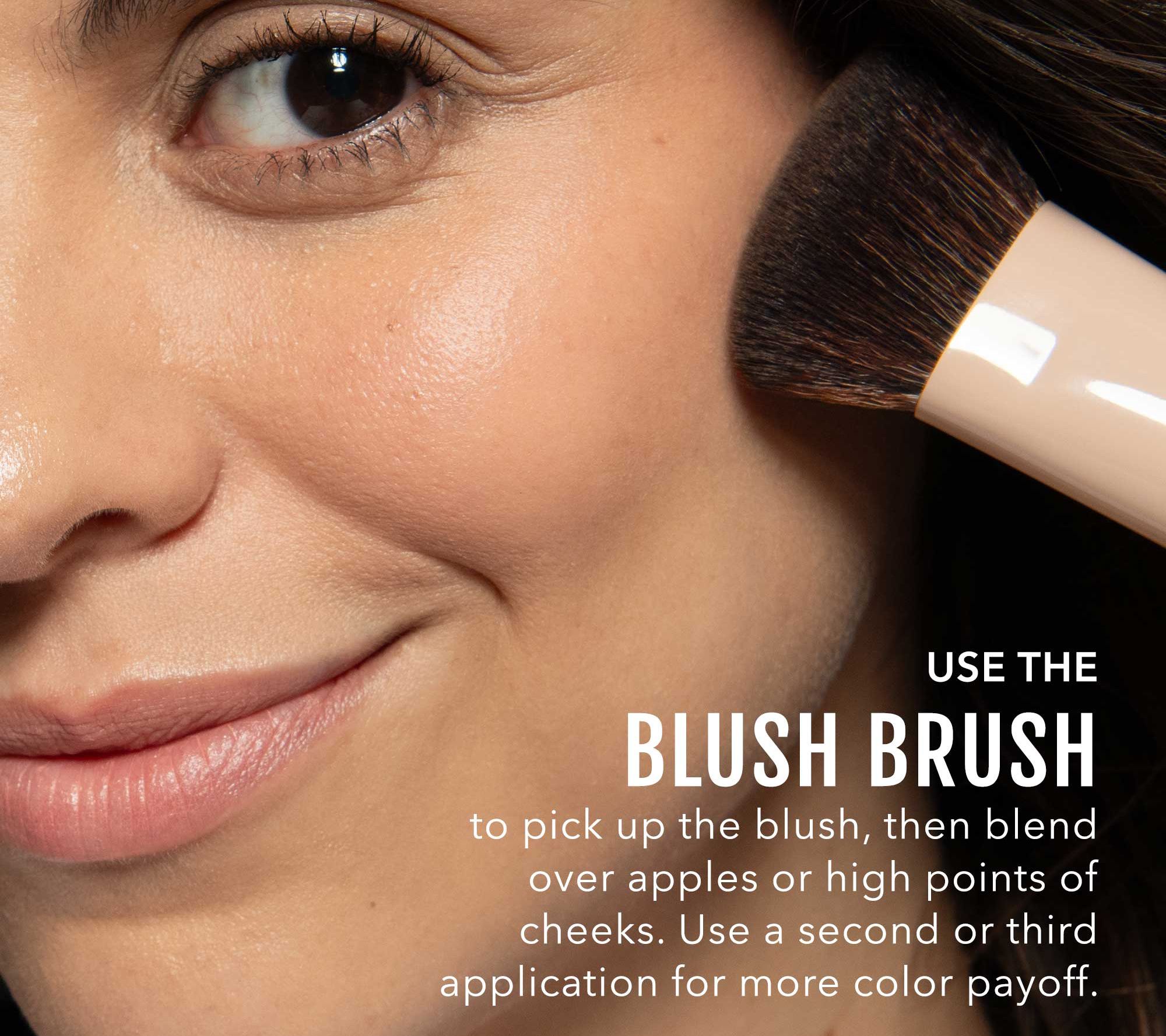 How do I use it: Apply with blush brush by swiping it across the pan. Gently buff into the skin in upward blending motions. Apply one brush stroke for a fair flush, two brush strokes for medium payoff, and three for a full color effect.