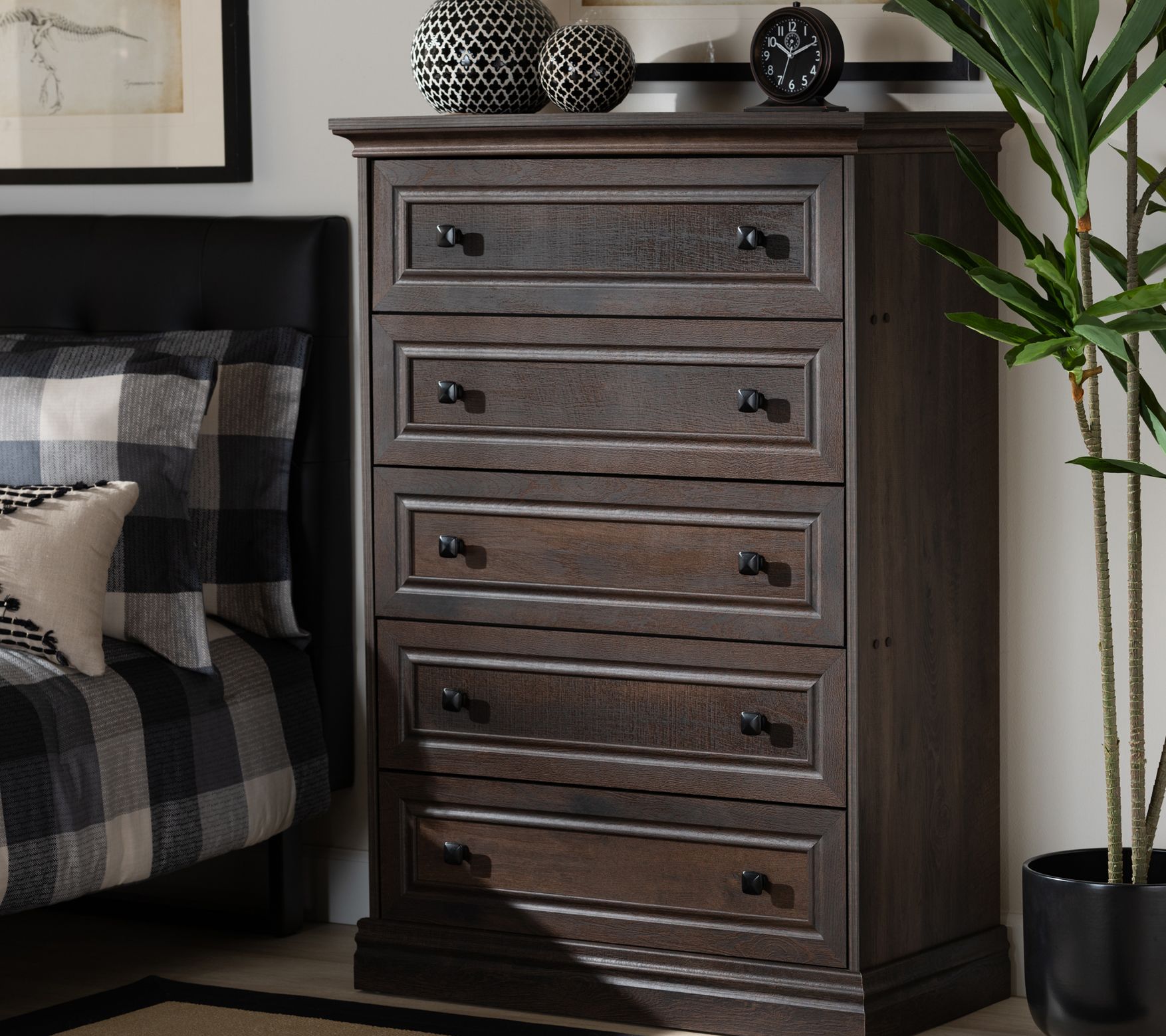 Store your delicates in this handsome five-drawer chest. Place this chest in your bedroom for timeless, functional style. From Baxton Studio.