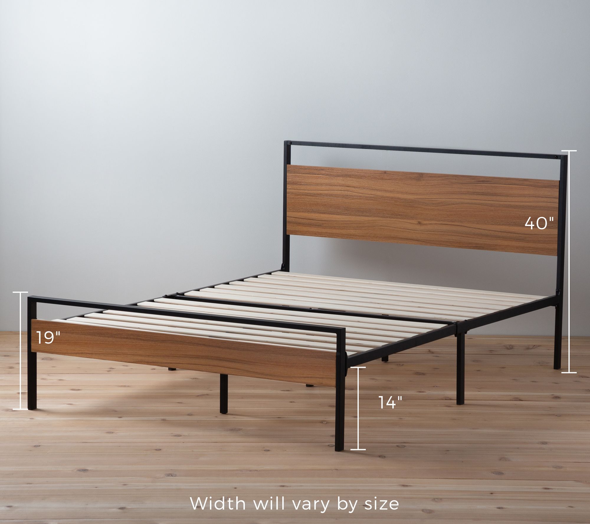 Bring durable comfort and a modern, rustic-chic feel to your bedroom with this low-profile metal and wood platform bed frame. A modern metal frame with natural wood accents adds rich color to your space and creates an eye-catching focal point for your bedroom. Sturdy wood slats provide a reliable foundation that support your memory foam, latex, or spring mattress with or without a box spring.