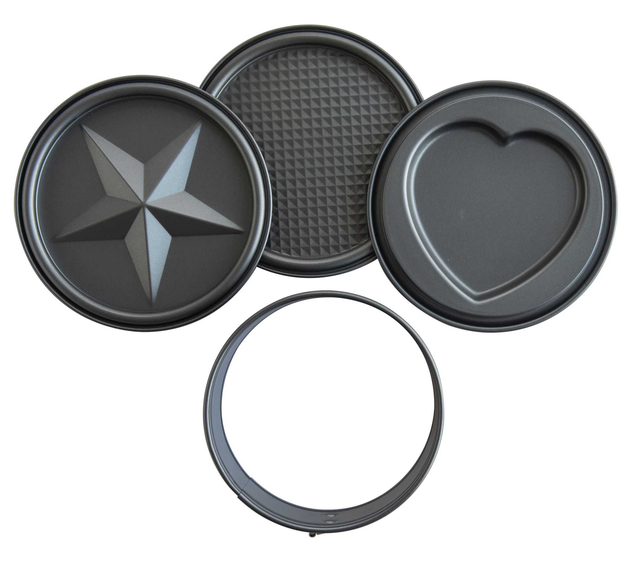 Unlock your baking potential with the Nordic Ware decorative springform pan set! This premium 7" springform pan is the ultimate solution for creating flawless cakes, cheesecakes, and other delicate desserts without any mess. With three removable bottoms featuring unique designs, you'll elevate your baking game and impress your loved ones. From Nordic Ware.