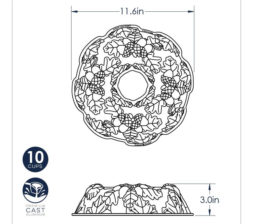 • Includes autumn wreath bundt pan and bundt cake keeper