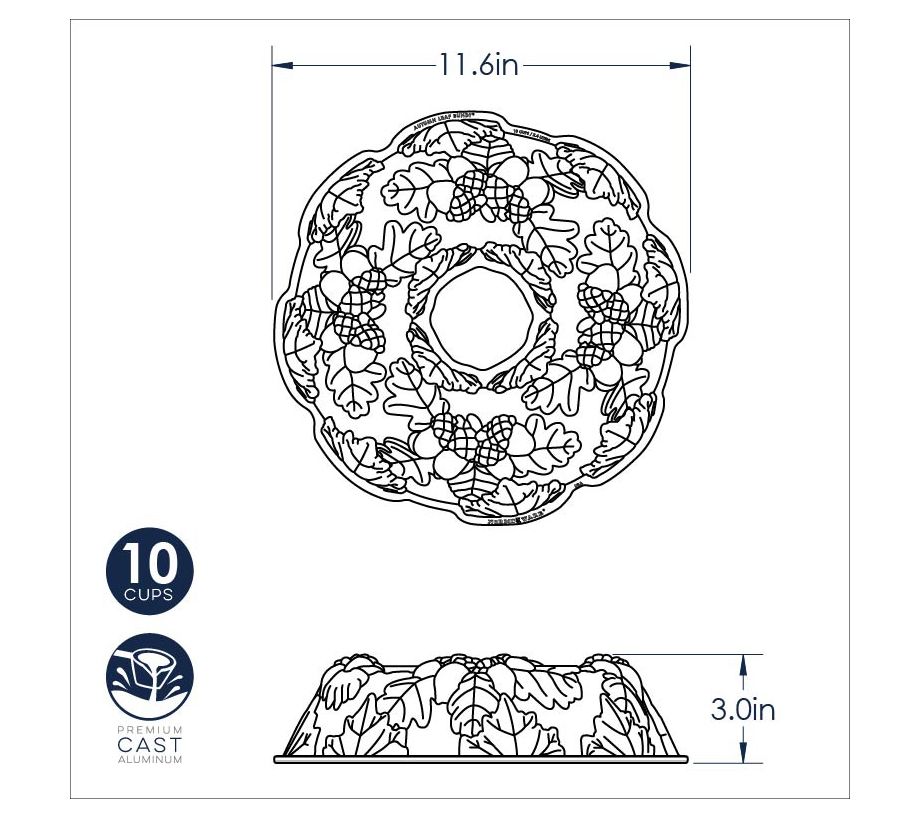 Beautify your bundt cakes by using Nordic Ware's autumn wreath baking pan. The nonstick cast-aluminum bundt pan celebrates the fall season with a wreath design that leaves a special imprint on your creation. From Nordic Ware.